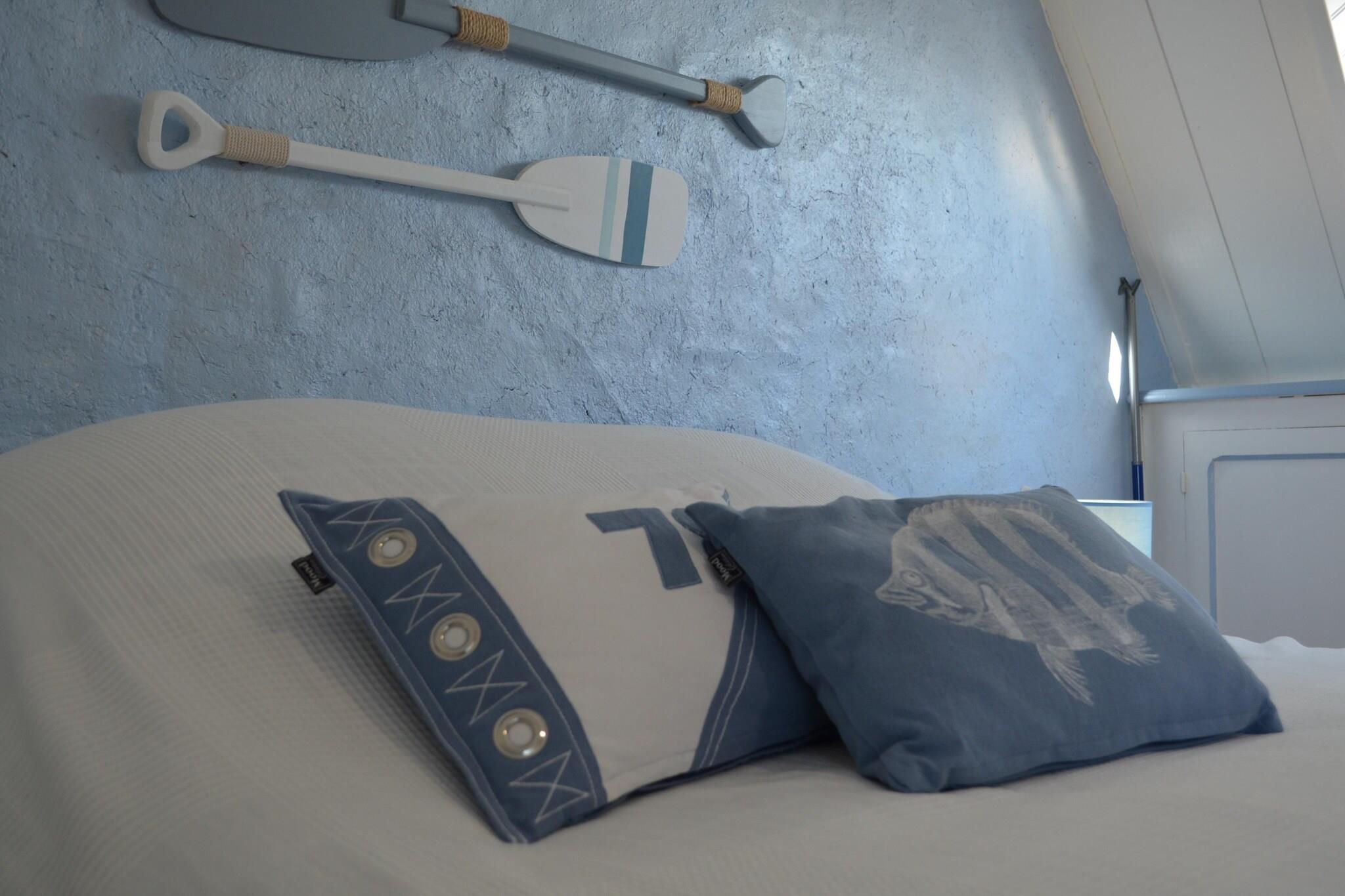 Ferie på højt niveau i ordets sande forstand, for det traditionelle, topmoderne renoverede landsted ligger dejligt roligt på en bakke over stranden i Porz Bilic. Fra den maleriske bygning, men også fra flere værelser på øverste etage, kan I nyde en smuk udsigt ned til havet og sandstranden, som kun ligger 150 meter væk. Den rummelige opholdsstue, det elegante køkken, de fem soveværelser og to badeværelser er indrettet med stor sans for detaljer. Det parklignende havehus har forskellige siddeområder, en jeu de boules-bane og tre parkeringspladser. Den store solcelledrevne udendørsbruser er særligt behagelig, når I vender tilbage fra jeres morgenbad. Så er det kun afslapning, der står på programmet: et lækkert grillmåltid, et ægte fransk spil jeu de boules og om aftenen måske et glas cider eller vin ved den hyggelige pejs.