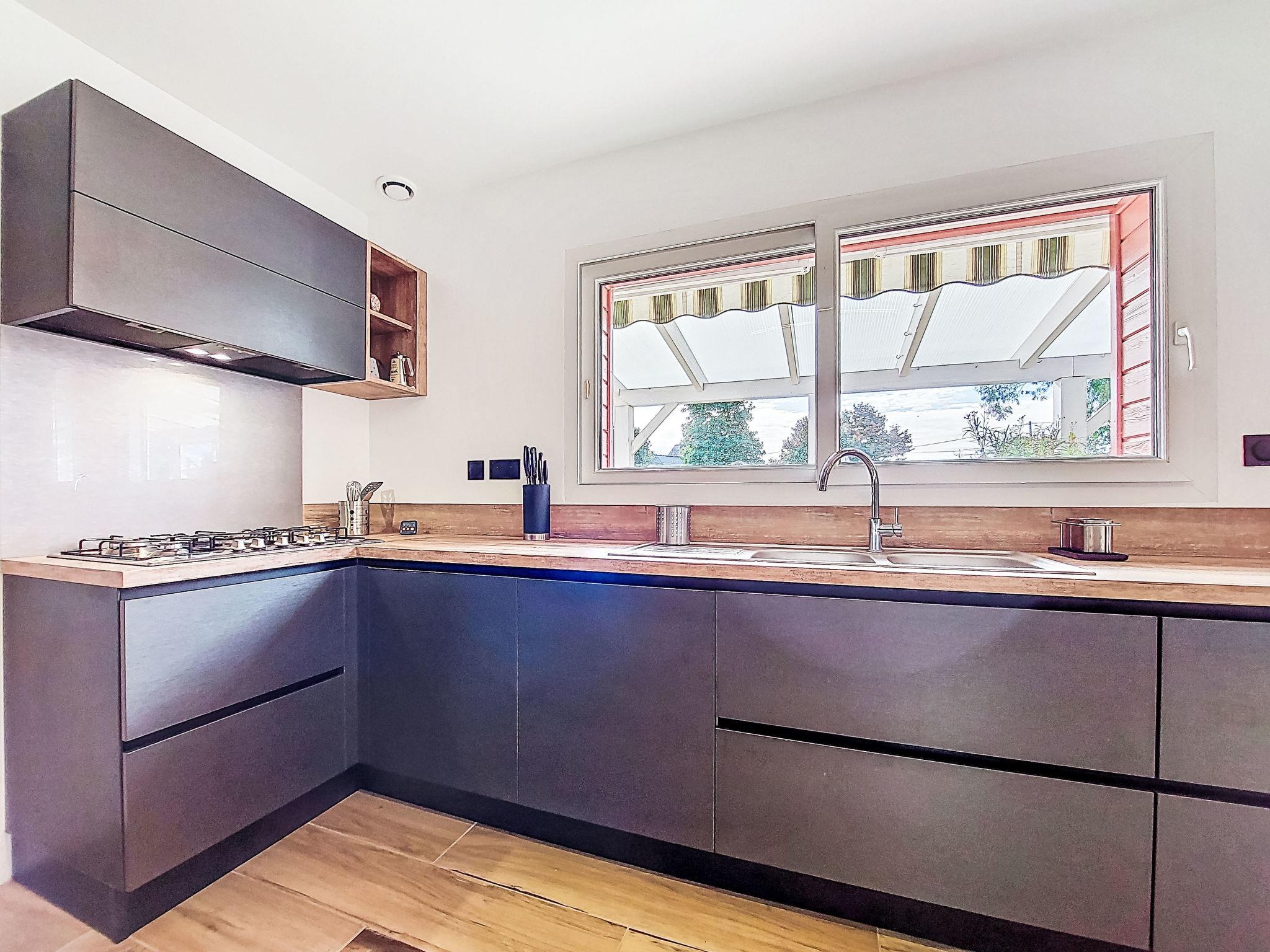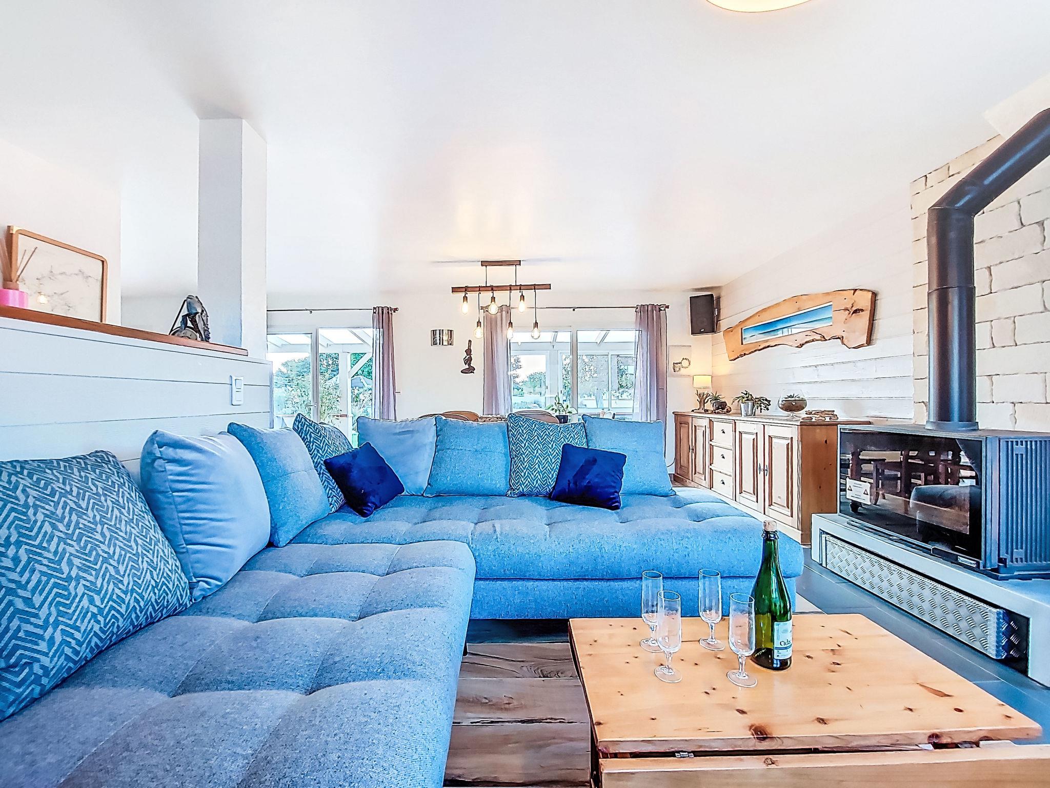 "Guiriden", 4-room house 120 m2. Comfortable and beautiful furnishings: large living/dining room with veranda with Scandinavian wood stove (only for decoration), TV (flat screen), radio. Exit to the veranda. 1 room with 1 french bed (180 cm, length 190 cm), shower. Open kitchen (1 hot plate, oven, dishwasher, 3 gas rings, toaster, kettle, microwave, electric coffee machine) with bar. Exit to the veranda. Sep. WC. Upper floor: 1 room with 1 french bed (140 cm, length 190 cm). 1 room with 1 french bed (140 cm, length 190 cm). Shower, double hand-basin. Oil heating. Terrace furniture, barbecue, deck chairs (2). Facilities: washing machine, dryer, iron, hair dryer. Internet (WiFi, free). Please note: non-smoking house. Maximum 1 pet/ dog allowed. Smoke alarm. Offer by a private individual according to Art. 155, IV of CGI.