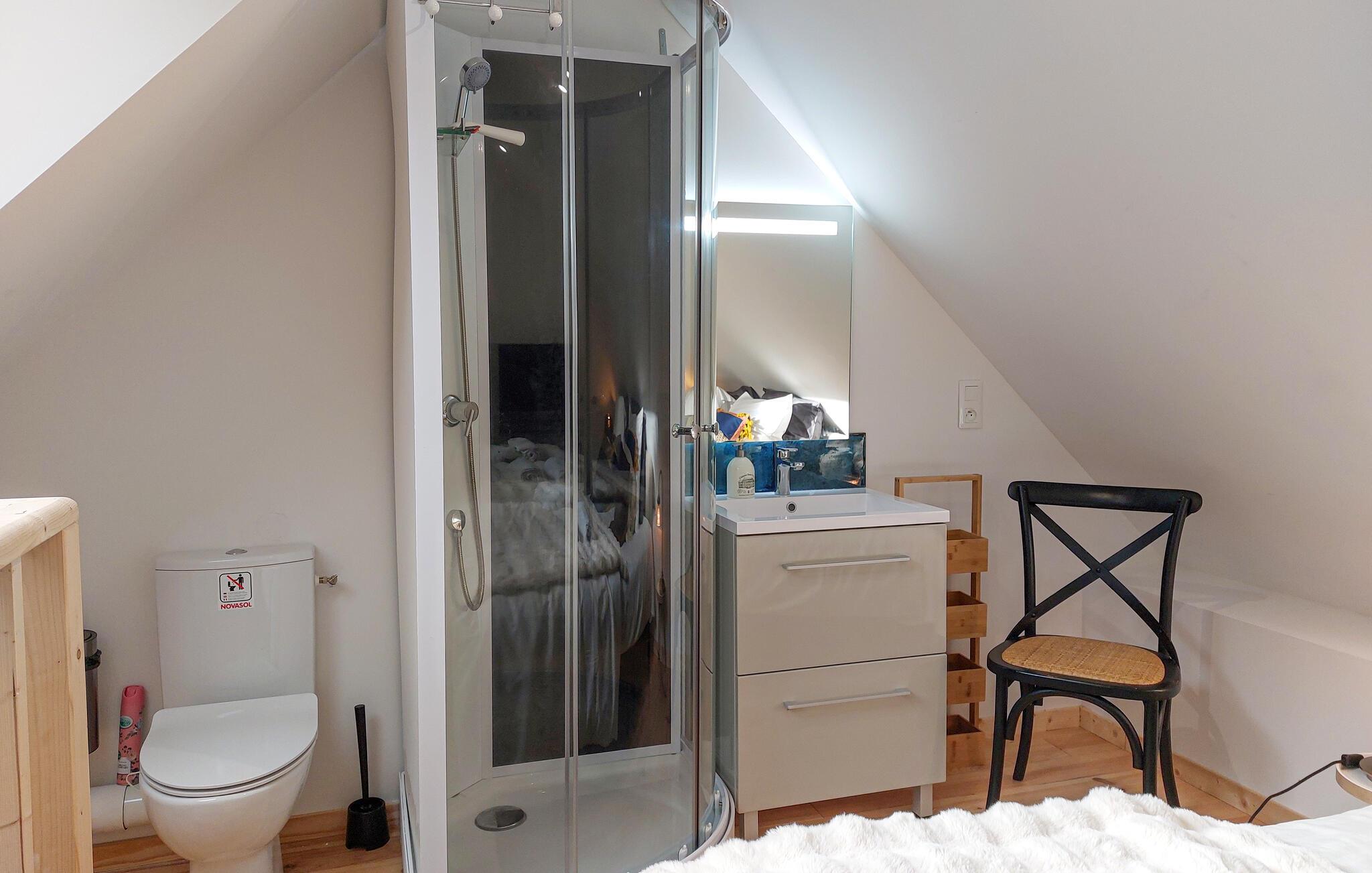 Det charmerende stenhus er opført i en klassisk, bretonsk stil og ligger tæt på stranden. Indretningen fremtræder både moderne og komfortabelt og egner sig helt ideelt til en vidunderlig ferie for to. Lav jeres livretter i det veludstyrede køkken, inden I finder jer godt til rette i sofaen og lægger planer for den kommende dag.