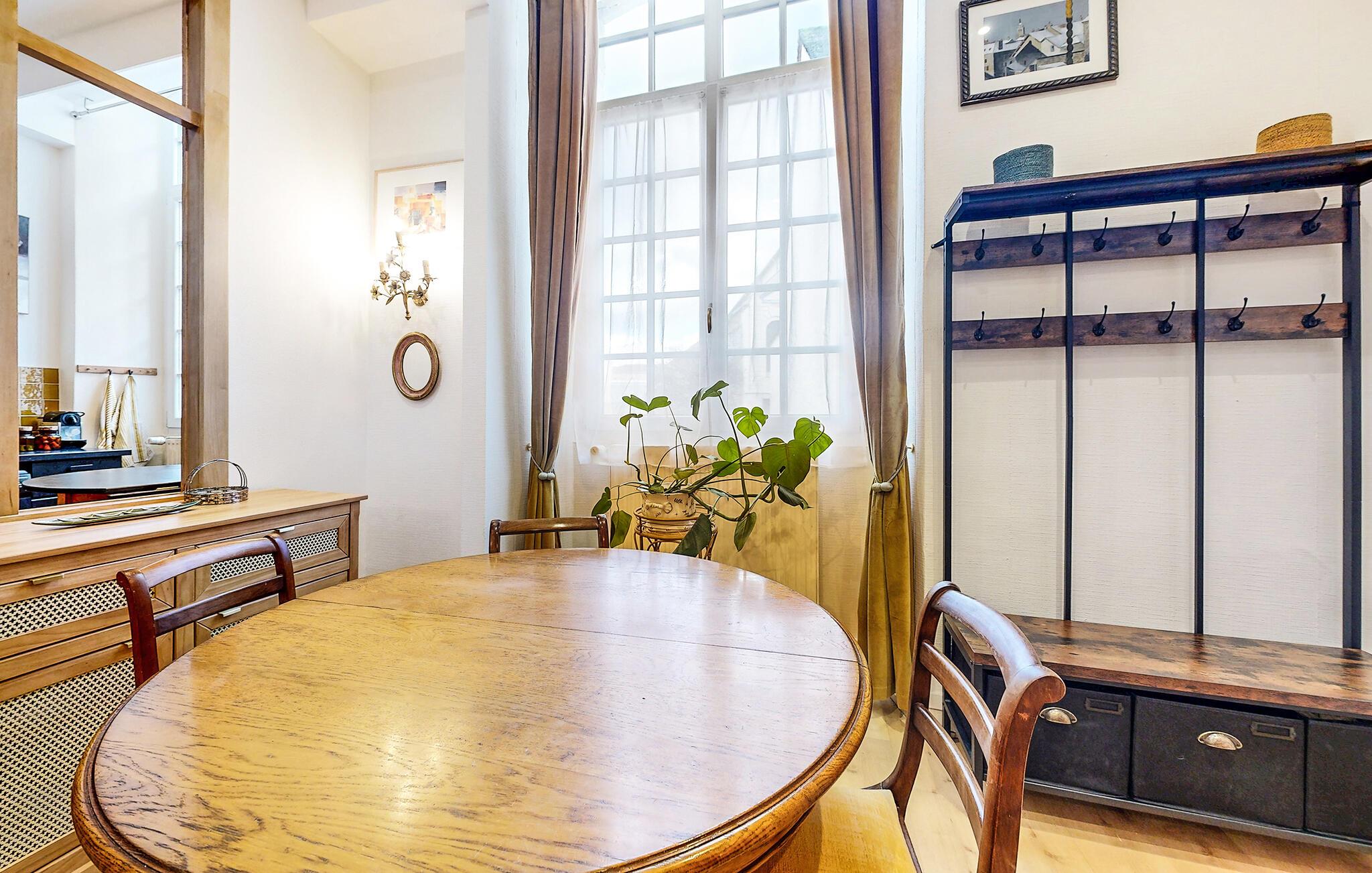 Velkommen til jeres stilfulde ferielejlighed i hjertet af Lons-le-Saunier. Lad jer fortrylle af de elegante møbler og den varme atmosfære. Denne smagfuldt renoverede indkvartering i stueetagen af ??en historisk bygning giver jer den perfekte oase for et afslappende ophold. Gå ind i den rummelige stue og gør jer godt tilpas i sofaen. Den harmoniske blanding af moderne elementer og klassiske accenter, herunder vægdekorationer og de fine træmøbler, skaber en unik atmosfære. Snup en bog fra bogreolen eller nyd et glas vin i det hyggelige opholdsområde. Det åbne køkken lægger op til at lave mad sammen. Tag plads ved det stilfulde spisebord og afslut aftenen i hyggeligt selskab.
