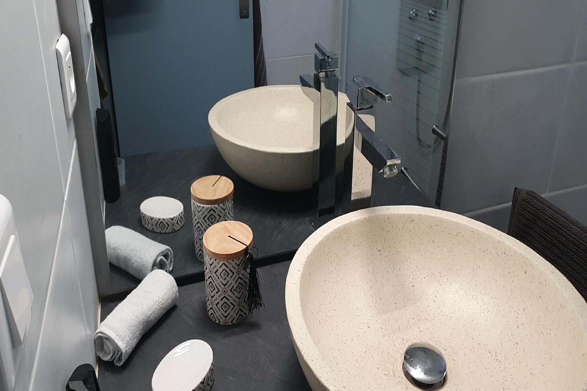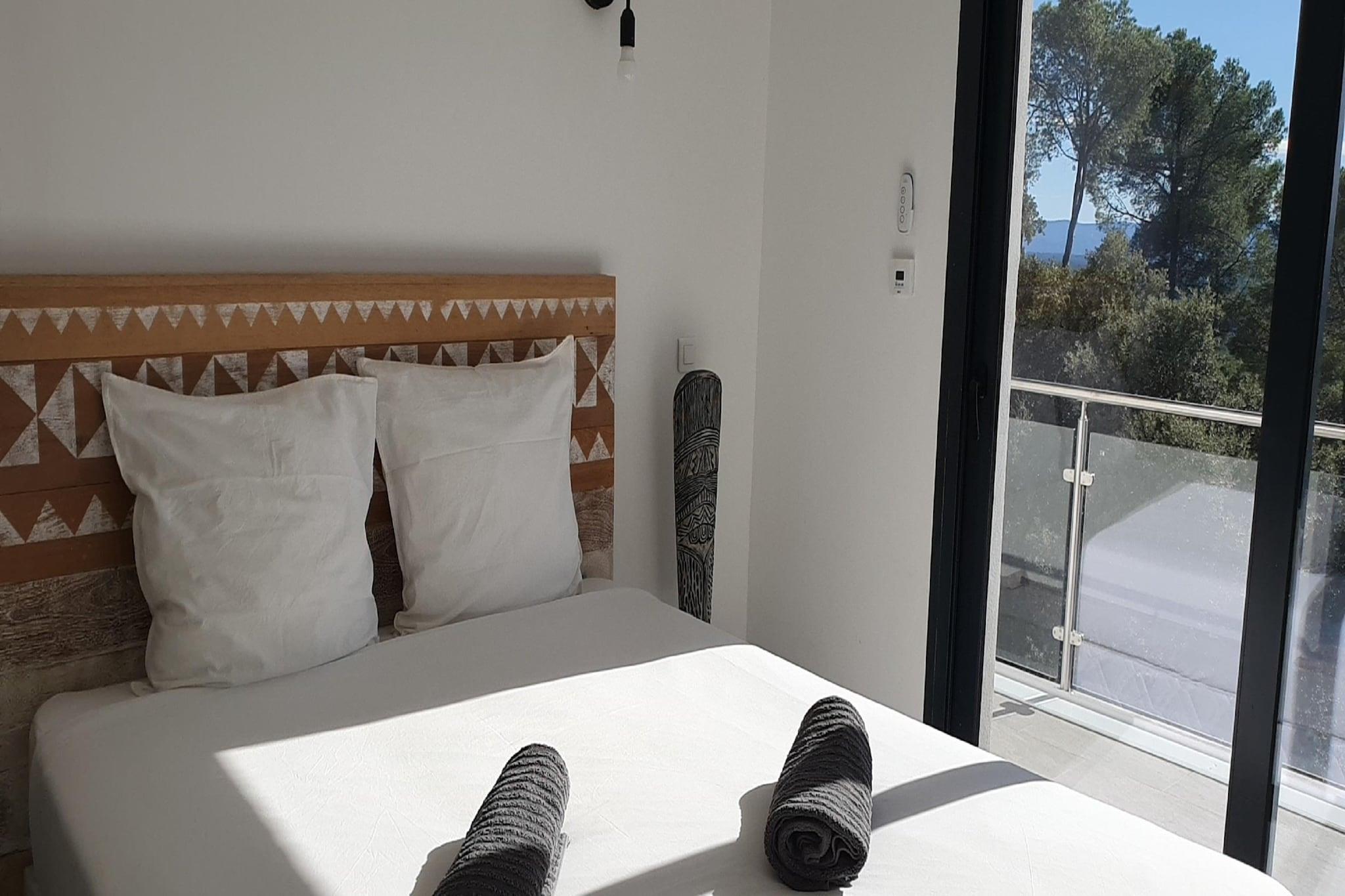 Denne moderne villa i Lorgues har udsigt over vinmarker med Massif des Maures synligt i det fjerne. Smagfuldt indrettet, det skaber en beroligende atmosfære ideel til afslapning. Villaen har plads til 8 gæster fordelt på 4 soveværelser, perfekt til en familieferie. Den private swimmingpool inviterer dig til at tage en forfriskende dukkert, når du vil. Kun 2 km fra byens centrum kan du udforske lokale butikker og nyde den livlige landsbyatmosfære. Golfelskere vil sætte pris på Golf de Salernes, som ligger 15 km væk, til nogle fornøjelige runder i smukke omgivelser. Hvert soveværelse har aircondition for din komfort. Den rummelige terrasse omslutter den øverste etage og forbinder stuen, køkkenet og soveværelserne med en fantastisk udsigt. Den nederste etage har et stort soveværelse med brusebad, dobbeltseng og en dobbelt sovesofa med direkte adgang til swimmingpoolen.
