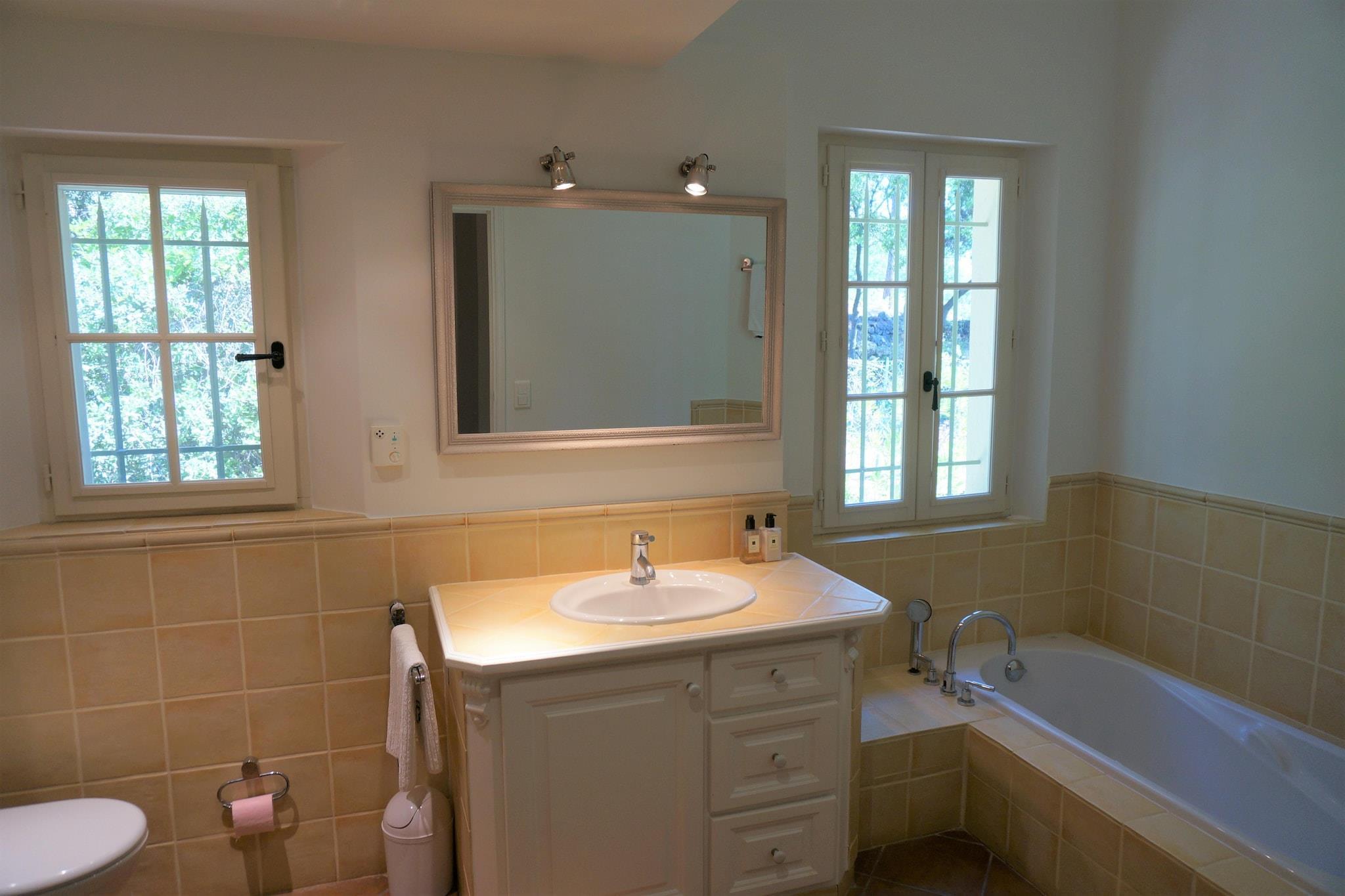 Mas Cabro d'Or er smukt beliggende lige uden for landsbygrænsen i Lorgues. Med en smuk udsigt over (egne) vinmarker og olivenlunde giver det en autentisk provencalsk feriefølelse. Området med vinmarker og olivenlunde er på mere end 30.000 m². Delen omkring huset er indhegnet. Fra stue og køkken er der udgang til terrassen med grill, på solsiden af ??huset. Lorgues er en charmerende provencalsk landsby i hjertet af Provences berømte vinregion. Det er en ideel destination for rejsende, der leder efter fred og afslapning i maleriske omgivelser. Landsbyen er kendt for sin middelalderlige arkitektur og smalle gader, hvor du kan finde adskillige butikker, restauranter og caféer. Der er også talrige historiske seværdigheder at opdage, såsom den romanske kirke og borgruinerne. Indkvarteringen har en swimmingpool med udendørs bruser, gåtrapper og en rulleskodde for sikkerheden. Der er en lille plæne til solbadning rundt omkring med komfortable liggestole og træer, der giver den nødvendige skygge. Ved siden af ??swimmingpoolen finder du et rummeligt loungesæt. Til rekreation tilbyder overnatningsstedet et bordtennisbord, spillebord og en jeu de boules-bane. Denne rummelige villa har et landligt, moderne design og et veludstyret køkken med Nespresso-maskine og opvaskemaskine. I kan spise sammen ved det store spisebord, og det giver direkte adgang til den overdækkede terrasse, også udstyret med et stort spisebord. Den attraktive stue har en stor pejs, og du kan bruge WiFi eller læse en bog på de komfortable lænestole. Takket være de tykke vægge og god isolering er aircondition ikke nødvendigt i dette hus.