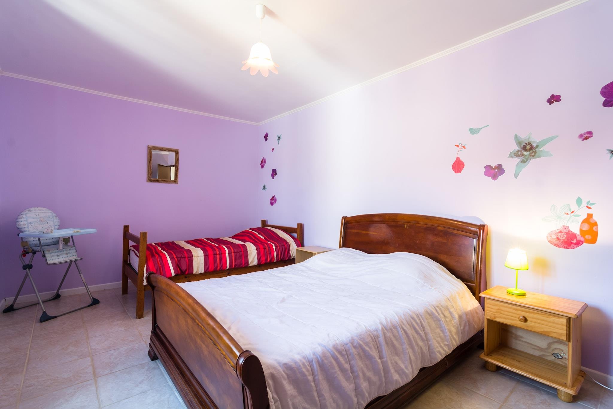 Køkken(kaffemaskine, ovn, mikrobølgeovn, opvaskemaskine , køle-fryseskab), stue / spisestue(Fjernsyn, pejs, DVD-afspiller, CD-afspiller), soveværelse(dobbeltseng(160 x 200 cm)), soveværelse(enkeltseng, dobbeltseng), soveværelse(enkeltseng, dobbeltseng), soveværelse(dobbeltseng), badeværelse(bruser), toilet, opholdsrum(toilet), vaskemaskine, varme, terrasse, havemøbler, grill, swimmingpool(privat, 10 x 5 m., opened from 1/2 Apr upto and including Sep), legeredskaber, bordtennisbord