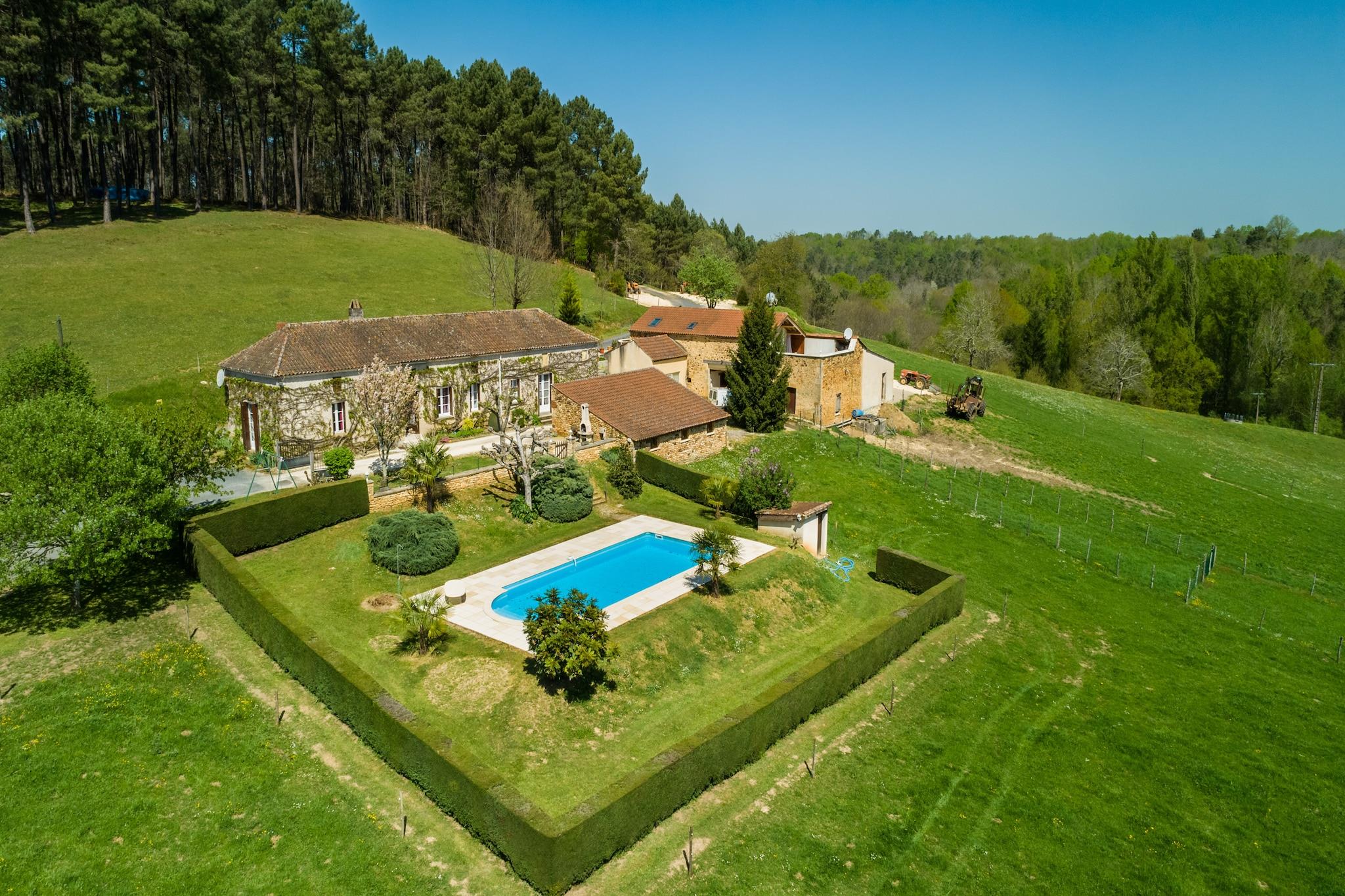Dette feriehus med 2 soveværelser i Loubejac tilbyder en fredelig flugt for op til 4 gæster. Det ligger i grønne, skovklædte omgivelser og har egen pool, terrasse med panoramaudsigt og have med gynge, boulebane og bordtennis. Ideel til familier eller venner, det er den perfekte base for at udforske Dordognes landskab, mens du nyder hyggelige bekvemmeligheder og udendørs sjov. I nærheden kan du besøge bastidebyen Villefranche-de-Périgord (14 km) eller svømme i søerne ved Prats-du-Périgord (7 km), Frayssinet (10 km) og Cazals (13 km). For eventyr kan du sejle i kano i Dordogne-dalen eller udforske grotterne i Les Eyzies (46 km). Oplev naturskønhed i The Marqueyssac Gardens, og nyd det lokale køkken på Ô Faim Goût'R Mets, Le Boïdicou eller La Taverne de Lou Castelou. Slap af med drinks på Saint Lulu's, en hyggelig bar i Vézac. Uanset om du slapper af ved poolen eller udforsker middelalderlandsbyer, tilbyder dette feriehus en rolig og naturskøn Dordogne-oplevelse.