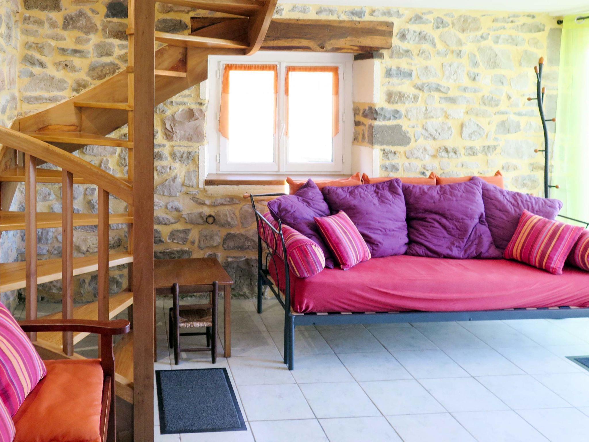 Beautiful, cosy country house "Sarrouil", surrounded by trees and fields. In a hamlet 3 km from the centre of Loubressac, 11 km from the centre of Saint-Céré, 11 km from the centre of Gramat, 15 km from the lake. Private: natural state property 800 m2 (fenced), orchard, swimming pool fenced (9 x 4 m, depth 140 cm, seasonal availability: 01.Jan. - 31.Dec.) with internal staircase and salt-electrolysis pool-cleaning system. Boules, parking (for 2 cars) at the house on the premises. Shop 3 km, supermarket 11 km, bus stop "Puybrun" 17 km, bathing lake 15 km.
