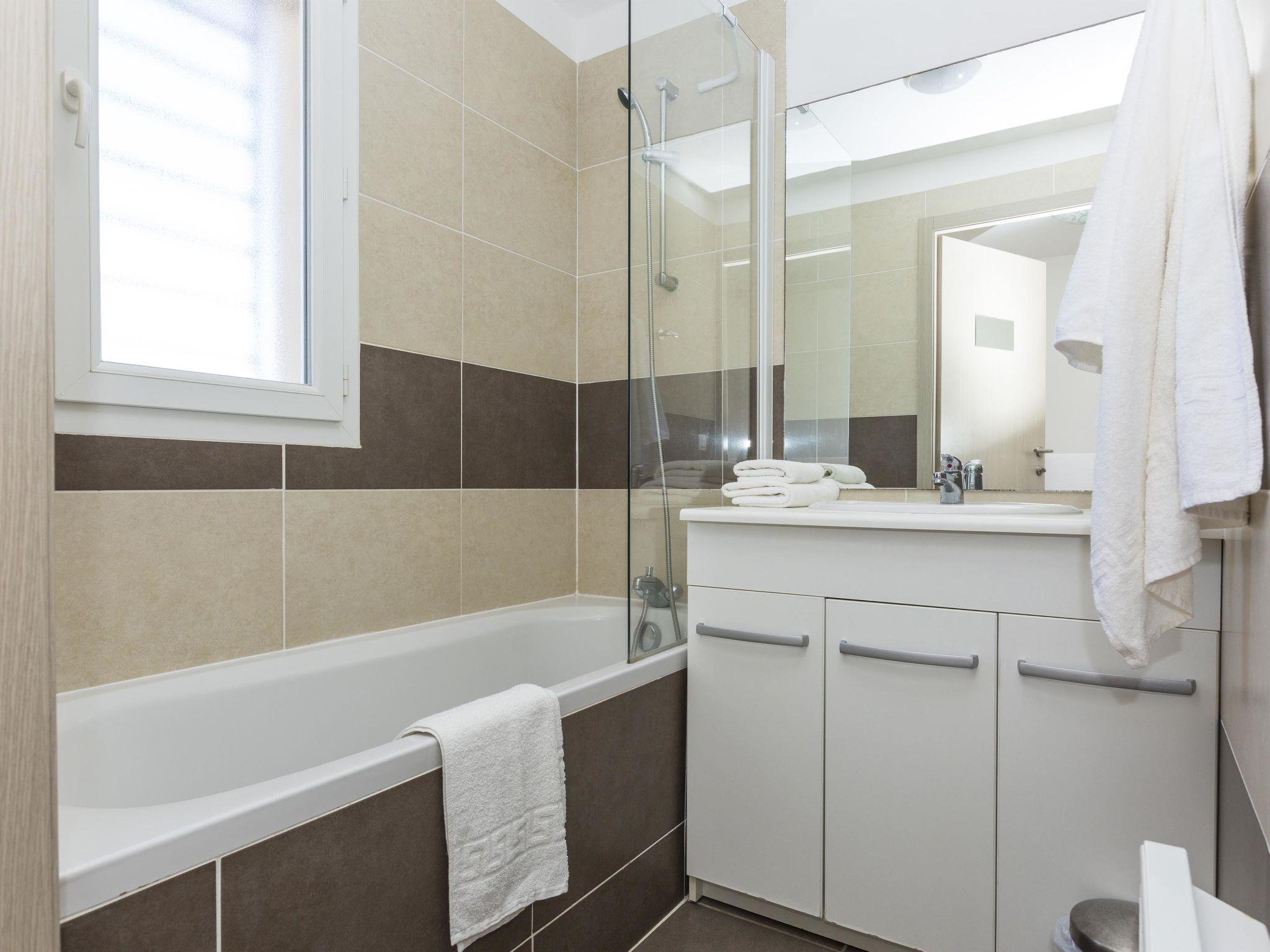 "Odalys Référence Les Villas Bel Godère", 3-room terraced house 67 m2 on 2 levels. Bright, modern furnishings: living/sleeping room with 1 double sofabed, dining table and TV can be hired. Exit to the terrace. 1 room with 1 french bed. 1 room with 2 beds. Small, open kitchen (dishwasher, 4 ceramic glass hob hotplates, microwave, electric coffee machine). Sep. WC, bath or shower. Upper floor: open gallery with sloping ceilings with 1 french bed. Electric heating, air-conditioning. Terrace. Terrace furniture. Facilities: children's high chair, baby cot (extra). Please note: non-smoking house. Smoke alarm, fire extinguisher. Instead of an enclosed bedroom, some sleeping areas are located in an open-plan area (gallery, alcove, etc.).