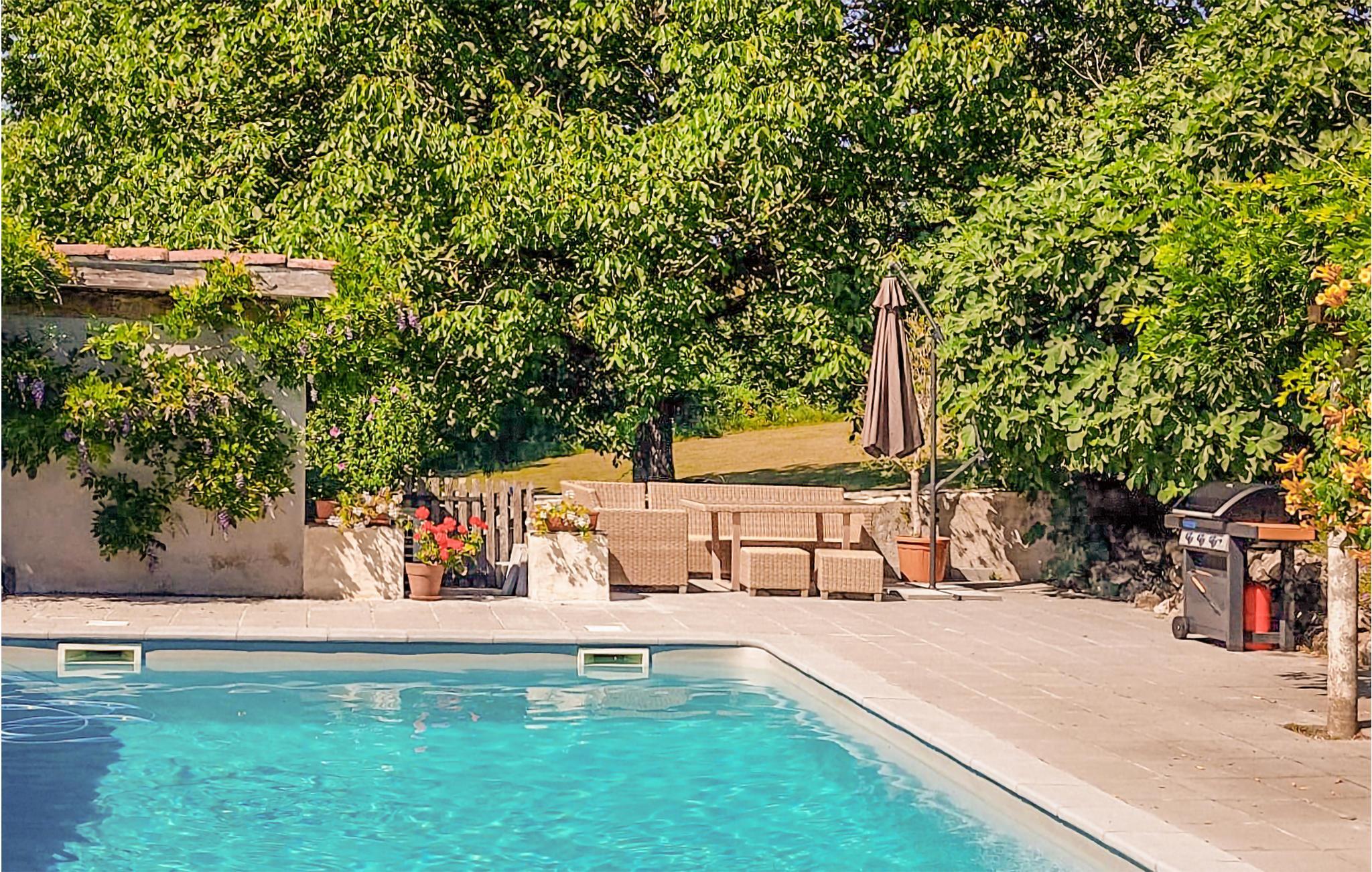 Lad jer forkæle af solen på terrassen, snup en frisk dukkert i poolen som I har lyst, og senere kan I servere en lækker middag fra grillen og slutte dagen sammen udendørs mellem havens gamle træer.