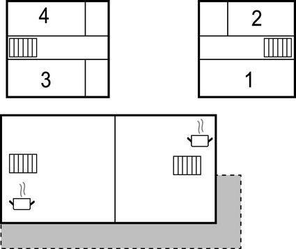 Badeværelse 6m2 (nr. 1) - WC. Varmt og koldt vand. Bruser og badekar