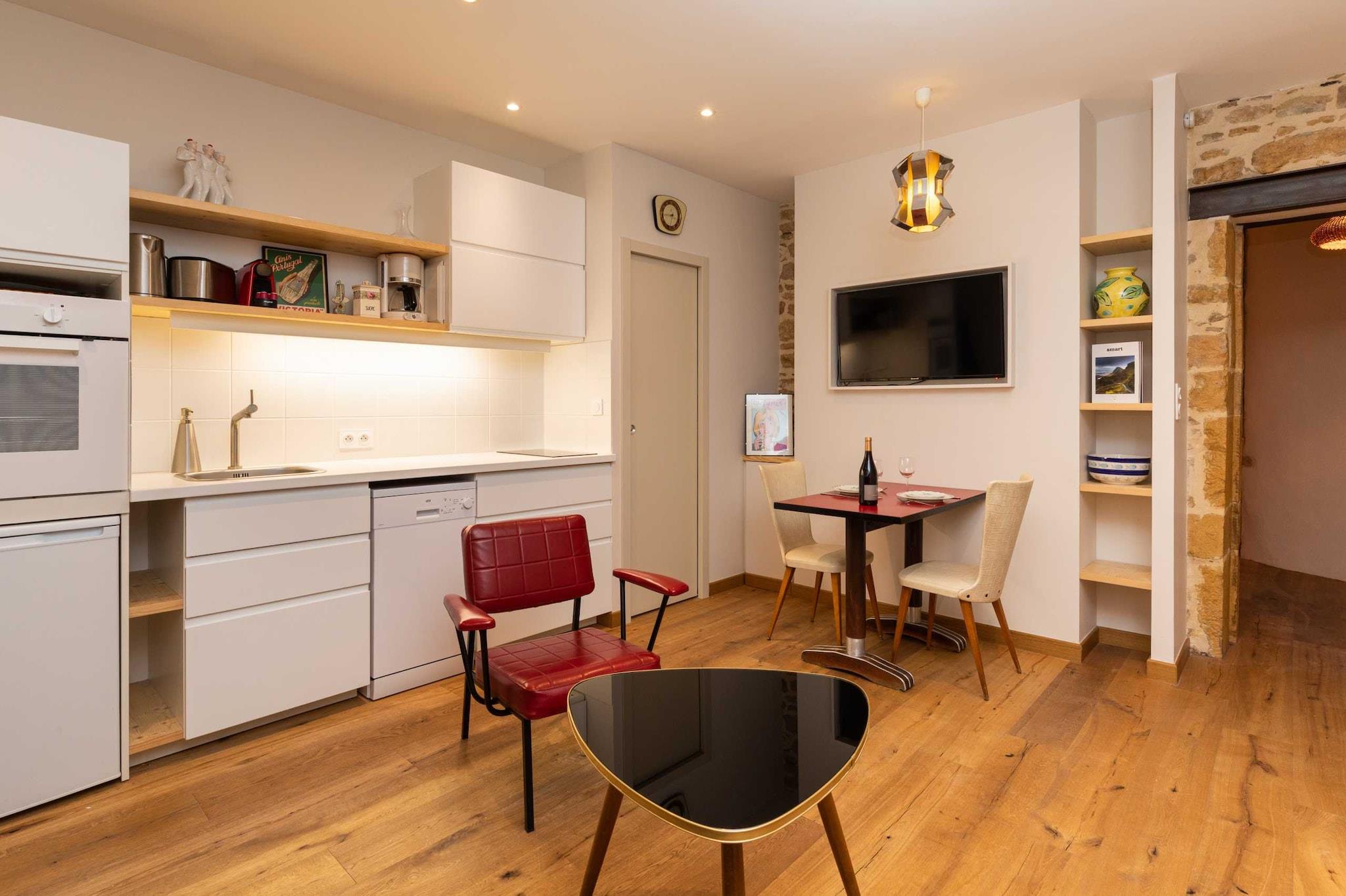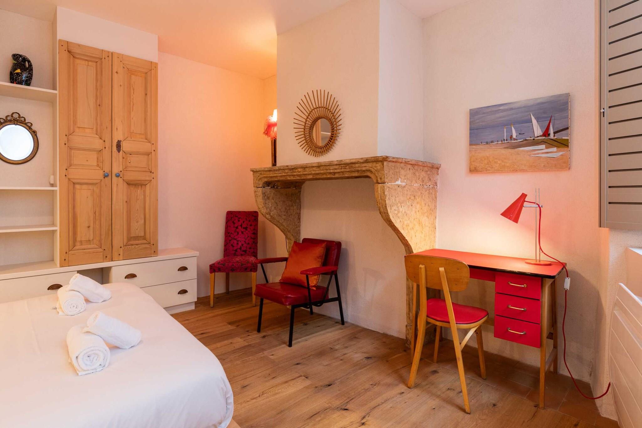 Lejlighed med masser af karakter, fuldstændig renoveret og indrettet af en prestigefyldt arkitekt. null Du vil kunne nyde dens ro under dit ophold. Den er designet med avancerede faciliteter for at tilfredsstille alle dine ønsker. Lejligheden ligger på 1. sal uden elevator. Denne fuldstændig renoverede og udstyrede lejlighed kan rumme op til 4 personer med et soveværelse udstyret med en dobbeltseng (140x200) og en stue med en dobbelt sovesofa. Du vil have eksklusiv adgang til lejligheden og vil være fri til at bruge alt udstyr: ubegrænset internet, tv, udstyret køkken, kaffemaskine, vaskemaskine og meget mere...
