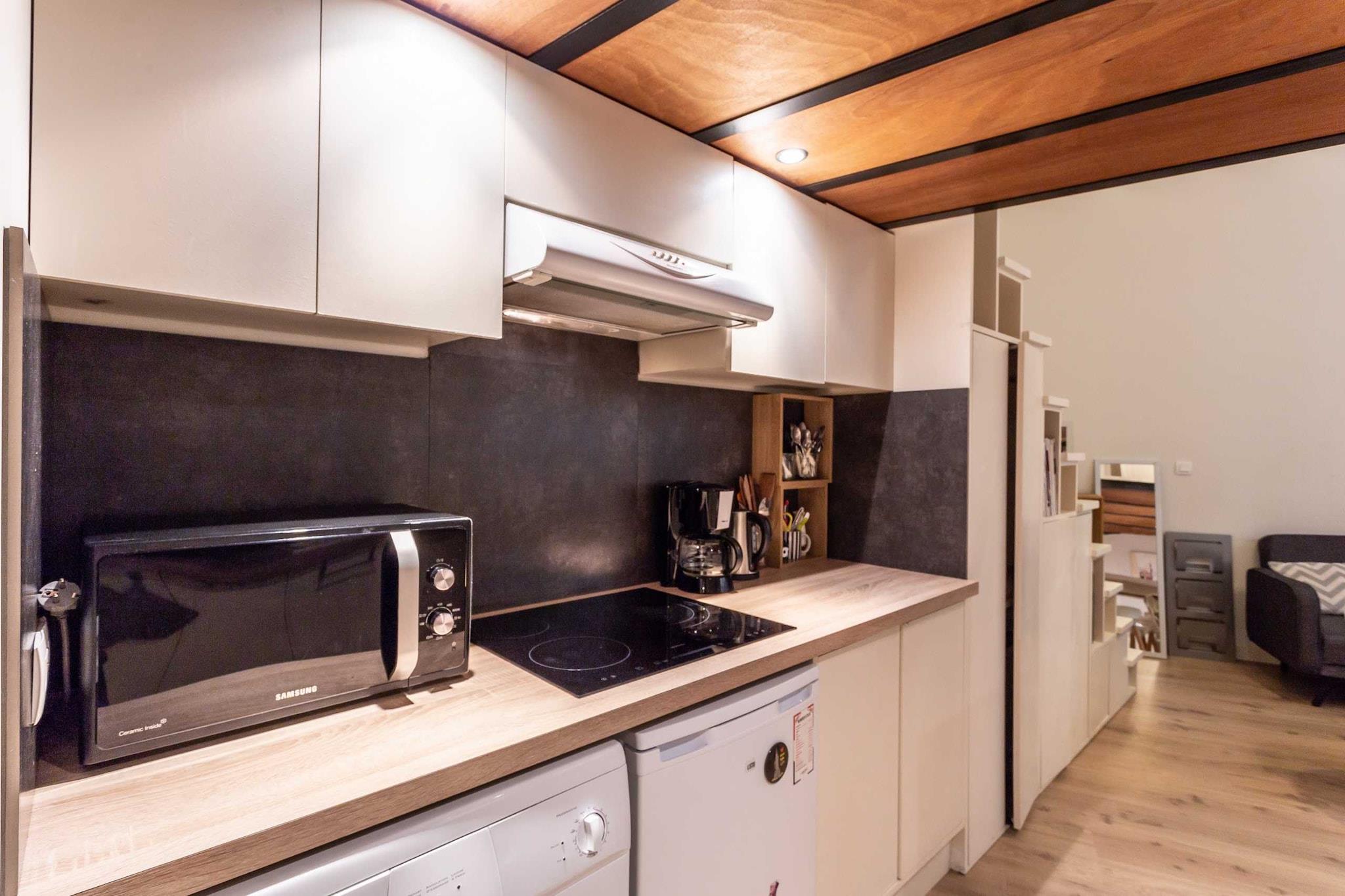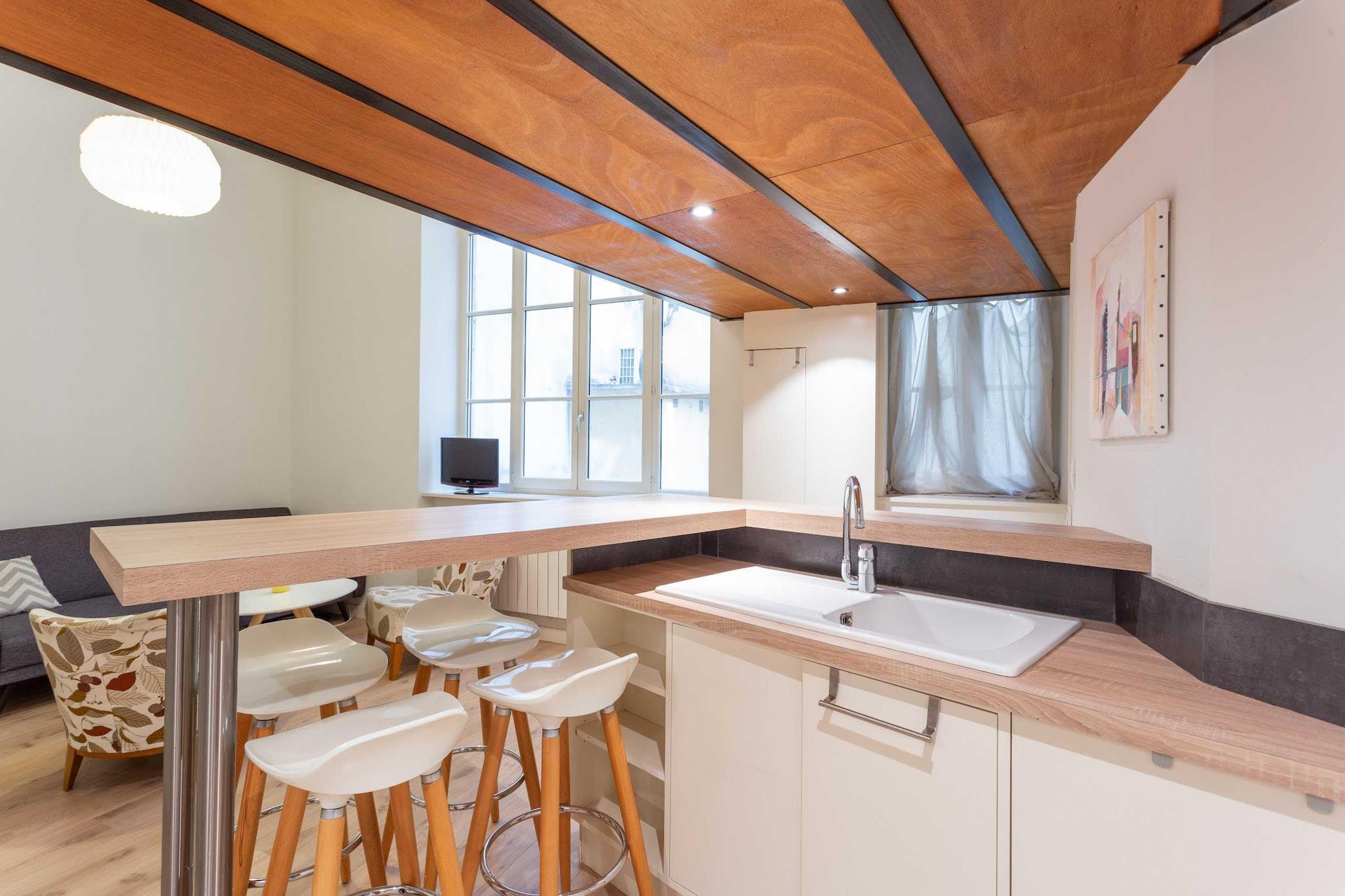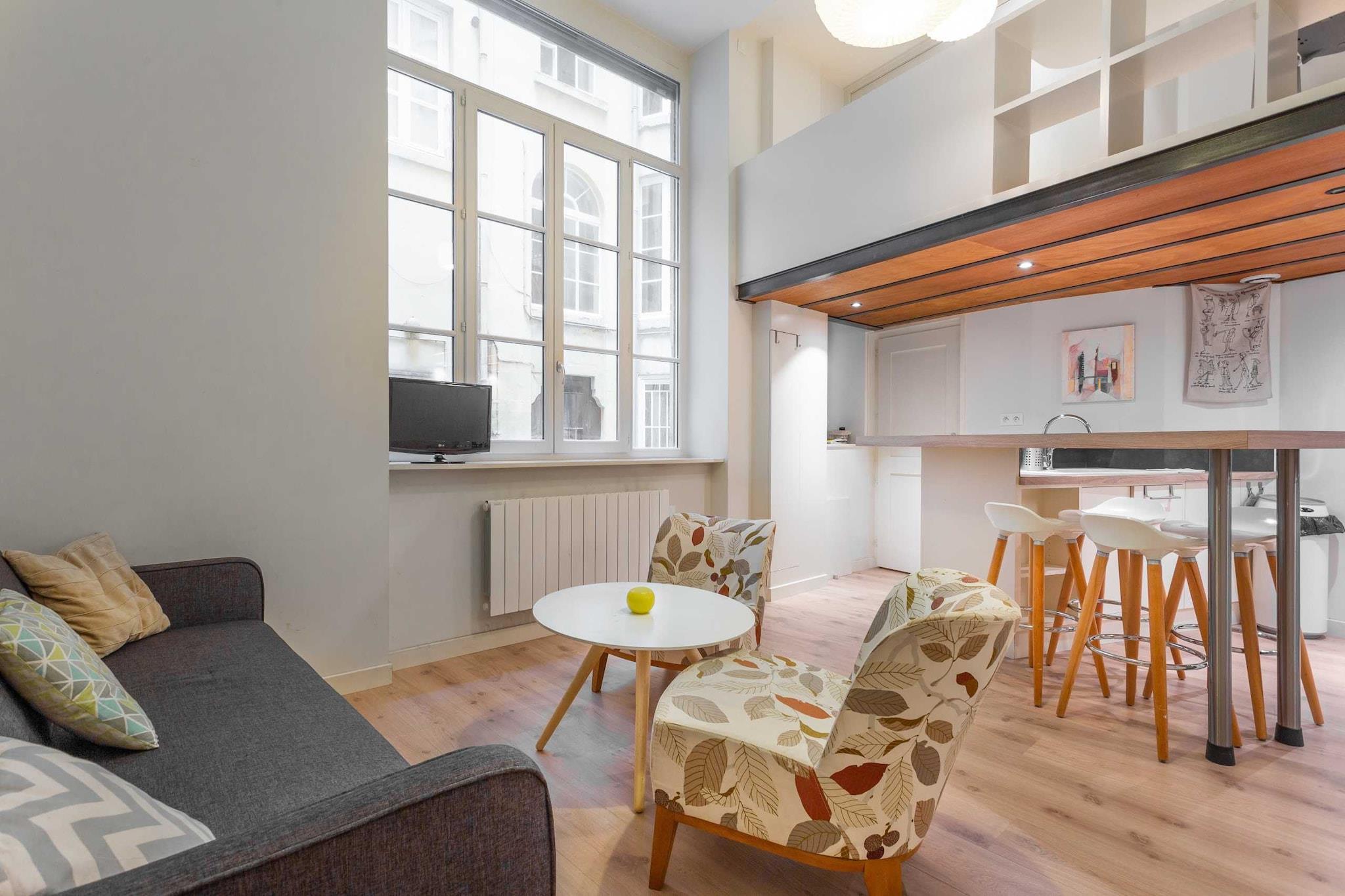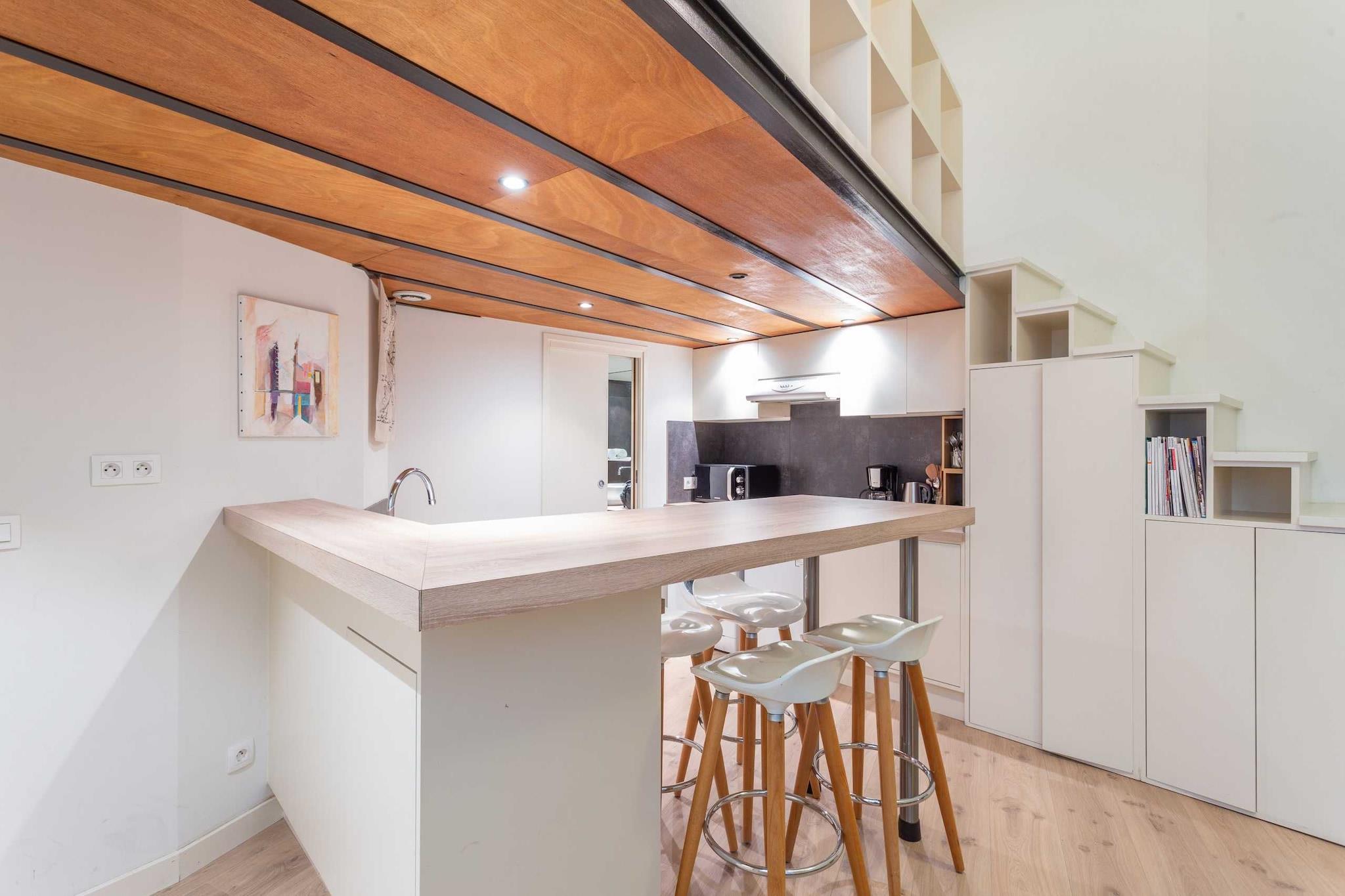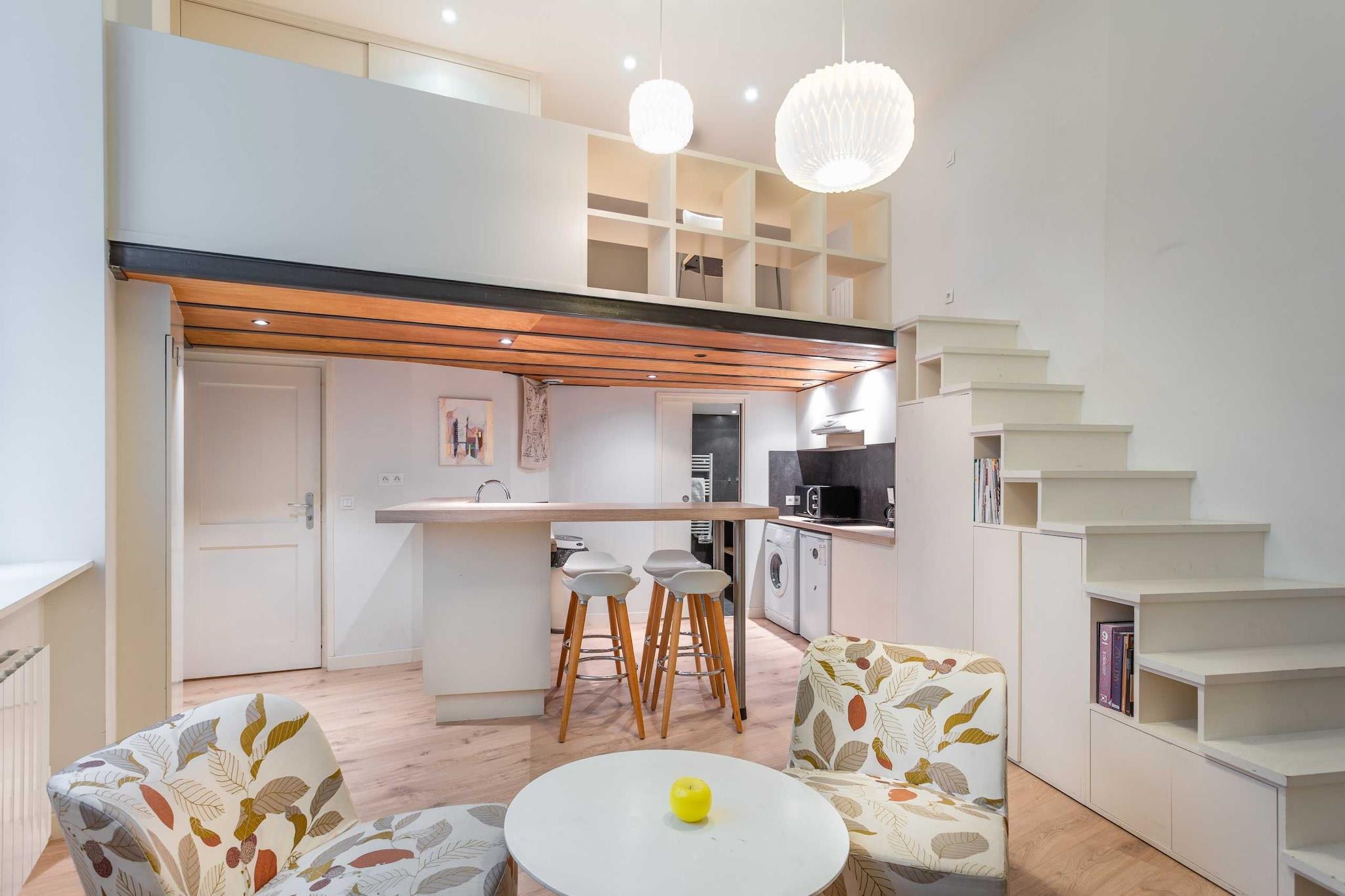 Lejlighed med masser af karakter, fuldstændig renoveret og indrettet af en arkitekt. null Denne fuldstændig renoverede og udstyrede lejlighed har plads til op til 2 personer med et soveværelse på mezzaninen med en dobbeltseng (160x200). Du har eksklusiv adgang til lejligheden og kan frit bruge alle faciliteterne: ubegrænset internet, tv, udstyret køkken, kaffemaskine, vaskemaskine og meget mere...