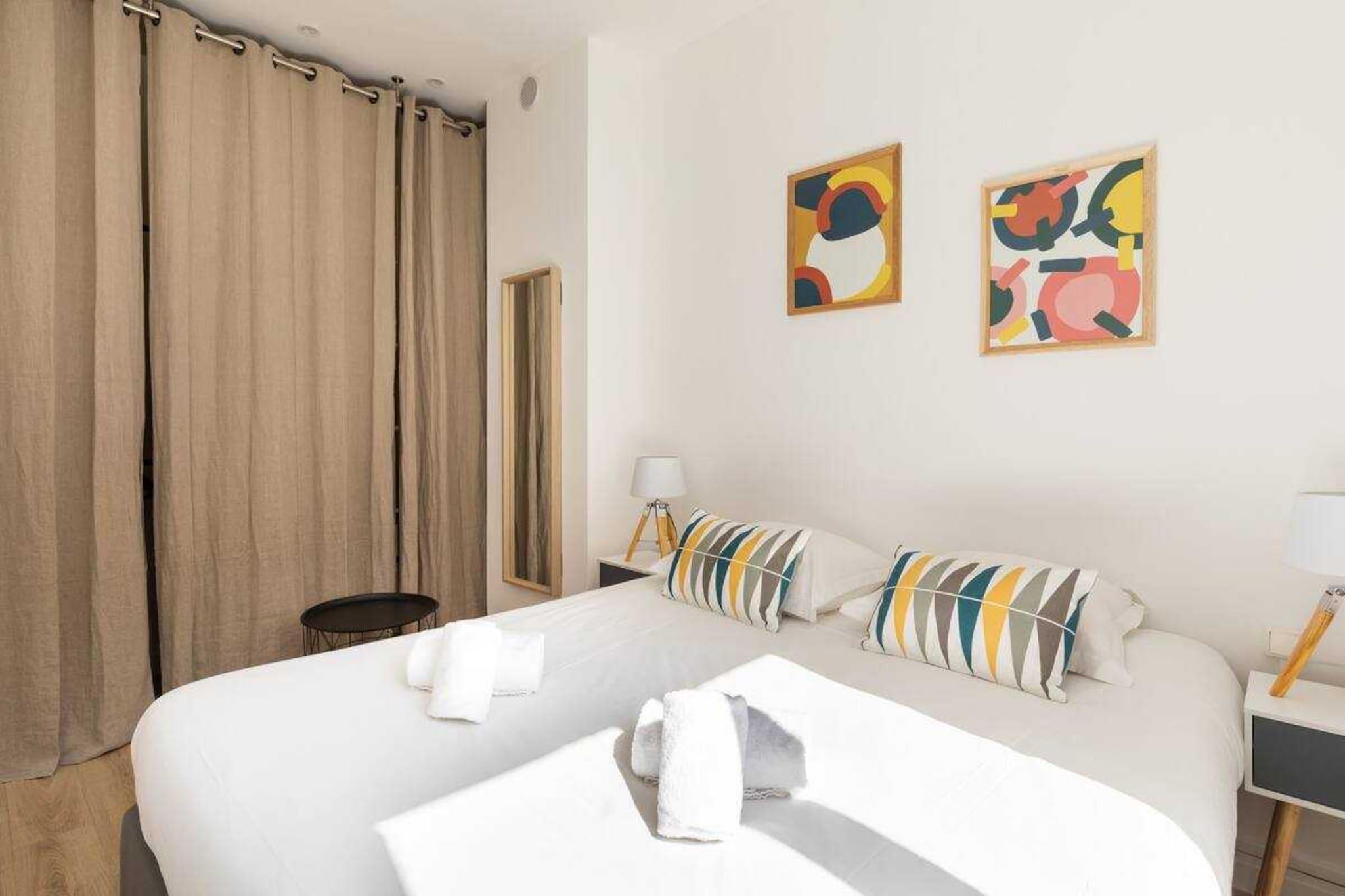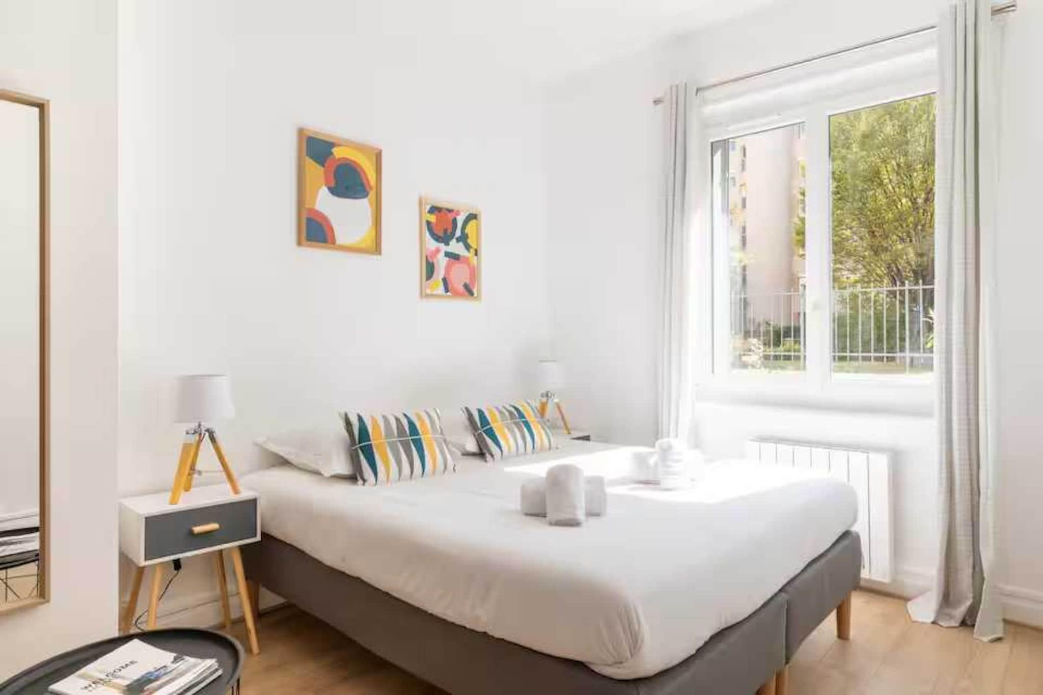 Denne fuldt renoverede og udstyrede lejlighed har plads til op til 2 personer med et soveværelse udstyret med en queensize-seng (160x200). null Lejlighed med masser af karakter, fuldstændig renoveret og indrettet af en prestigefyldt arkitekt. Under dit ophold vil du kunne nyde dens lysstyrke og ro. Den er designet med eksklusive tjenester for at tilfredsstille alle dine ønsker. Denne fuldt renoverede og udstyrede lejlighed har plads til op til 2 personer med et soveværelse udstyret med en queensize-seng (160x200). Du vil have eksklusiv adgang til lejligheden og kan bruge alle faciliteterne. Ubegrænset internet, udstyret køkken, kaffemaskine, vaskemaskine og meget mere. Aircondition er en mobil enhed. Rengøringsgebyrer inkluderer rengøring ved ankomst og efter afrejse, samt sengelinned og håndklæder, toiletartikler og kaffe ved ankomst. Du vil kun få udleveret ét sæt nøgler til dit ophold. Der er en parkeringsplads tilgængelig afhængigt af tilgængelighed til en pris af 15 euro pr. dag. Giv mig venligst besked, hvis du har brug for den. Indtjekning i lejligheden er med egen forplejning fra kl. 17:00. Mulighed for tidlig ankomst kl. 14:00 er mulig mod et ekstra gebyr på +20 EURO. Ved afrejse bedes du efterlade boligen, som du fandt den ved ankomst. Der opkræves et ekstra rengøringsgebyr, hvis udtjekningstidspunktet ikke overholdes. Tak for din forståelse.