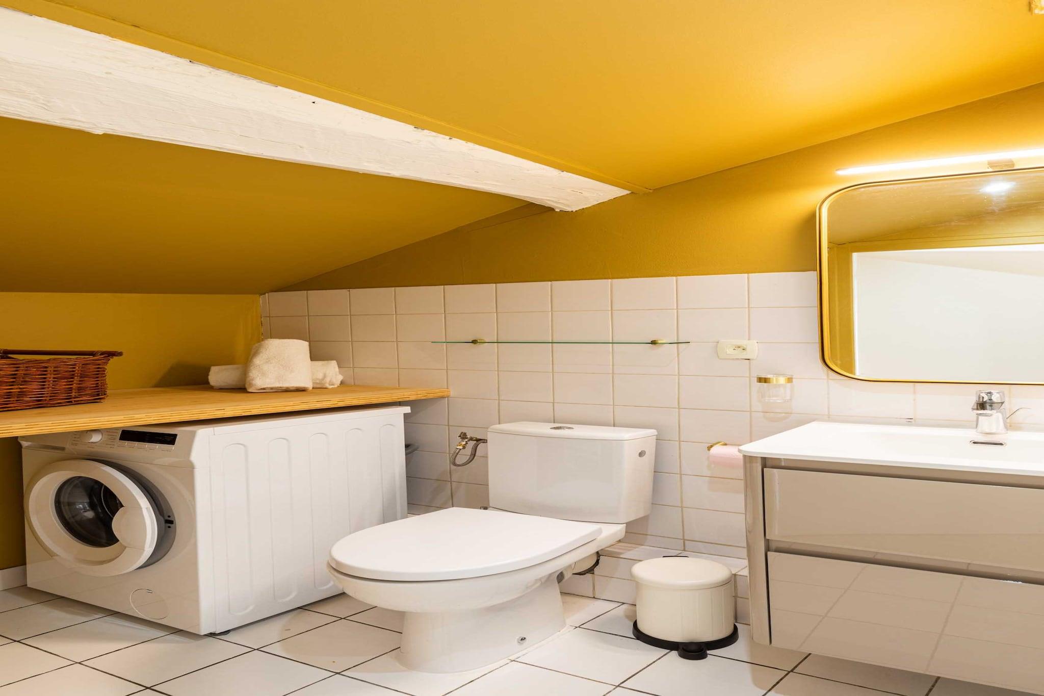 På 1. etage: (Stue(dobbeltsovesofa, Fjernsyn), Køkken(elkedel, brødrister, komfur, kaffemaskine, mikrobølgeovn, opvaskemaskine , køleskab, , , Wine glasses), soveværelse(, Queen Bed)) Loft: (badeværelse(, håndvask, toilet, vaskemaskine, føntørrer, Håndklæder inkl., , )) , , varme, barnestol, strygejern, , Carbon monoxide detector, Cleaning Disinfection, Cleaning before checkout, Enhanced cleaning practices, High touch surfaces disinfected, Long term stays allowed, Washer in common space