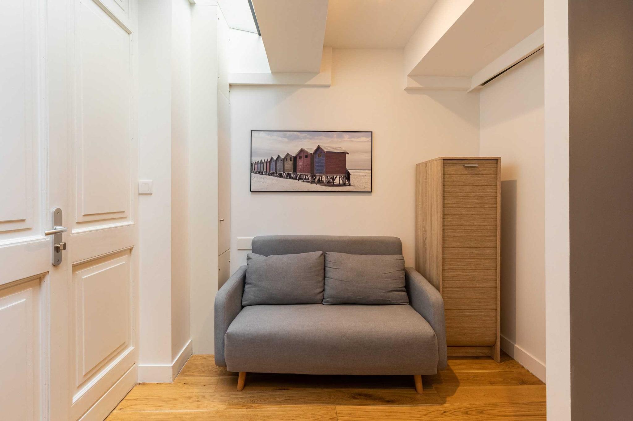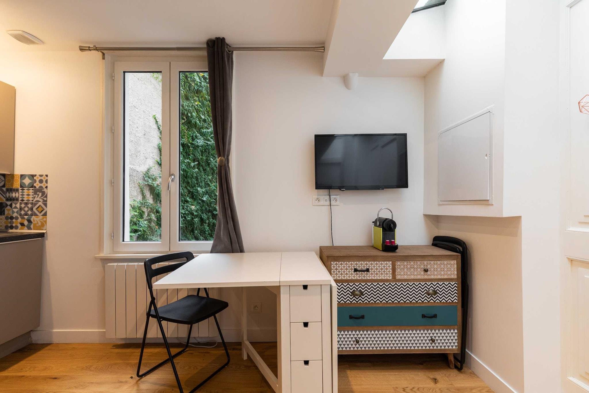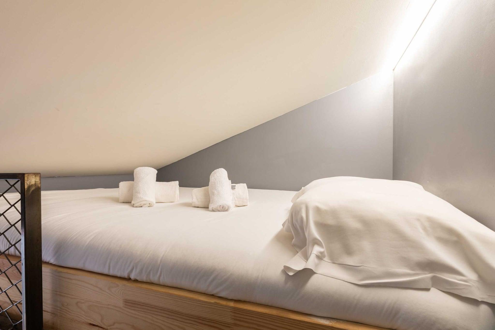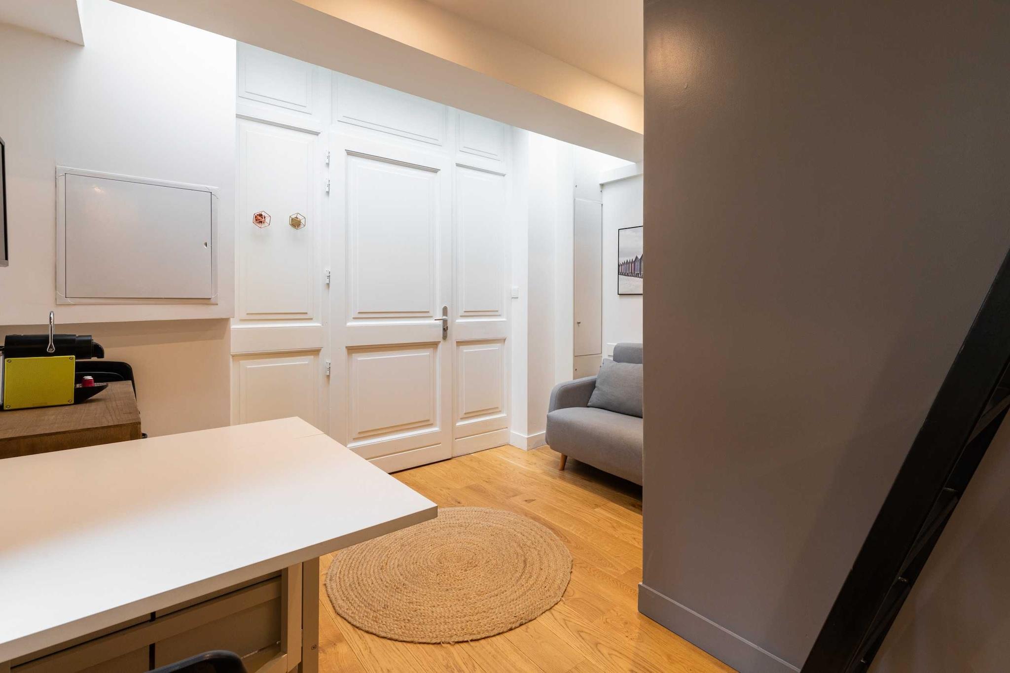 Nyrenoveret og indrettet lejlighed af en prestigefyldt arkitekt. Du vil kunne nyde dens hyggelige side og ro under dit ophold. null Lejligheden ligger på første sal uden elevator. Denne fuldt renoverede og udstyrede lejlighed har plads til op til 2 personer (et soveværelse på mezzaninen med en dobbeltseng). Du har eksklusiv adgang til lejligheden og kan frit bruge alt udstyr. Sengelinned og håndklæder er inkluderet. Ubegrænset internet, tv, udstyret køkken, kaffemaskine.
