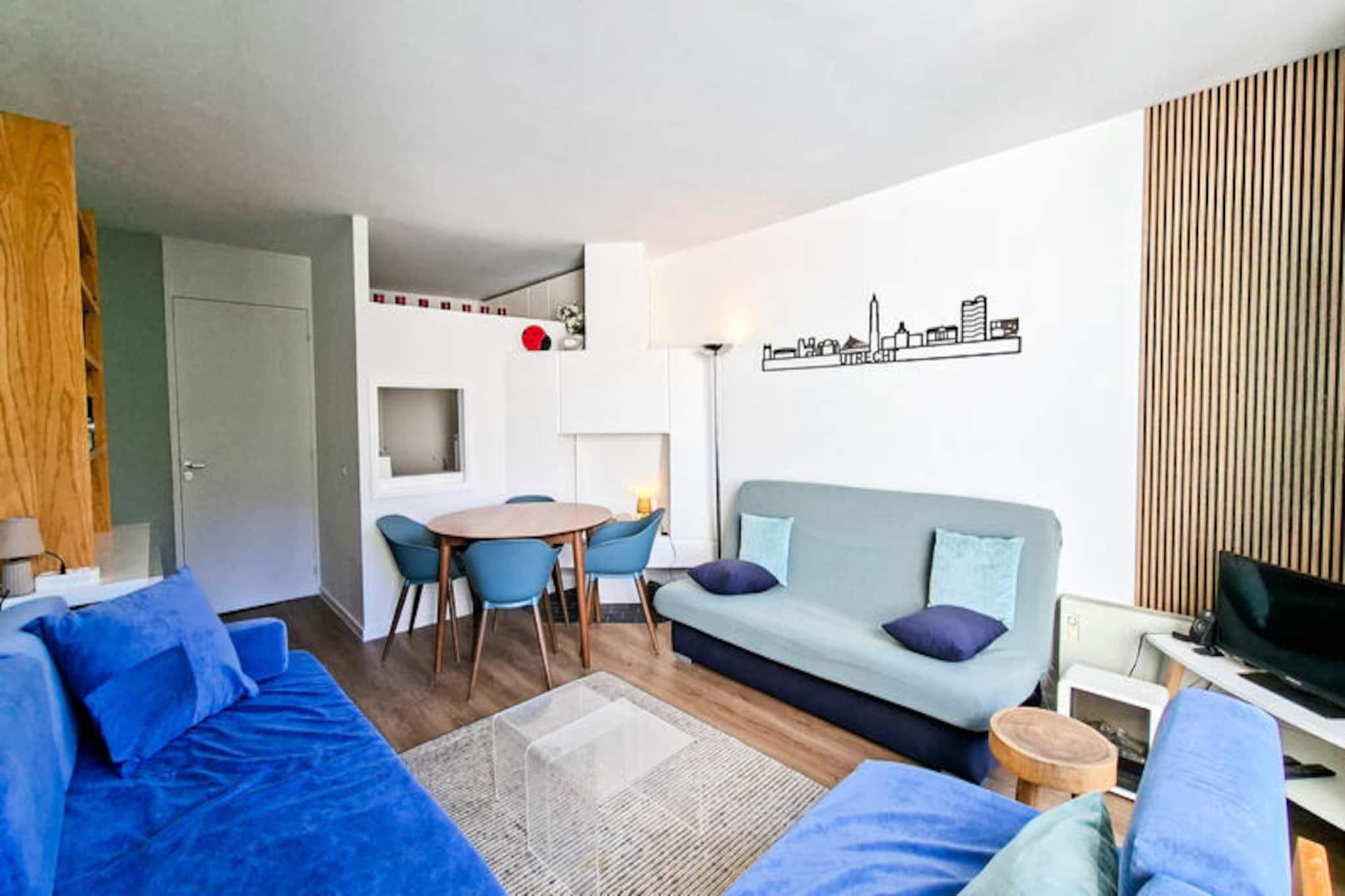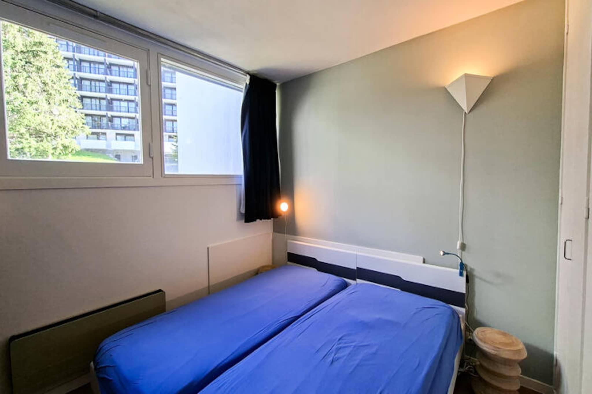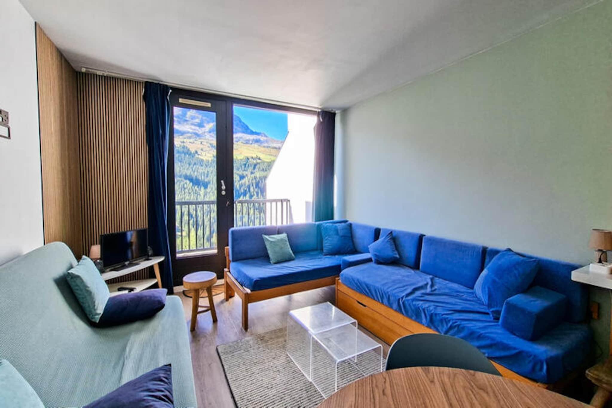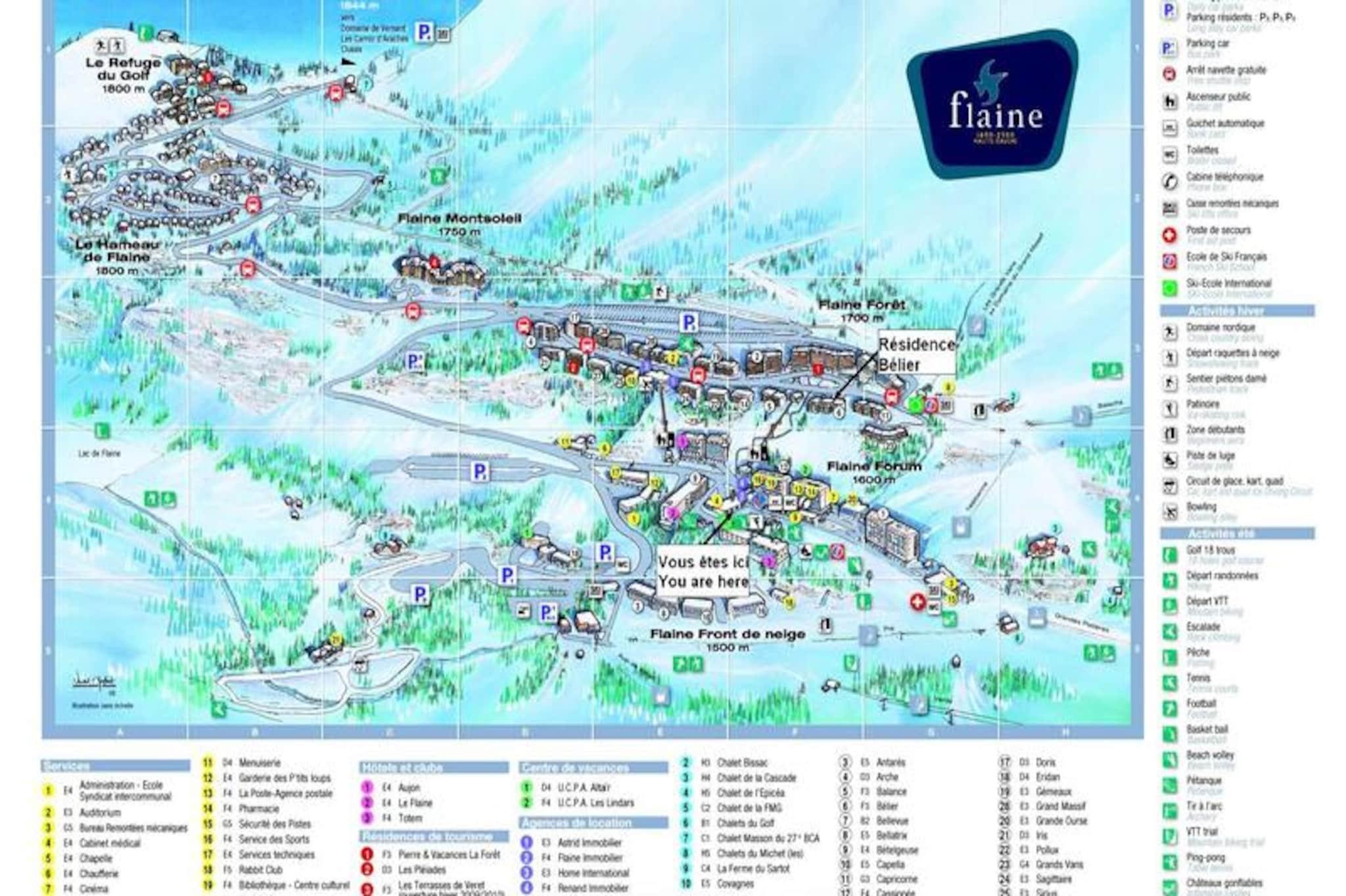 I det fredfyldte Flaine Forêt-distrikt tilbyder denne charmerende lejlighed et indbydende tilflugtssted, kun 150 meter fra pisterne og skiskolens mødesteder. Omgivet af det majestætiske alpine landskab kan ejendommen prale af en hyggelig atmosfære, der er perfekt til en mindeværdig bjergferie. Uanset om du er her for at grave dig gennem frisk puddersne eller udforske de livlige sommerløjper, sikrer denne beliggenhed, at du altid er tæt på begivenhederne, mens du nyder en fredelig ferie. Den 48 m² store sydvendte lejlighed er omhyggeligt designet til op til seks gæster. Soveværelset har en køjesenge og to enkeltsenge, mens stuen tilbyder en komfortabel dobbeltsovesofa. Et moderne åbent køkken, udstyret med ovn, mikrobølgeovn og opvaskemaskine, gør madlavning til en leg. Slap af i den rummelige opholdsstue med fladskærms-tv, indbygget dvd-afspiller og gratis Wi-Fi, eller slap af på den smukke træterrasse, der indfanger solens varme hele dagen. Yderligere faciliteter inkluderer et badeværelse med badekar, separat toilet og et praktisk skiskab. Bemærk venligst, at kæledyr og rygning ikke er tilladt, og sengelinned og håndklæder er ikke inkluderet. Lejlighedens beliggenhed er ideel til både vinter- og sommereventyr. Om vinteren gør de nærliggende pister og skiskole den perfekt til familier og begyndere, mens erfarne skiløbere vil sætte pris på den nemme adgang til Flaines omfattende skiområde. Om sommeren kan gæster, der bor seks nætter eller mere, benytte Flaine Summer Pass, der tilbyder en række aktiviteter for at udforske regionens naturlige skønhed. Med butikker og essentielle faciliteter kun en kort gåtur væk kombinerer denne bolig bekvemmelighed med bjergenes ro. Uanset om du søger spændende udendørsaktiviteter eller et afslappende alpint tilflugtssted, lover denne ejendom et uforglemmeligt ophold.