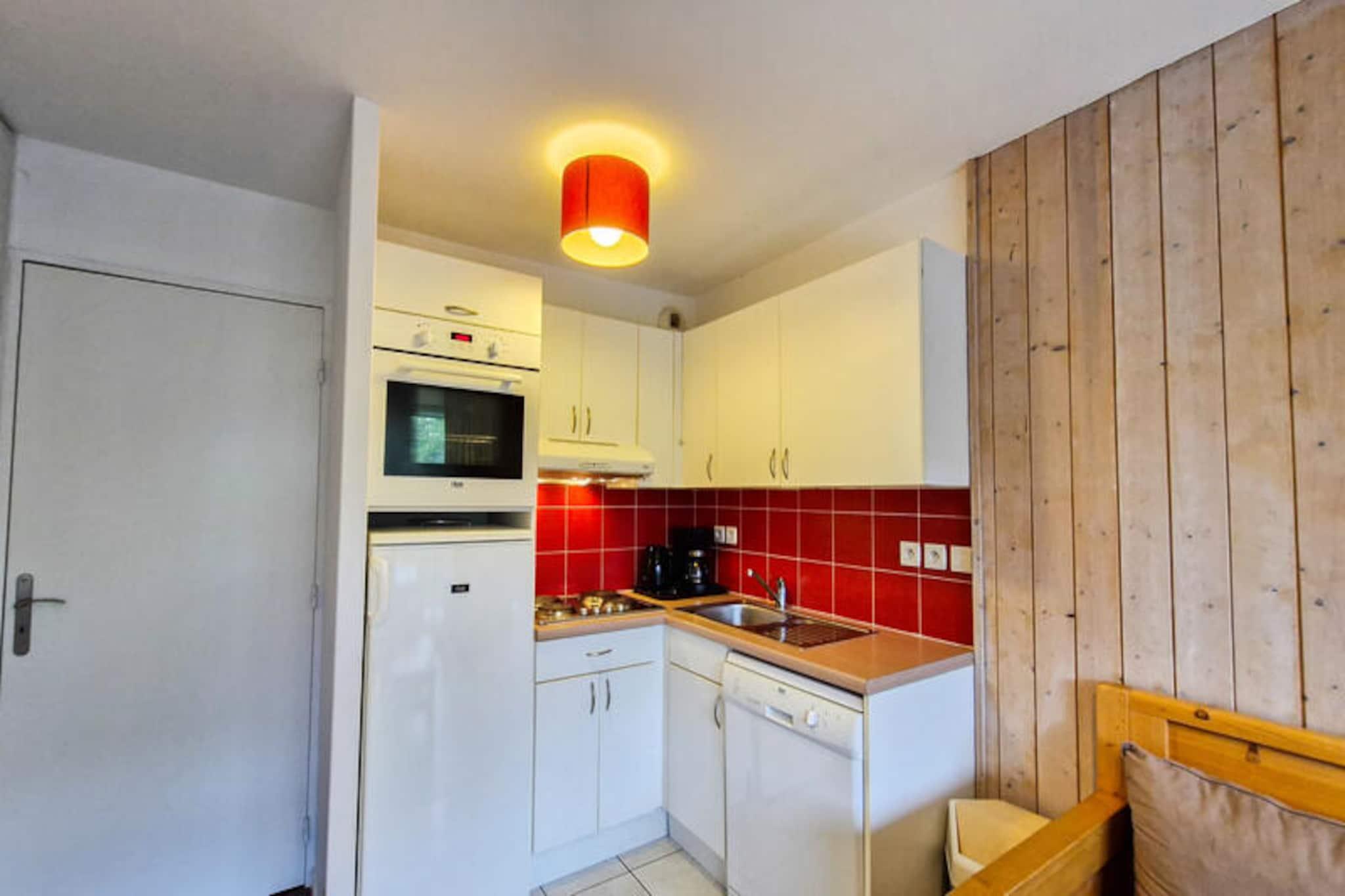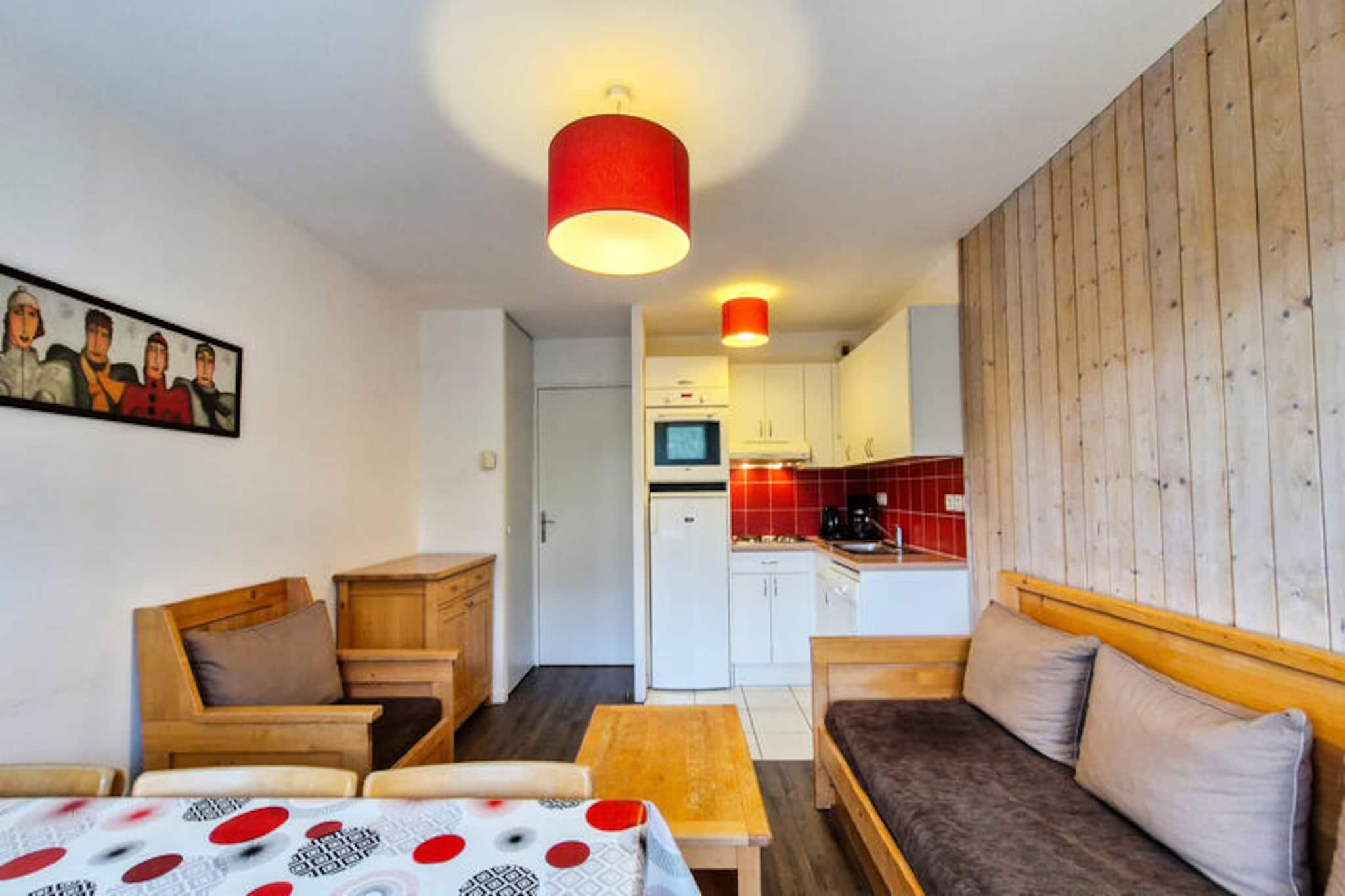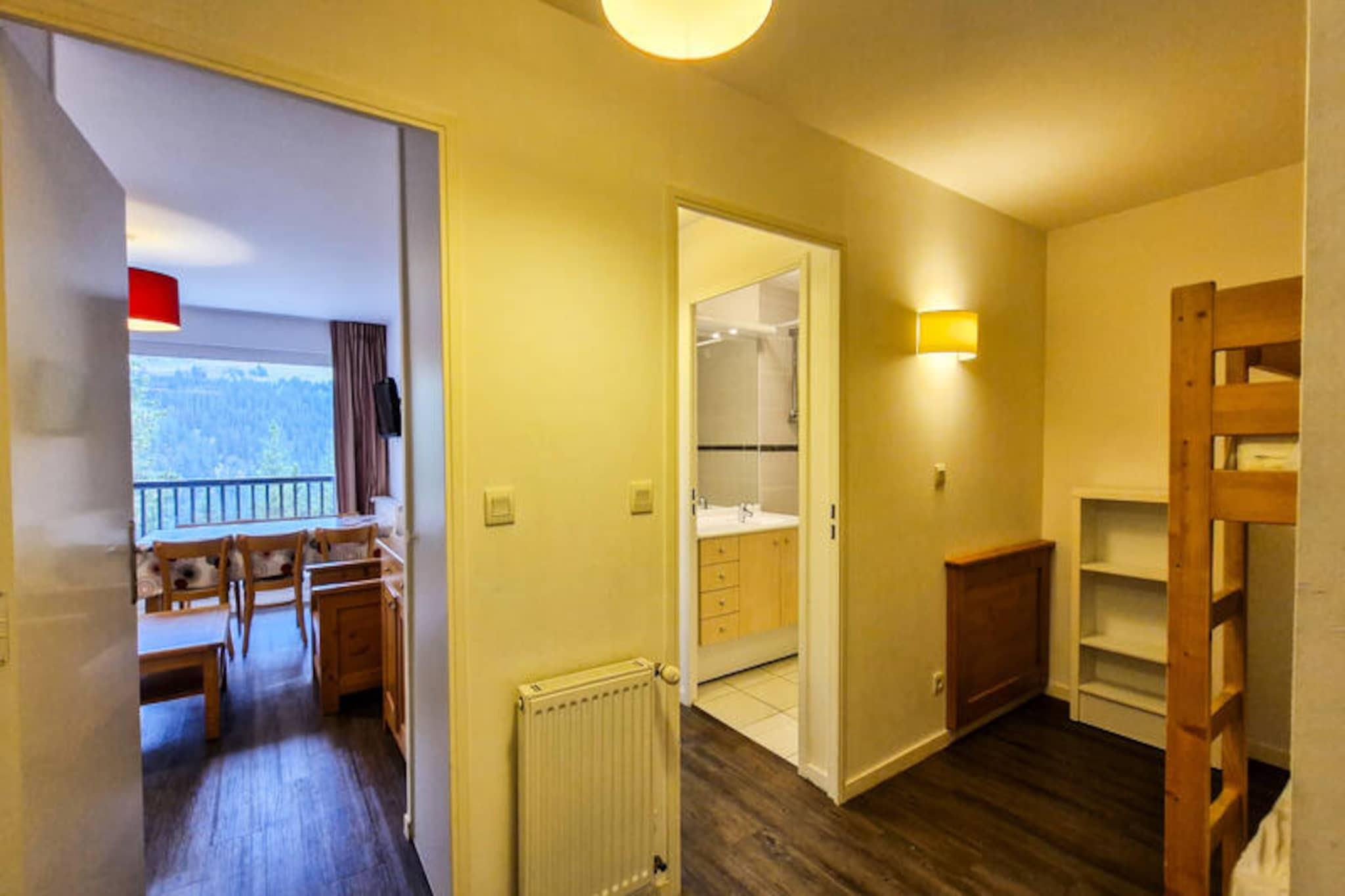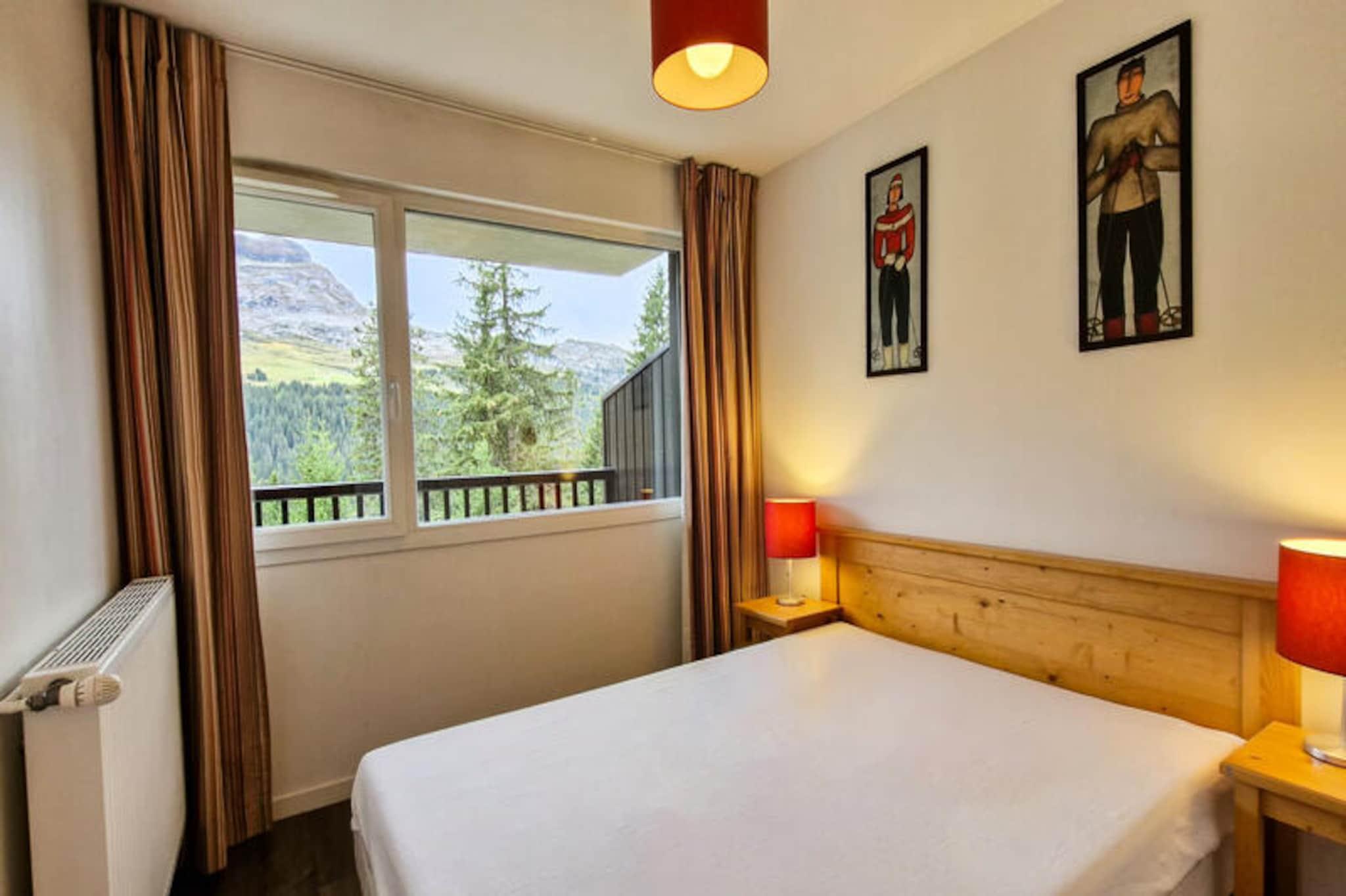 Omgivet af de franske alpers betagende skønhed tilbyder denne charmerende bolig i Flaine Forêt en perfekt blanding af komfort og bekvemmelighed til din bjergferie. Beliggende kun 500 meter fra pisterne og skilifterne og blot 150 meter fra indkøbscentret, giver den nem adgang til alt, hvad du behøver for en uforglemmelig ferie. Med en gratis skibus, der stopper lige udenfor, begynder dine alpine eventyr i det øjeblik, du træder ud af døren. Den sydvendte balkon inviterer dig til at nyde solskinnet og beundre den fredfyldte udsigt over bjergene, hvilket får hver morgen til at føles som en frisk start i paradis. \n\nIndenfor har den gennemtænkte 2-værelses lejlighed med en sovealkove komfortabel plads til op til seks gæster. Stuen har en enkelt sovesofa med en udtræksseng, mens soveværelset har en hyggelig dobbeltseng. Soealkoven har køjesenge, ideel til ældre børn eller voksne. Moderne faciliteter såsom et fladskærms-tv med kabelkanaler, et fuldt udstyret åbent køkken med keramisk kogeplade, køleskab, multifunktionsovn og opvaskemaskine sikrer et problemfrit ophold. Lejligheden har også et badeværelse med badekar, et separat brusebad og et separat toilet for ekstra bekvemmelighed. Parketgulv og flisebelagt køkken og badeværelsesrum forbedrer den varme og indbydende atmosfære.\n\nResidensen kan prale af praktiske faciliteter som skibokse, vaskeri og valgfri overdækket parkeringsplads. Om sommeren kan gæster, der bor seks nætter eller mere, benytte Flaine Summer Pass, der giver adgang til en række aktiviteter, der fremviser regionens naturlige skønhed. Uanset om du står på ski ned ad uberørte pister om vinteren eller udforsker naturskønne stier om sommeren, tilbyder Flaine Forêt den ideelle base for dine alpine eventyr. Med sin indbydende atmosfære, kæledyrsvenlige politik og gennemtænkte faciliteter lover denne bolig et mindeværdigt ophold i hjertet af bjergene.