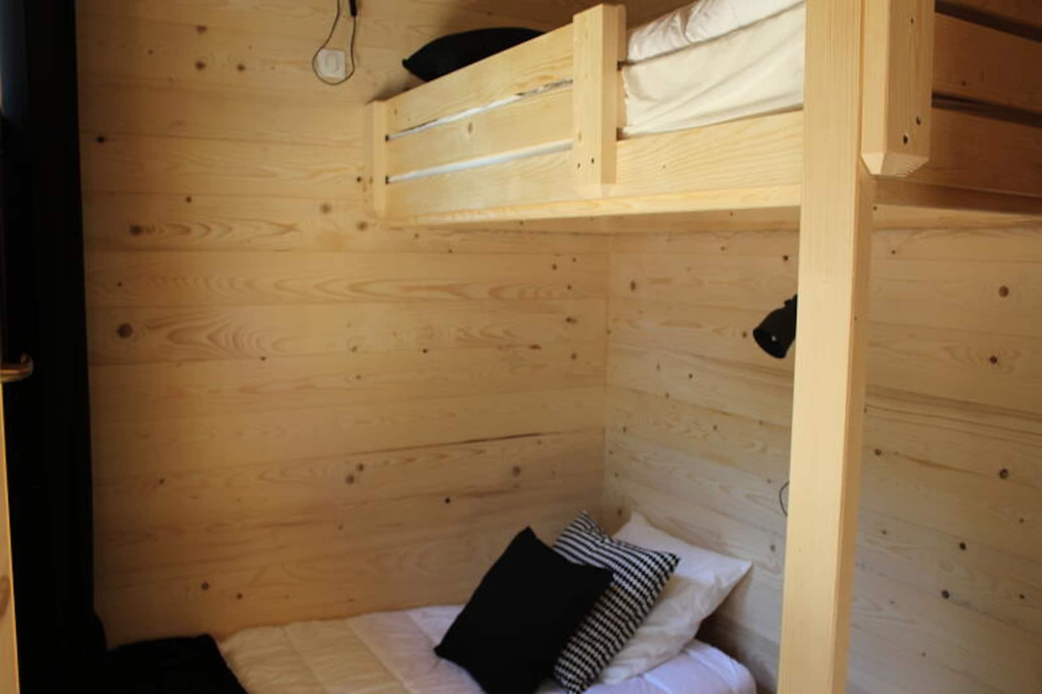 Parc de la Belle ligger i en 12 hektar stor have og samler usædvanlig indkvartering for at genoplade batterierne i Vienne. Med familie, venner eller en romantisk ferie er Parc de la Belle det ideelle sted at koble af og tage en pause omgivet af natur. På stedet glæder minigården med geder og får børn og er en af ??de sjove aktiviteter, som Parken tilbyder. Hvis du foretrækker eventyr, vil du kunne lide puslespillet, som tager dig på en mystisk søgen gennem flere universer. Børn kan også bruge tid på legepladsen: rutsjebaner, akrobatiske kurser osv. Uanset om du vælger at sove i træerne eller i en komfortabel lodge, vil dit ophold på Parc de la Belle give dig en oplevelse af ro i hjertet af naturen! Bemærk venligst: hytterne har fælles badeværelser. De har hverken vand eller el. Administrationsgebyr på 25 EURO betales på stedet. Komfortabel Elegance Lodge 4/6 personer: Stue med sovesofa Tekøkken Soveværelse med 1 dobbeltseng Soveværelse med 2 enkeltsenge Brusebad, toilet Terrasse Babykit - seng + høj stol: kan lånes ved reservation Sengetøj - inkluderet Slutrengøring - ekstra - se pris på stedet Morgenmad - bestilles inden dit ophold: 11,90 EURO/voksen og 7,90 EURO/barn Turistskat (ekstra gebyr) - betales på stedet i henhold til gældende takst