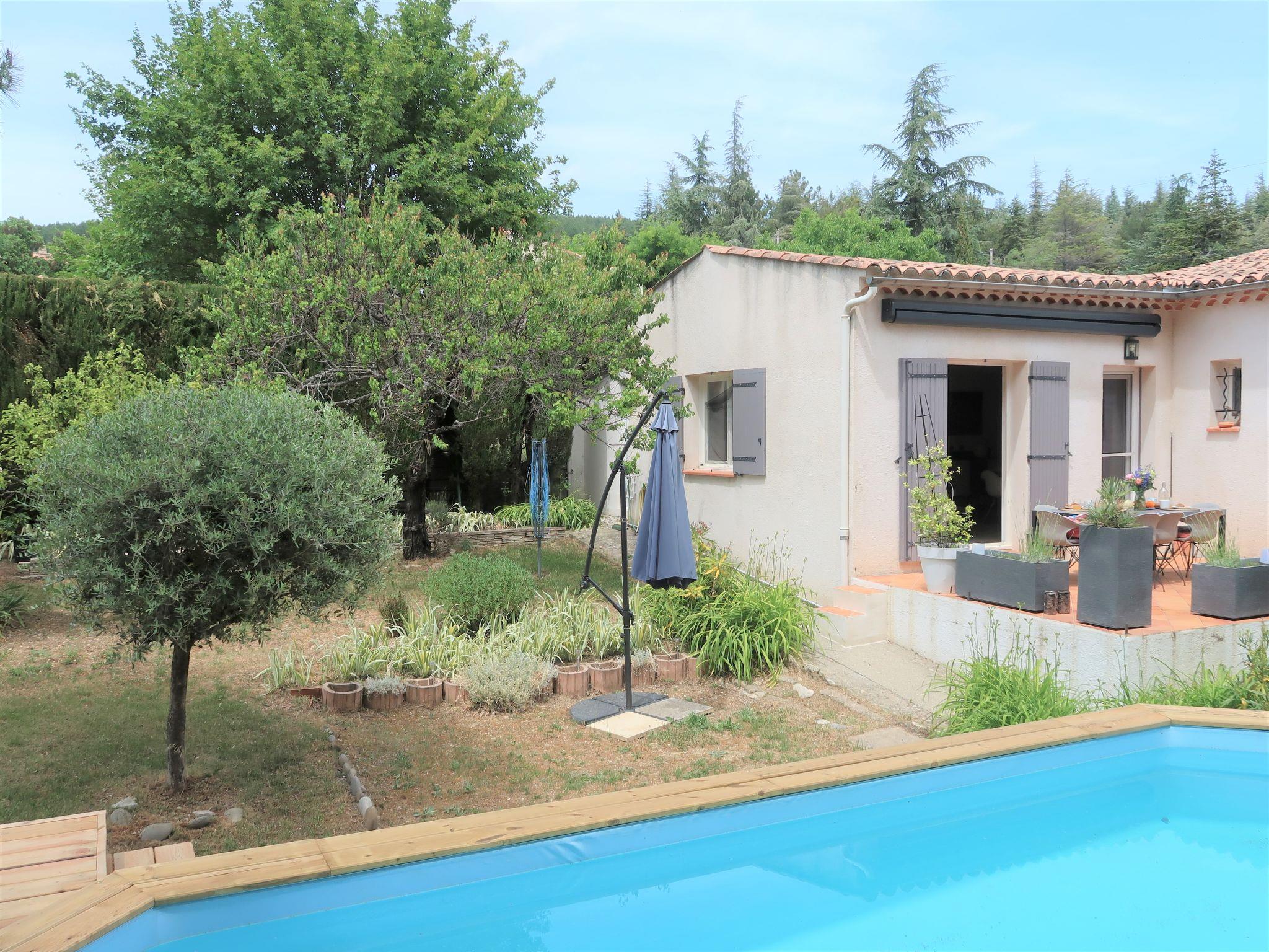 Single-family house "Le Jade". Private: well-kept garden 600 m2 (fenced), swimming pool (above ground) (7 x 4 m, depth 130 cm, seasonal availability: 01.May. and 30.Sep.). Pool maintenance by the owner/gardener. Parking space n 2 at the house, in winter 10 m. Grocery 200 m, supermarket 16 km, restaurant, bus stop 200 m. Nearby attractions: Gréoux les Bains 58 km, Forcalquier 22 km, Aix en Provence 97 km, Banon 24 km. Well-known lakes can easily be reached: Sainte Croix 86 km. Hiking paths: Luberon 60 km. Please note: car recommended. The owner does not accept any groups.