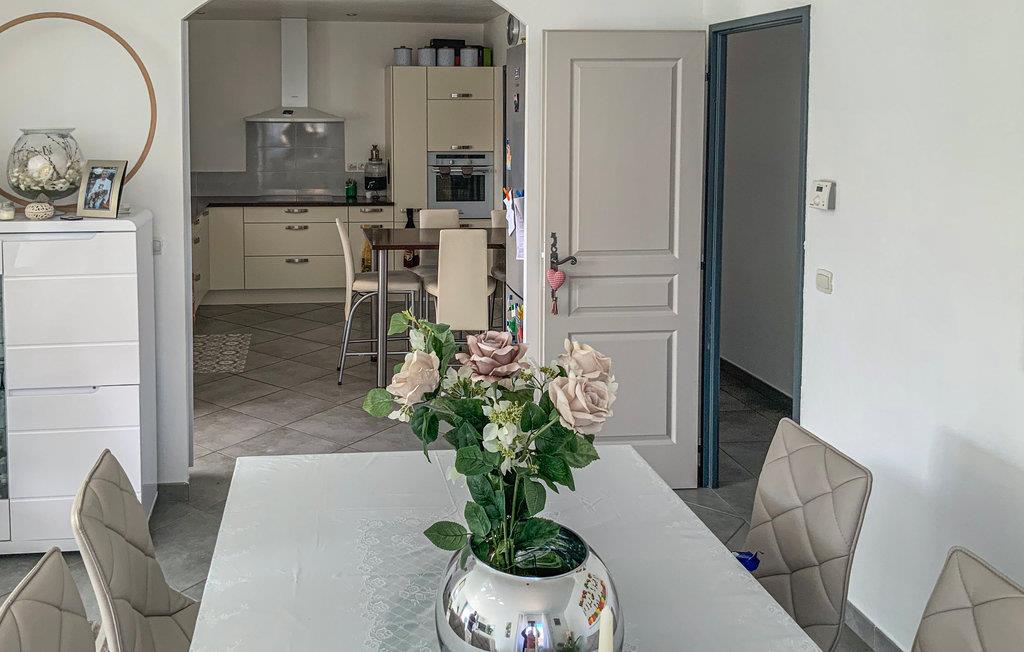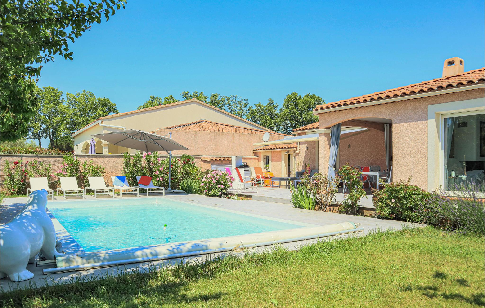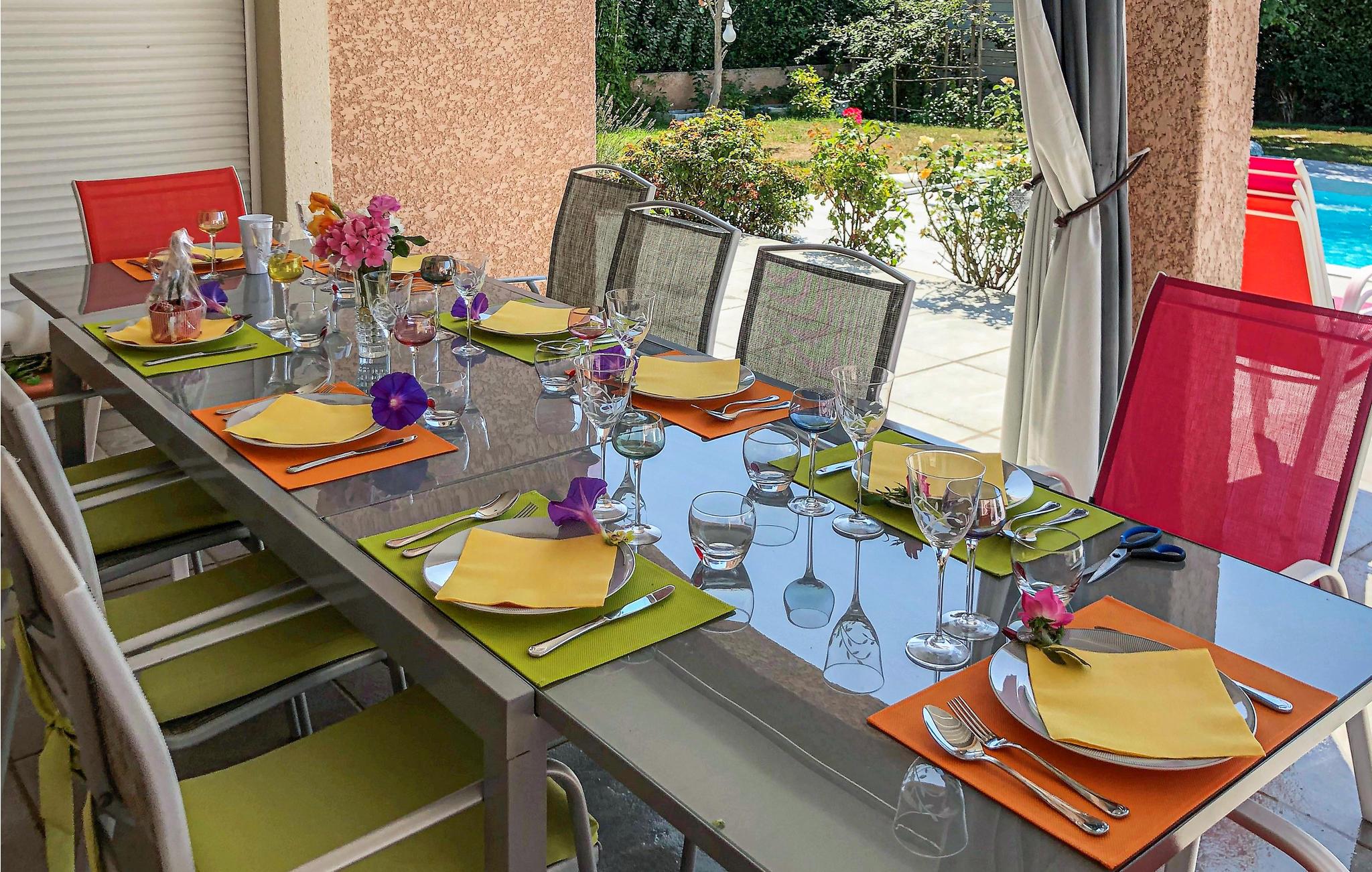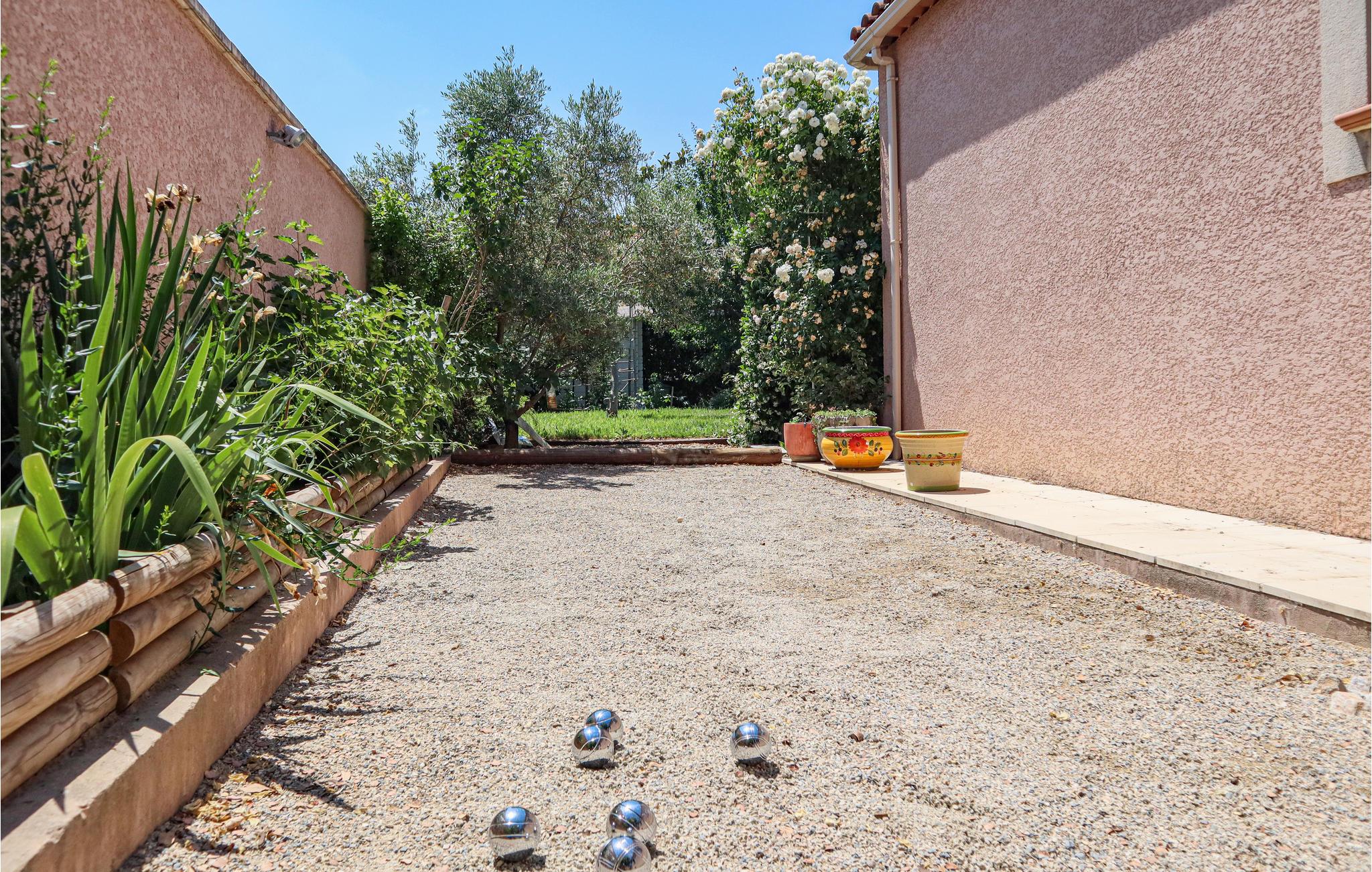 Dette komfortable feriehus med pool ligger i udkanten af ??landsbyen Mallemort i et boligområde. Huset er dekoreret i lyse farver og med smukke møbler og tilbyder plads i 3 soveværelser, 1 badeværelse, køkken-spisestue og en stue. Der er også et separat toilet. Husets hjerte er den hyggelige stue med et stort tv, hvor I kan tilbringe hyggelige aftener sammen. Der er gulvvarme i hele huset for ekstra komfort.