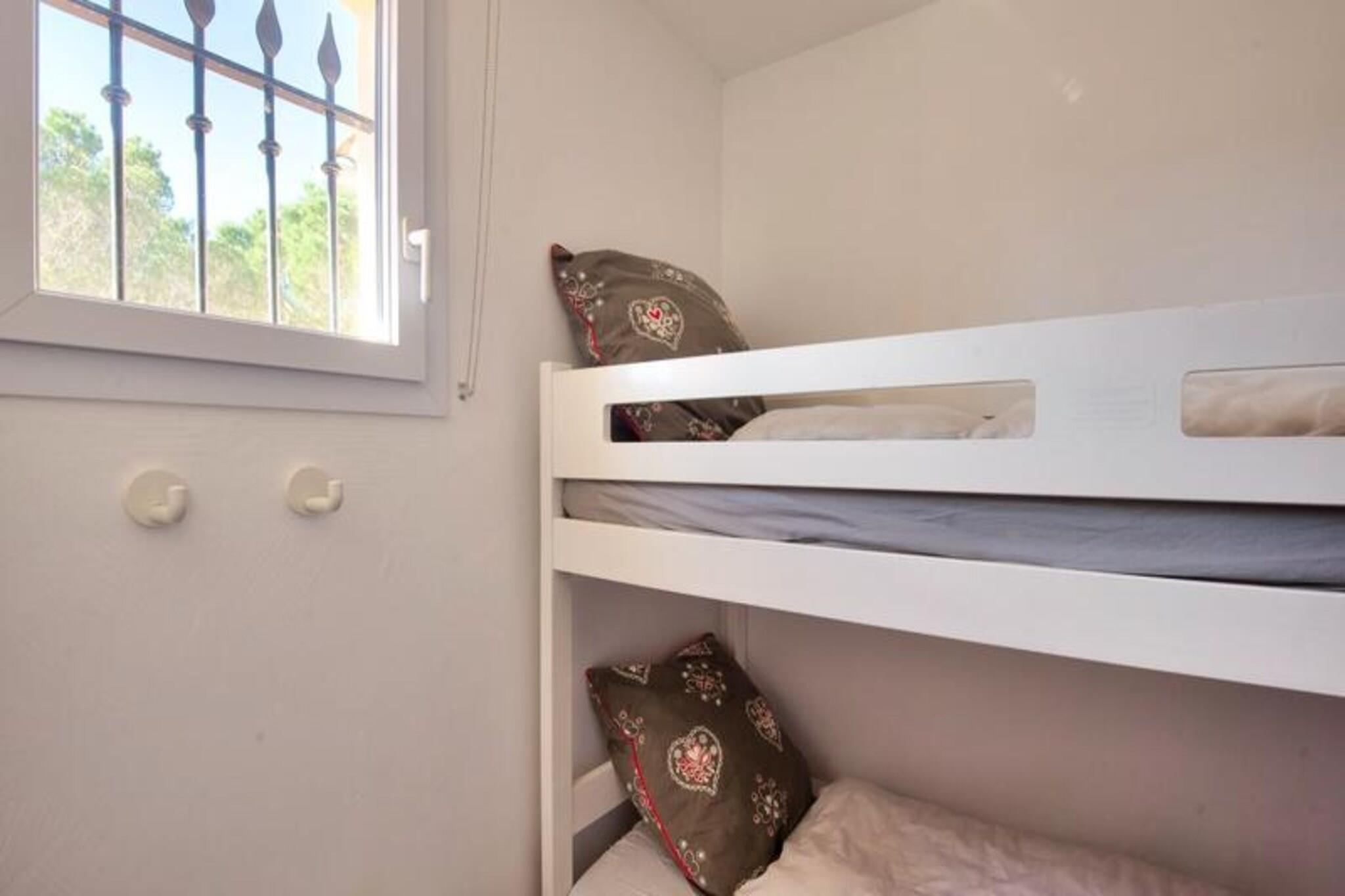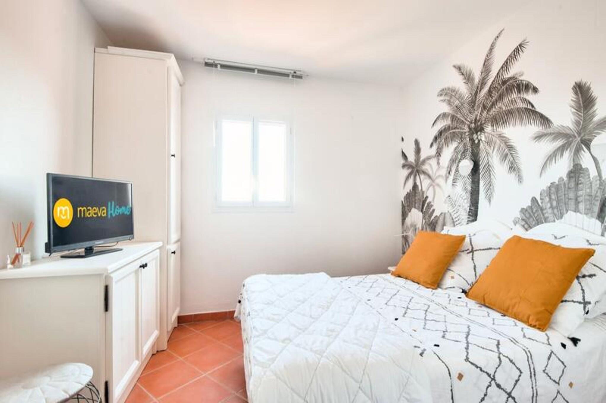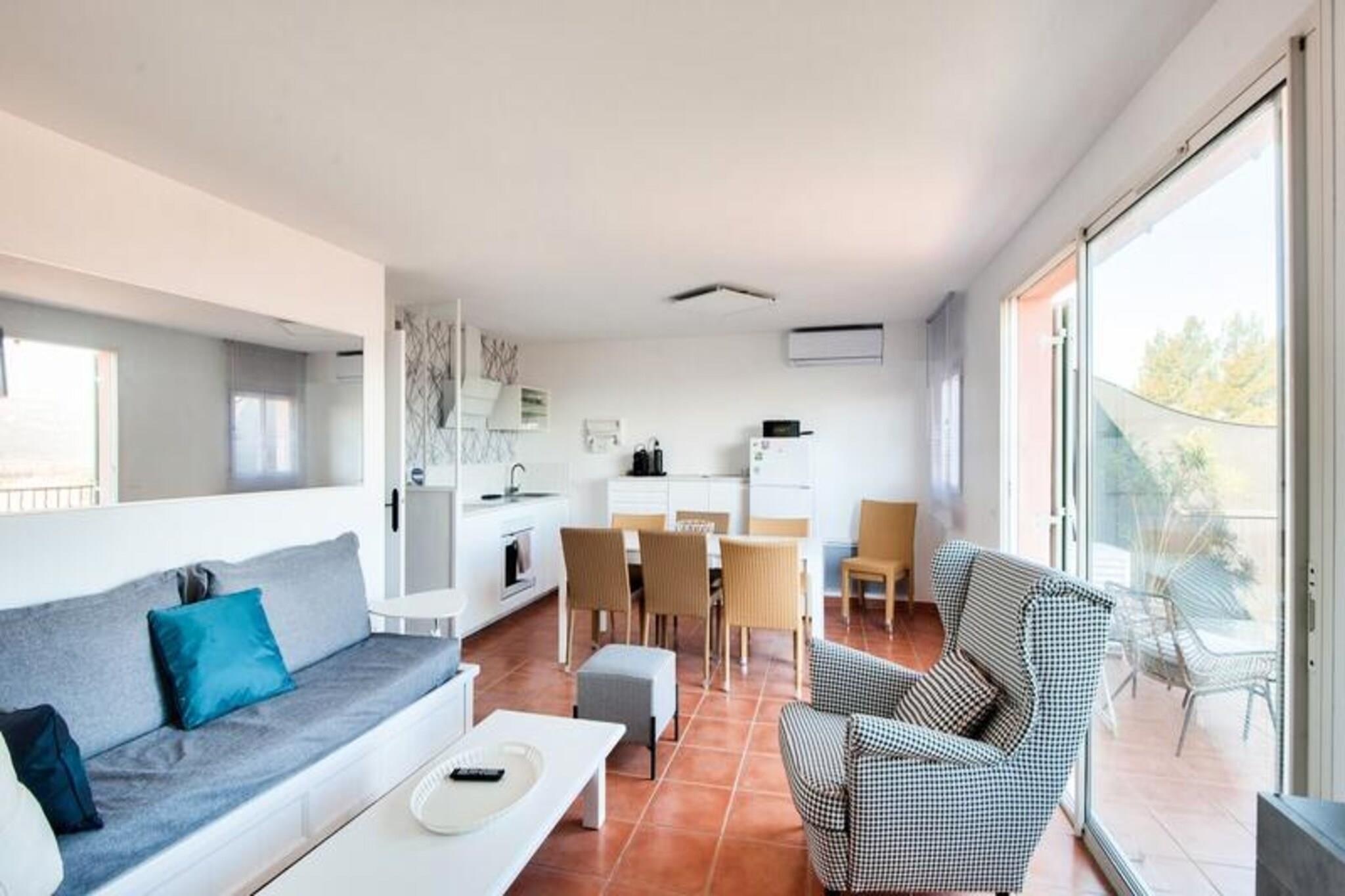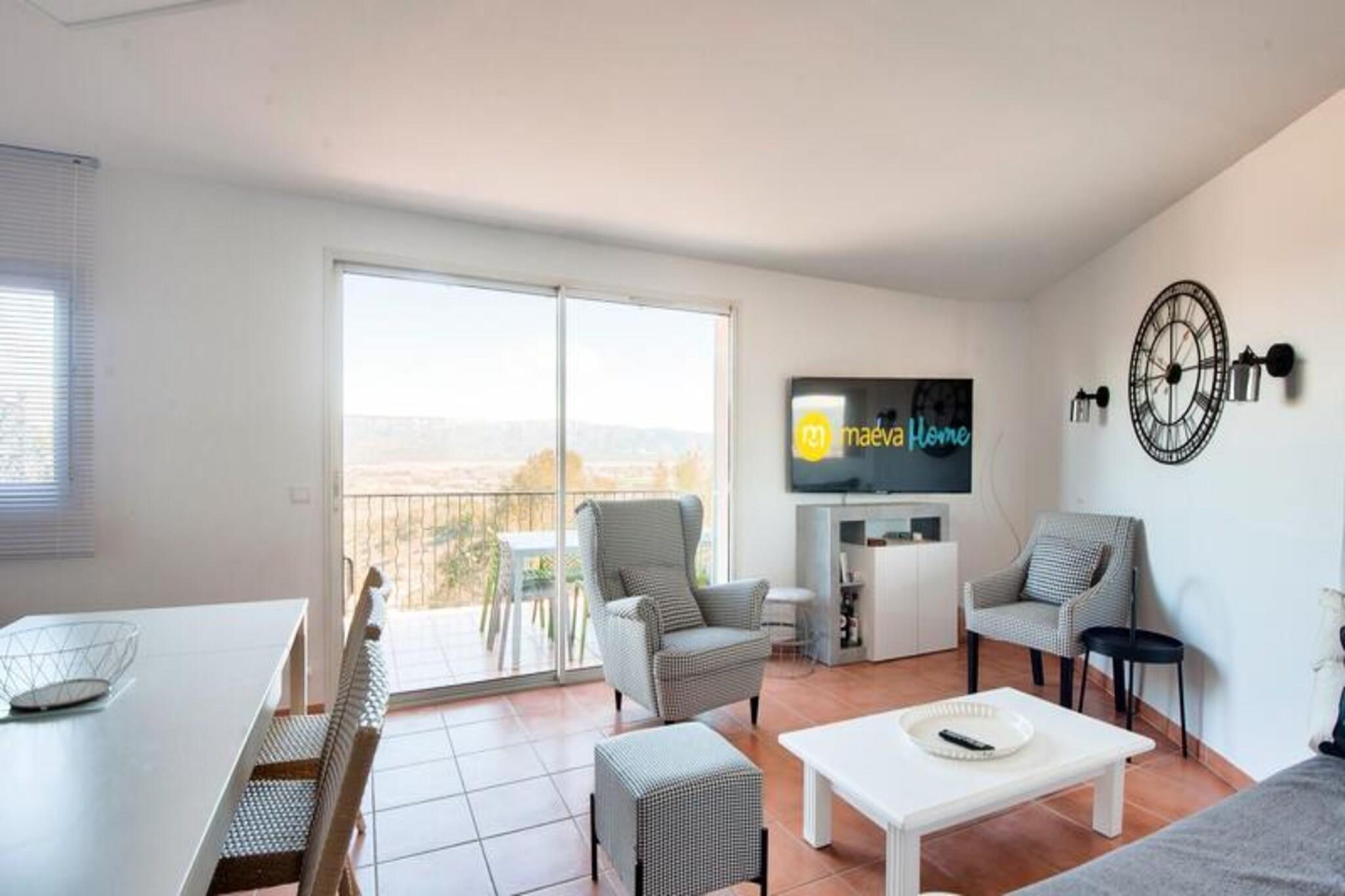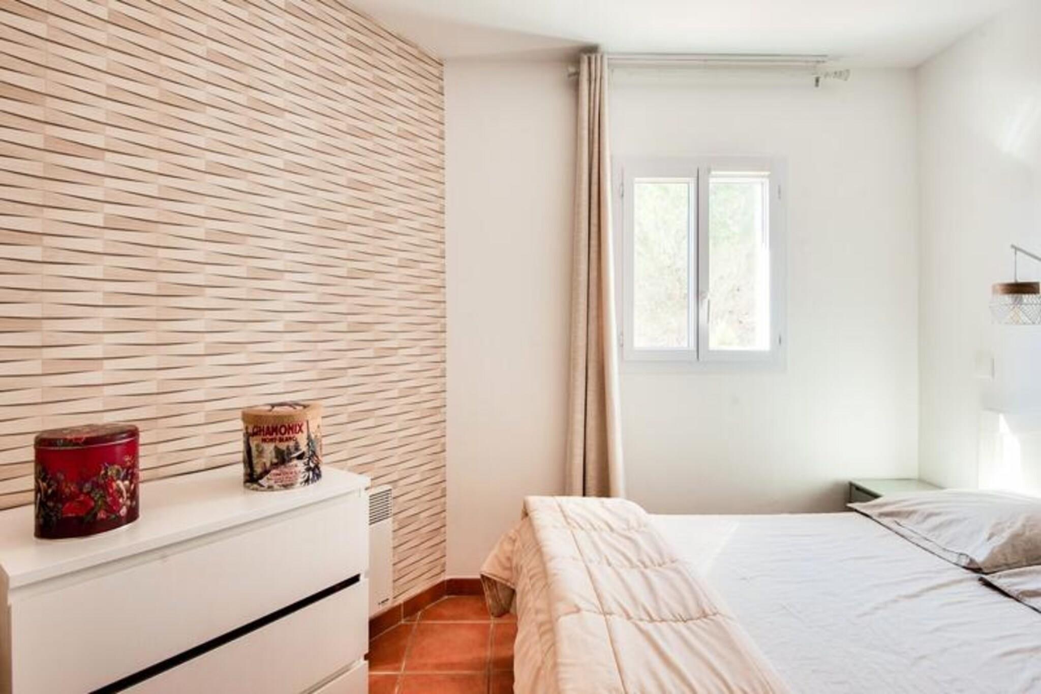 Denne rummelige ferielejlighed tilbyder 61 m² komfort, perfekt til familier eller grupper på op til 8 gæster. Ejendommen har tre soveværelser: to med dobbeltsenge og et mindre værelse med køjesenge. Opholdsstuen indeholder to sovesofaer, den ene med en trilleseng, der er egnet til et barn. Med to badeværelser - det ene med bruser og toilet og det andet med badekar - plus et separat toilet, sikrer boligen bekvemmelighed for større grupper. Kæledyr er velkomne efter forudgående aftale, og væsentlige tjenester såsom sengelinned og slutrengøring er inkluderet. Beliggende mellem Aix-en-Provence og Avignon, ligger denne lejlighed i en livlig fodgængerlandsby omgivet af butikker, restauranter og rekreative faciliteter. Gæsterne kan nyde det nærliggende vandområde Vallée des Loisirs, der byder på rutsjebaner, rafting og en opvarmet bølgebassin. Sportsentusiaster kan drage fordel af basketballbaner, beachvolley og en 18-hullers golfbane. Landsbyen er en ideel base for at udforske Provence-regionens charmerende byer, markeder og naturskønne landskaber. Lejligheden har et fuldt udstyret køkken med åbent design, perfekt til at tilberede måltider og dele tid med sine kære. Yderligere funktioner omfatter en terrasse, spisebord med plads til otte og gratis parkering. For ekstra komfort er valgfri daglig rengøring og håndklædeservice tilgængelige. Uanset om du slapper af indendørs eller udforsker de maleriske omgivelser, giver denne ejendom de perfekte rammer for en mindeværdig ferie.