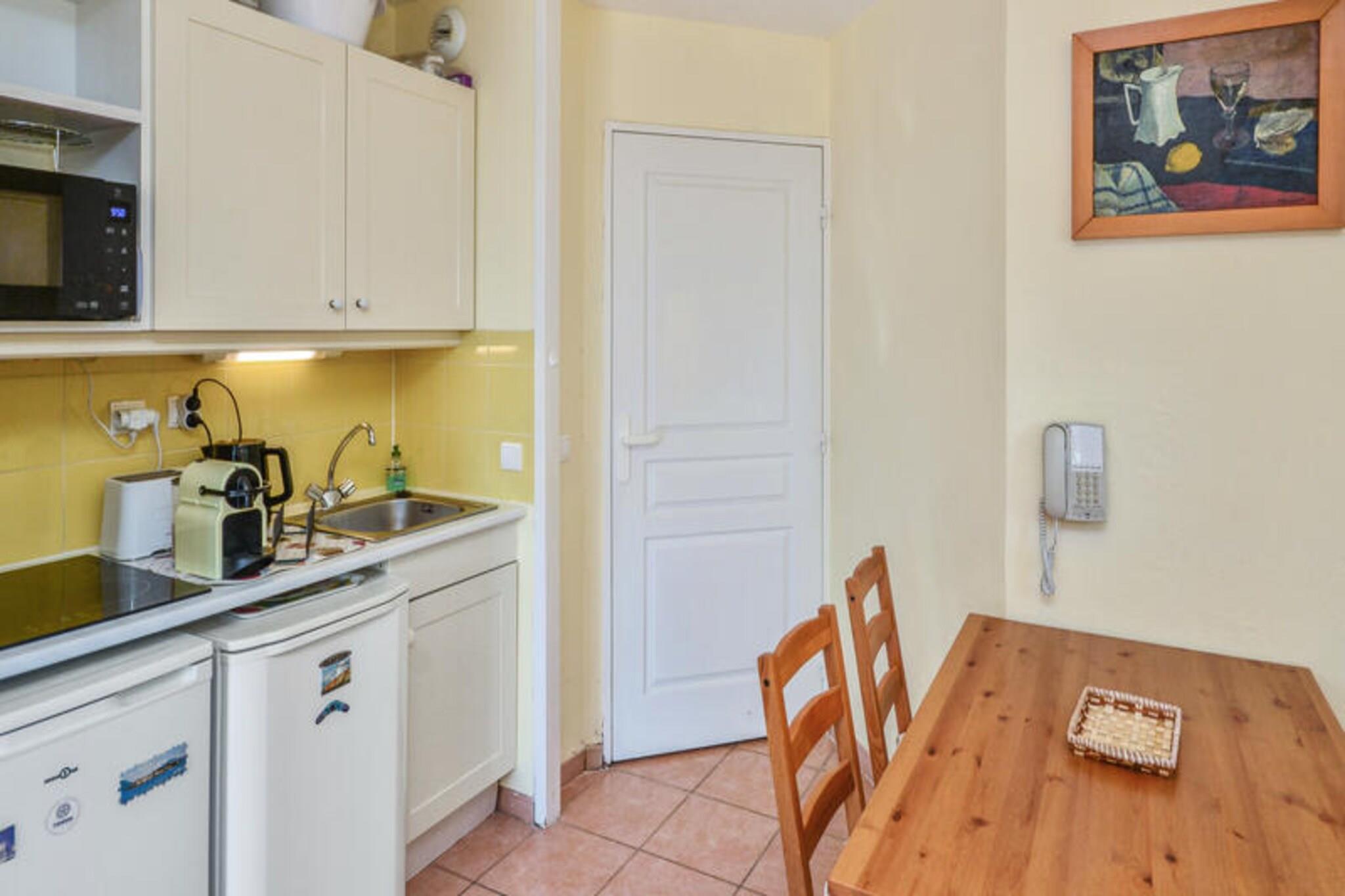 Dette kæledyrsvenlige lejlighedskompleks tilbyder et perfekt tilflugtssted i Bouches-du-Rhône, Provence. Ejendommen ligger i en fodgængerlandsby med butikker og restauranter og kan prale af et 180 hektar stort område med spændende aktiviteter som basketball, beachvolley, ridning og et vandområde. Lejlighederne leveres med væsentlige tjenester inkluderet: sengetøj, et vedligeholdelsessæt, velkomstprodukter og adgang til landsbyens vandland med rutsjebaner, en lazy river og et bølgebassin. Villaer tilbyder yderligere frynsegoder såsom en privat pool, terrassemøbler og en garage. Mens stedets underholdning omfatter klubber for børn (i alderen 3 måneder til 17 år, i åbningssæsonen) og en 18-hullers golfbane (ekstra gebyr), er der masser at udforske i nærheden. Gå en tur gennem den charmerende fodgængerlandsby eller oplev det omkringliggende område. Denne særlige lejlighed på 31,5 m2 i stueetagen har en stue med en sovesofa (sover 2) og et kabineområde med en dobbeltseng. Køkkenet er åbent til stuen, og badeværelset indeholder badekar og toilet. Håndklæder, daglig rengøring og slutrengøring er alle tilgængelige mod et ekstra gebyr. Bemærk, at der kræves et depositum på EURO400.