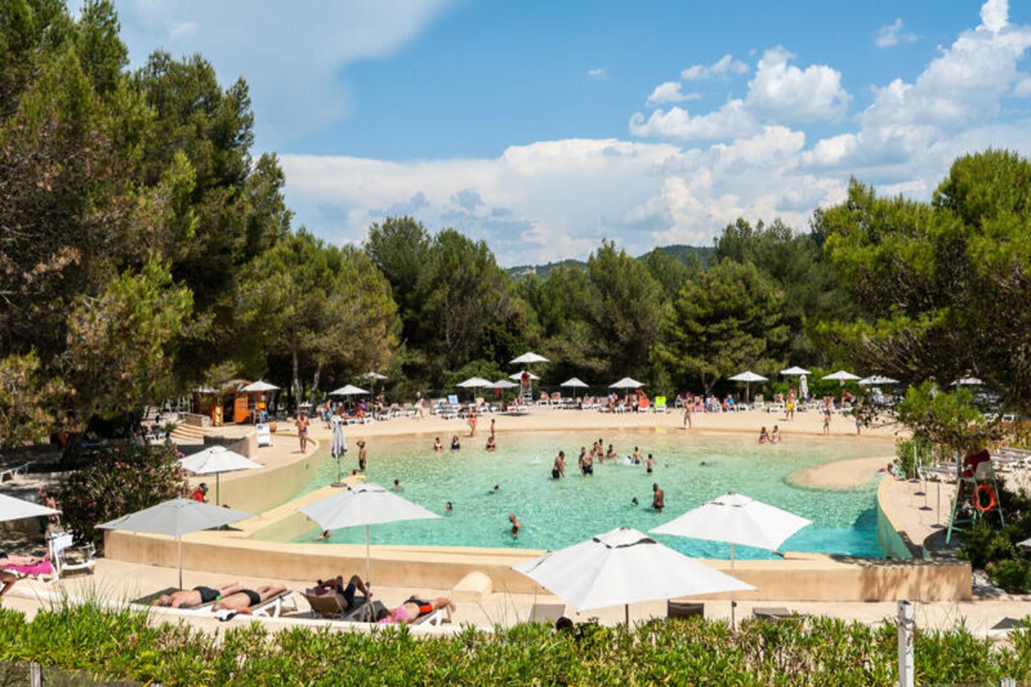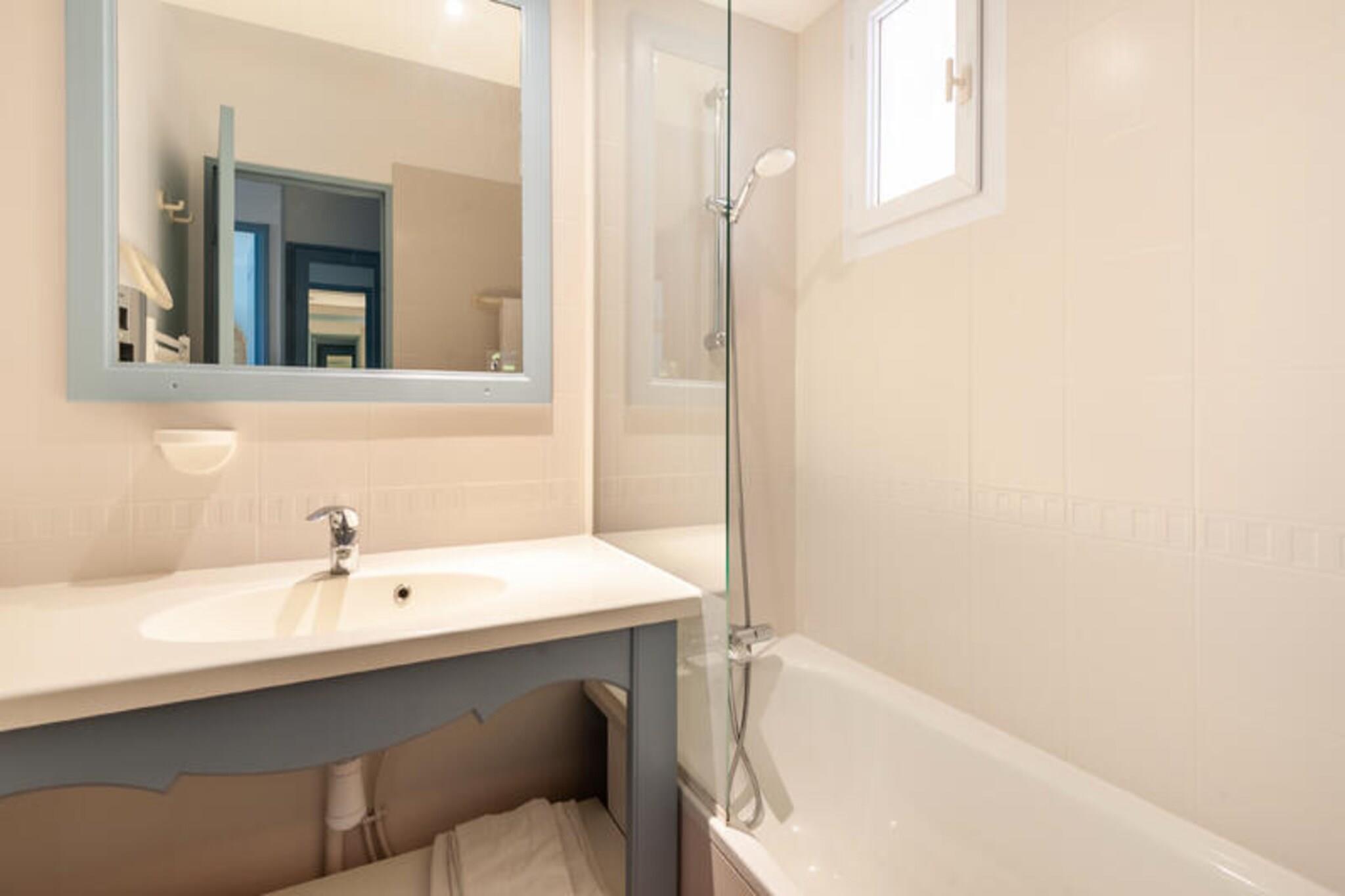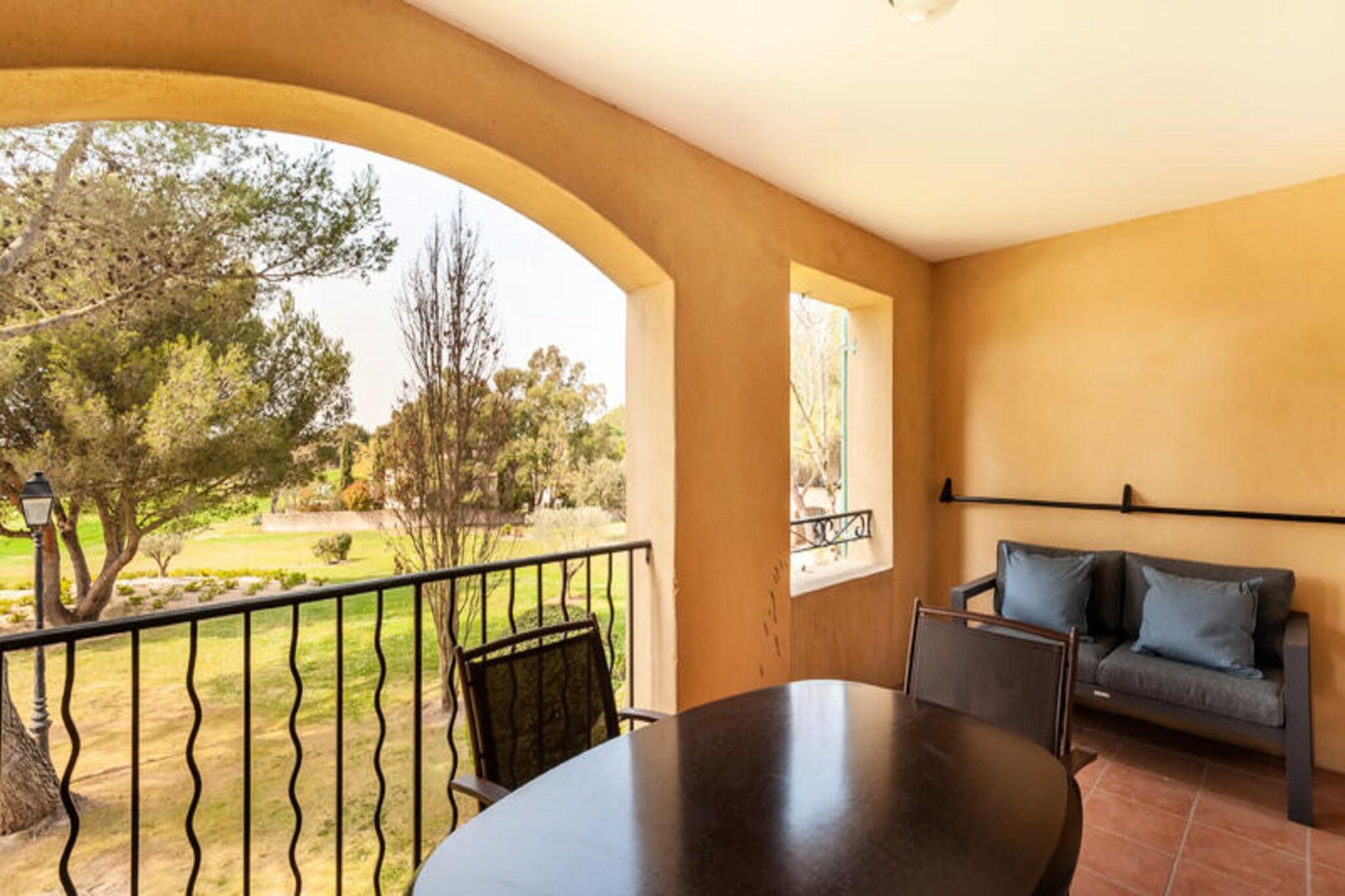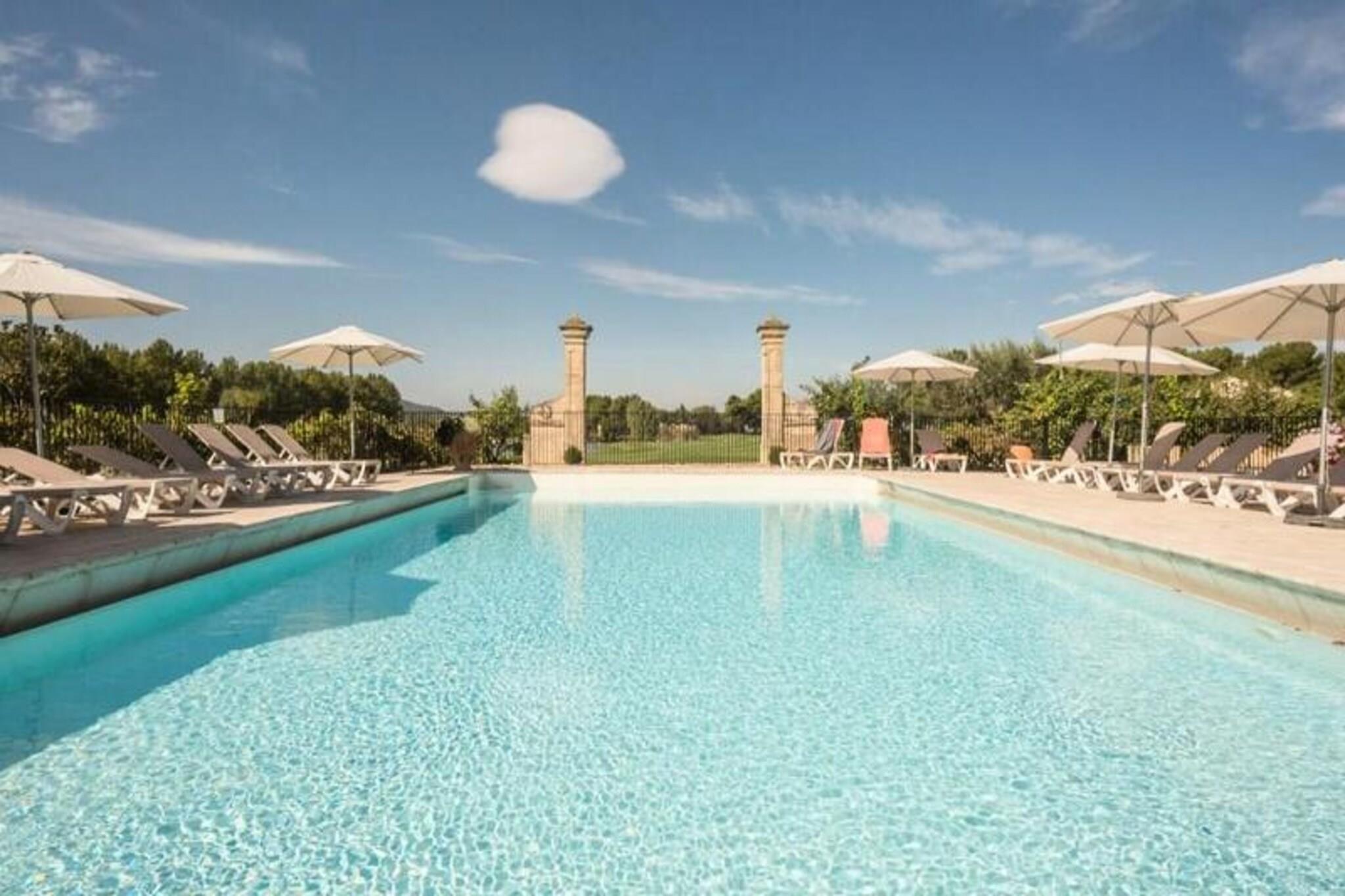 Denne charmerende lejlighed tilbyder et behageligt ophold for op til 4 personer, med et rummeligt soveværelse med en dobbeltseng og et opholdsområde med en sovesofa. Kæledyr er tilladt mod et ekstra gebyr, og sengetøj er inkluderet, med mulighed for daglige skift mod et ekstra gebyr. Håndklæder er tilgængelige mod et gebyr, og en barneseng kan anmodes om, afhængigt af tilgængelighed. Lejligheden inkluderer også overdækket parkering, med 525 ledige pladser (afhængig af tilgængelighed). Beliggende i det maleriske Pont Royal-område mellem Avignon og Aix-en-Provence, er lejligheden tæt på en række attraktioner. Nyd den fantastiske udsigt over golfbanen og de nærliggende swimmingpools, inklusive den opvarmede bølgebassin, klippebassinet og bjergskråningers swimmingpool, som alle er sæsonåbent. Landsbyens centrum ligger kun en kort gåtur væk, og tilbyder butikker, restauranter og rekreative aktiviteter såsom tennis, golf og ridning. Kulturelle steder i det omkringliggende område giver masser af muligheder for udforskning. Indvendigt har lejligheden et fuldt udstyret køkken, ideelt til at tilberede måltider derhjemme, og et moderne badeværelse med badekar og elektrisk håndklædetørrer. Den lyse opholdsstue er perfekt til afslapning, og den private loggia byder på en smuk vestvendt udsigt over golfbanen. Med yderligere tjenester som wifi, sengelinned og slutrengøring inkluderet, sikrer denne lejlighed et bekvemt og afslappende ophold i Provence.