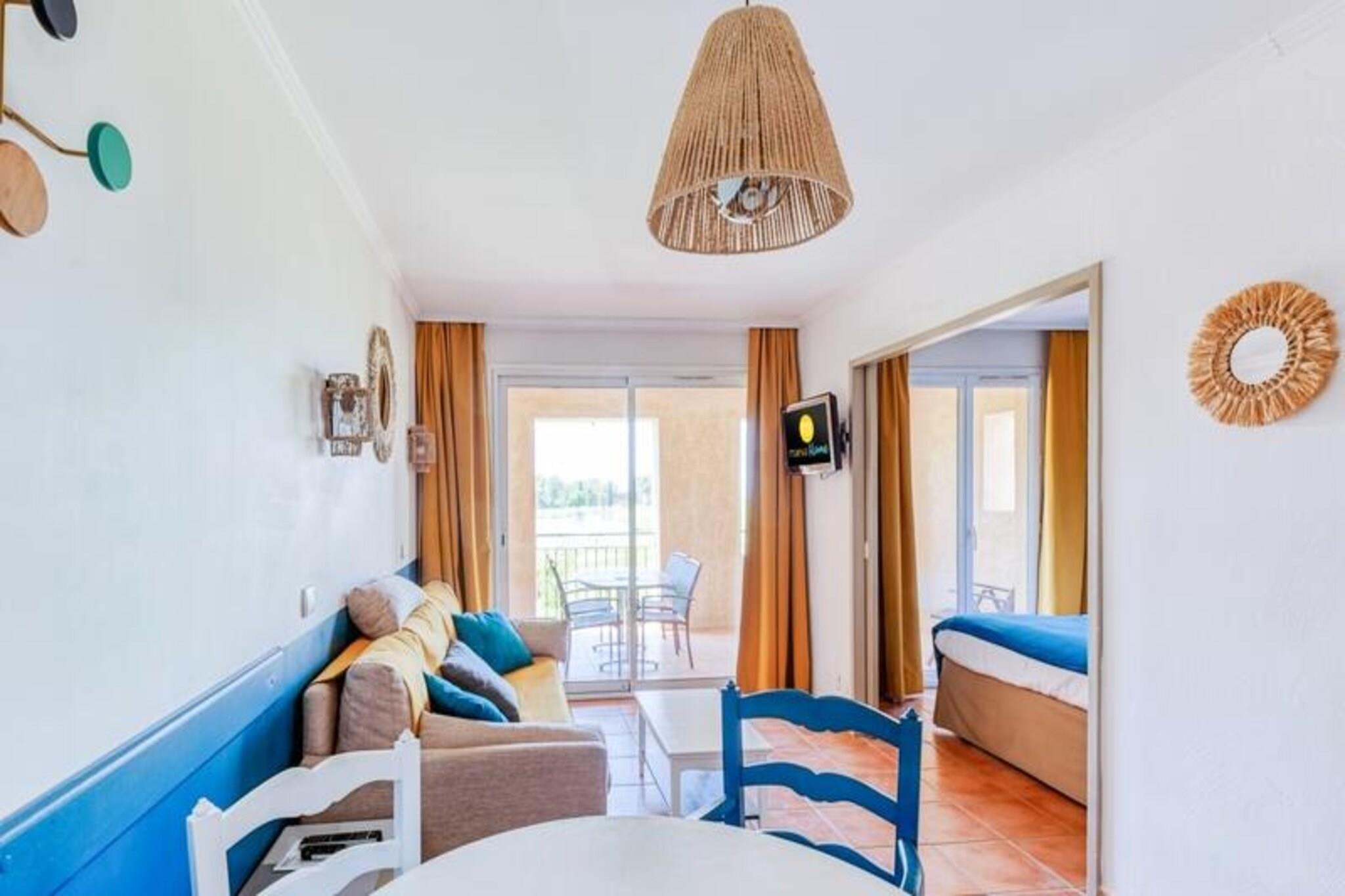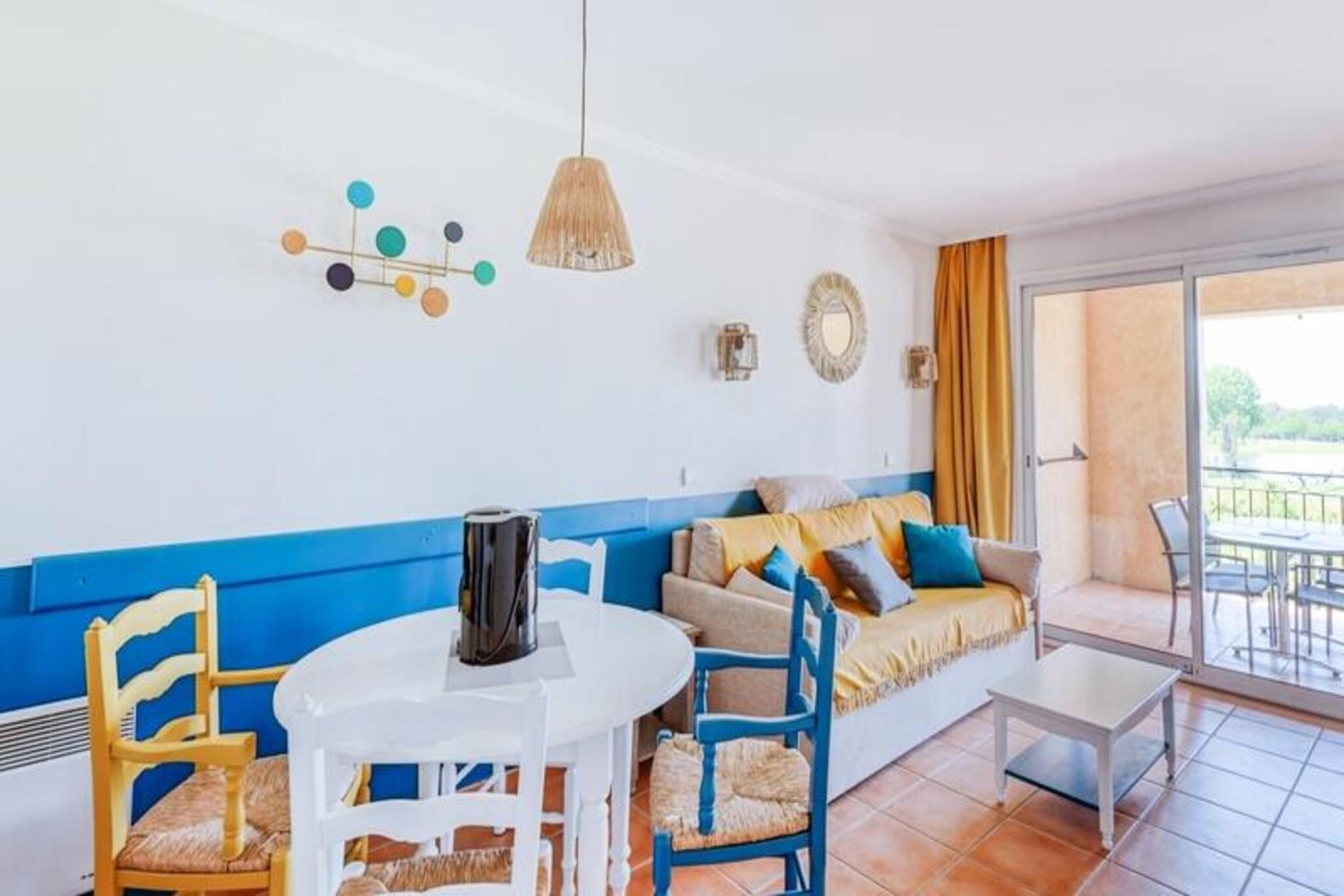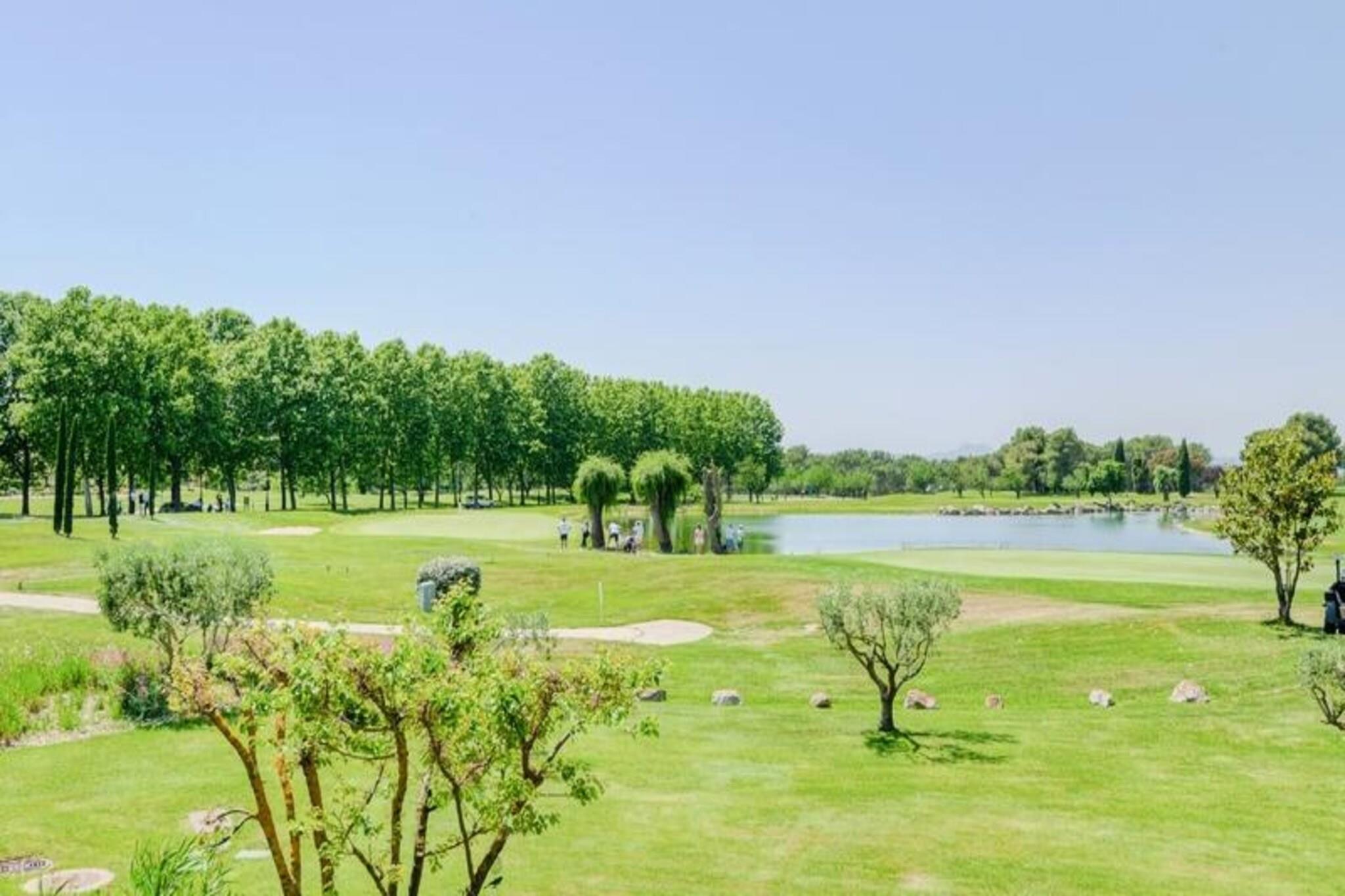 Denne komfortable lejlighed kan rumme op til fire gæster og tilbyder et fredfyldt tilflugtssted med en king-size seng i soveværelset og en sovesofa i stuen. En privat overdækket terrasse har en betagende udsigt over golfbanen, mens en dedikeret parkeringsplads sikrer ekstra bekvemmelighed. Kæledyrsvenlige overnatningssteder er tilgængelige mod et ekstra gebyr, hvilket gør det ideelt for dem, der rejser med kæledyr. Ejendommen er beliggende i det maleriske Pont Royal-område, omgivet af attraktioner. Gæsterne kan nyde et vandområde, en minigård og sportsfaciliteter, med nærliggende landsbyer som Mallemort og Pont Royal, der byder på kulturelle steder, markeder og charmerende caféer. Udforsk Provences naturskønne stier, eller fordyb dig i dens rige historie og fantastiske landskaber, perfekt til familie- eller grupperejser. Lejligheden har et veludstyret halvåbent køkken med kombineret ovn og mikroovn, ideelt til at tilberede måltider. Badeværelset har en elektrisk håndklædetørrer og hårtørrer samt et separat toilet for nemheds skyld. Slap af på terrassen, mens du nyder udsigten, eller drag fordel af fælles faciliteter såsom opvarmede pools, rutsjebaner og andre rekreative faciliteter for en velafrundet ferieoplevelse.