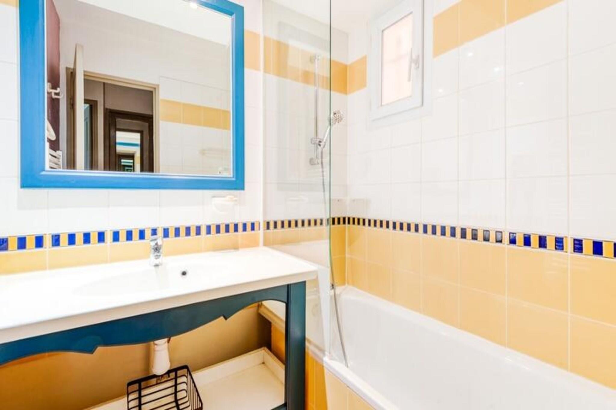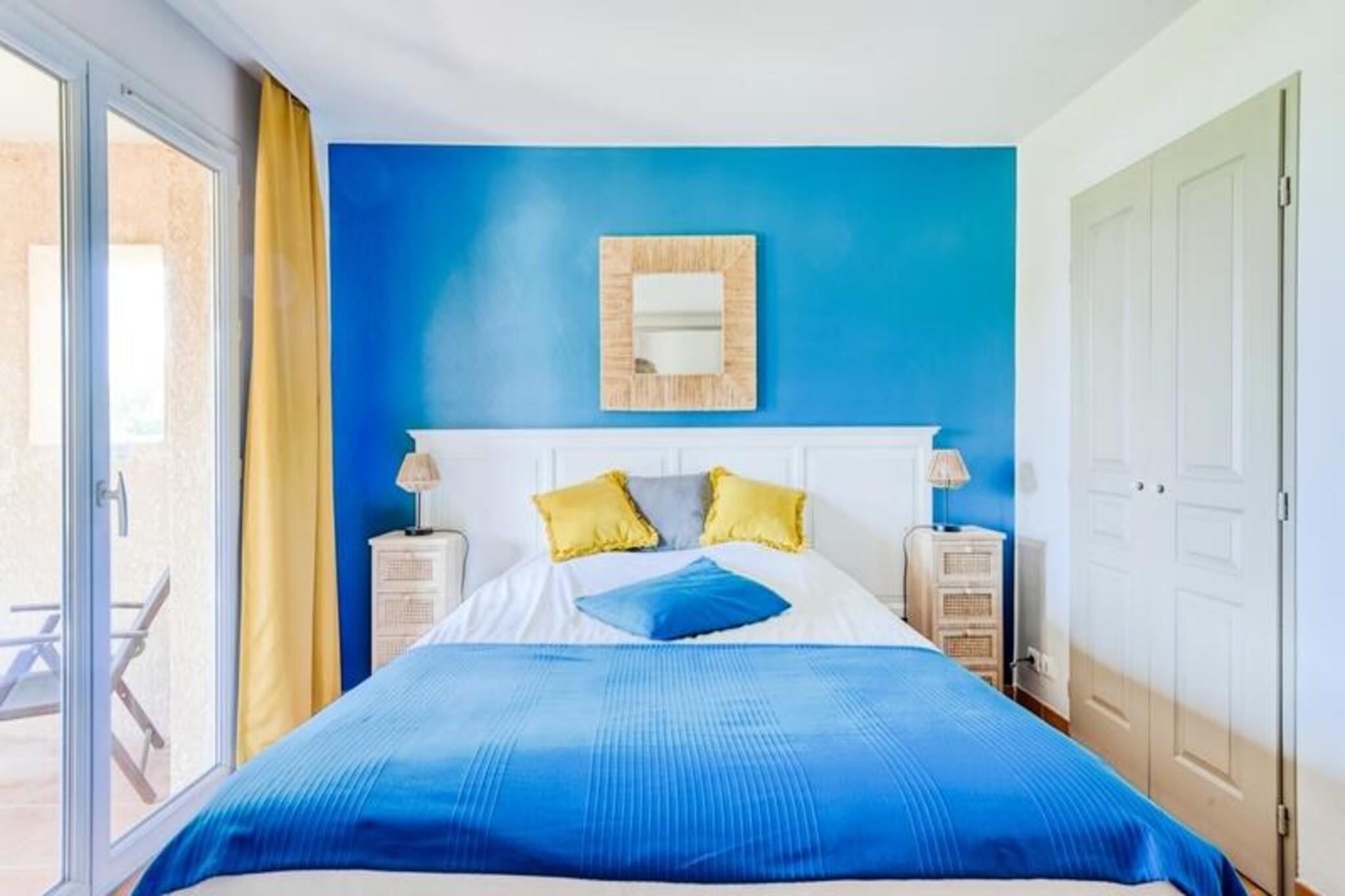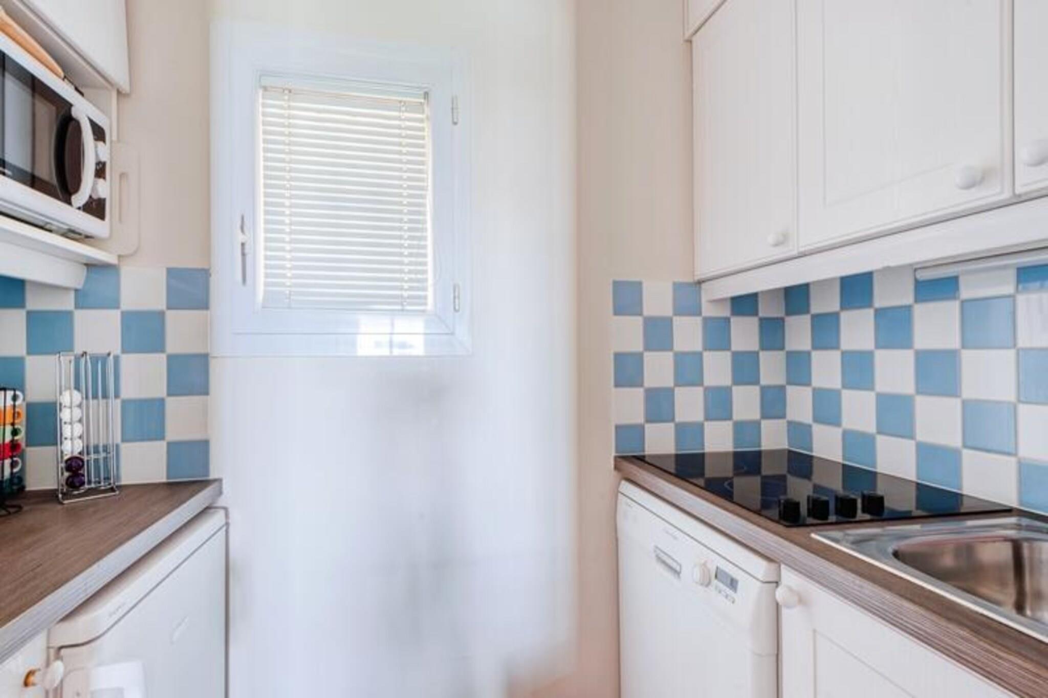 Denne komfortable lejlighed kan rumme op til fire gæster og tilbyder et fredfyldt tilflugtssted med en king-size seng i soveværelset og en sovesofa i stuen. En privat overdækket terrasse har en betagende udsigt over golfbanen, mens en dedikeret parkeringsplads sikrer ekstra bekvemmelighed. Kæledyrsvenlige overnatningssteder er tilgængelige mod et ekstra gebyr, hvilket gør det ideelt for dem, der rejser med kæledyr. Ejendommen er beliggende i det maleriske Pont Royal-område, omgivet af attraktioner. Gæsterne kan nyde et vandområde, en minigård og sportsfaciliteter, med nærliggende landsbyer som Mallemort og Pont Royal, der byder på kulturelle steder, markeder og charmerende caféer. Udforsk Provences naturskønne stier, eller fordyb dig i dens rige historie og fantastiske landskaber, perfekt til familie- eller grupperejser. Lejligheden har et veludstyret halvåbent køkken med kombineret ovn og mikroovn, ideelt til at tilberede måltider. Badeværelset har en elektrisk håndklædetørrer og hårtørrer samt et separat toilet for nemheds skyld. Slap af på terrassen, mens du nyder udsigten, eller drag fordel af fælles faciliteter såsom opvarmede pools, rutsjebaner og andre rekreative faciliteter for en velafrundet ferieoplevelse.