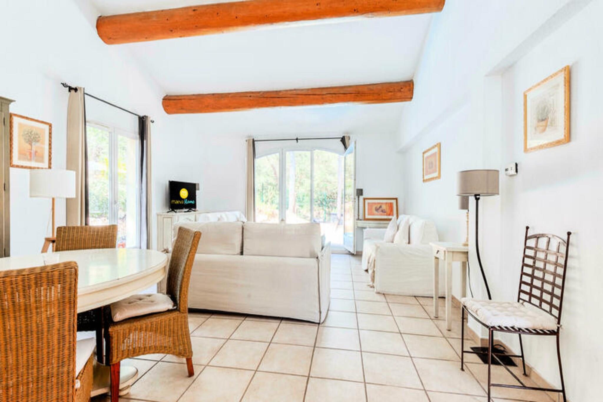 Denne rummelige villa med fire soveværelser (120m²) er en del af et ferieudlejningskompleks på Pont-Royal ejendom og golfbane i Provence. Ejendommen er ideel for familier eller grupper på op til 8 personer og kan prale af en privat opvarmet swimmingpool med svømmestrøm, jacuzzi og hammam. Kæledyr er tilladt (ekstra gebyrer kan forekomme). Beliggende i hjertet af Provence tilbyder Pont-Royal ejendom et roligt og behageligt miljø. Selve den charmerende landsby Pont-Royal ligger mellem Aix-en-Provence (30 km) og Avignon (45 km), hvilket gør den til en god base for at udforske regionen. Nærliggende attraktioner omfatter den gamle provencalske by Mallemort, Château de Lourmarin og Silvacane Abbey. Gæsterne har også adgang til vandområderne i landsbyen Pierre & Vacances, der byder på et bølgebassin, en klippepool og en vild flod (i åbningssæsonen). Villaen har en lys stue, et rummeligt køkken, fire komfortable soveværelser (to med dobbeltsenge og to med hver to enkeltsenge), to badeværelser (hver med badekar og bruser), to separate toiletter, en terrasse, en have, og overdækket parkering. Denne Super Home-ejendom inkluderer sengetøj, håndklæder, opredte senge ved ankomst, slutrengøring, Wi-Fi-adgang og et rengøringssæt.