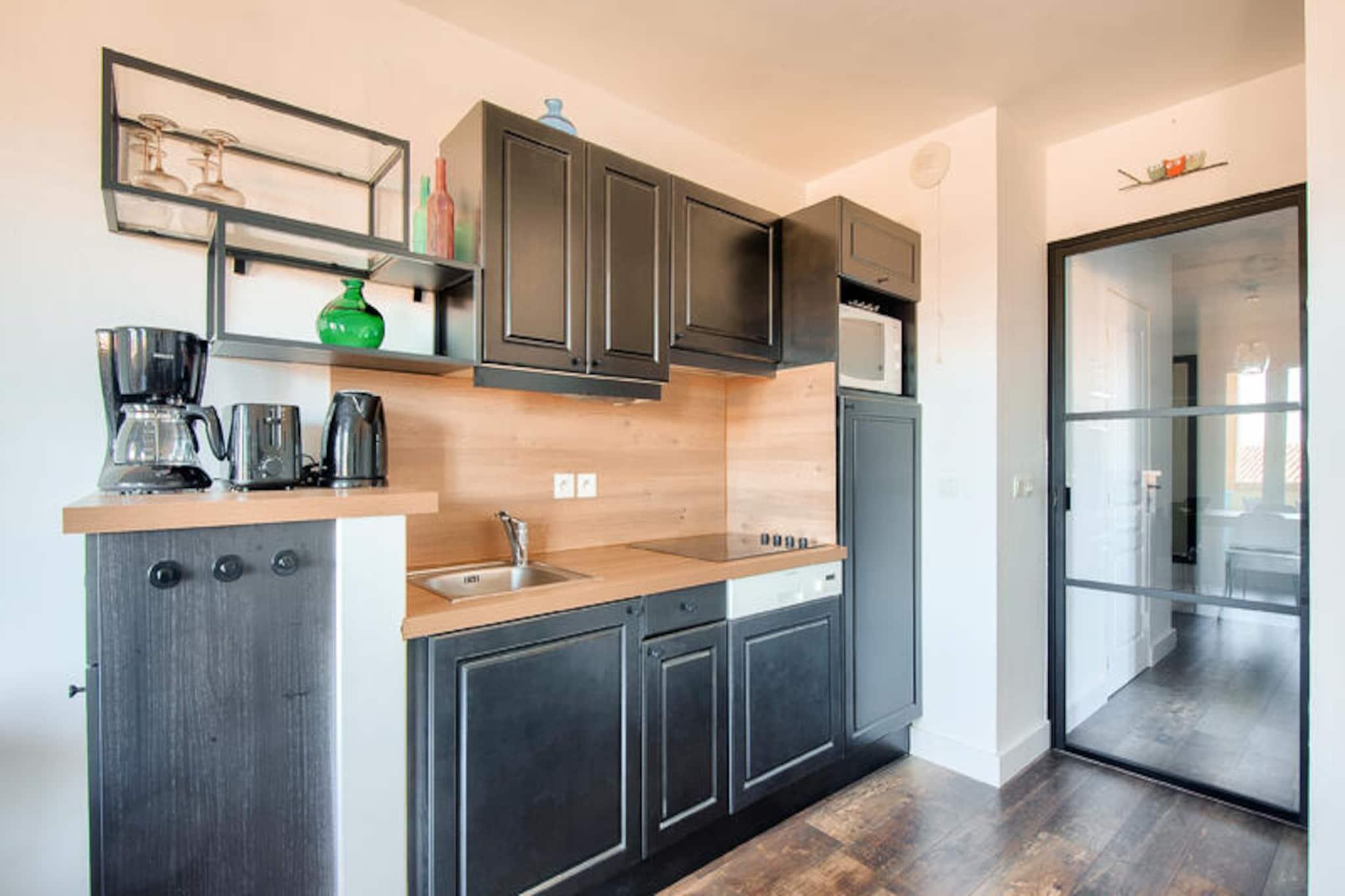 Midt i Provences bølgende landskaber, mellem Alpilles og Luberon-bjergene, ligger din fredfyldte tilflugtssted på den prestigefyldte ejendom Pont-Royal-en-Provence. Denne bolig, der strækker sig over 180 hektar, tilbyder et roligt tilflugtssted med en betagende udsigt over Luberon-massivet, hvor du kan sole dig under den varme provencalske sol og fordybe dig i regionens tidløse charme. Denne smukt designede lejlighed, der ligger på første sal, kan prale af en rummelig planløsning på 57 m² med et semi-åbent køkken, en hyggelig stue med en sovesofa og to komfortable soveværelser. Soveværelset har en luksuriøs dobbeltseng, mens det andet soveværelse har to enkeltsenge, hvilket gør det ideelt for familier eller små grupper. To moderne badeværelser, det ene med badekar og det andet med bruser, sikrer bekvemmelighed og komfort. Træd ud på din private, overdækkede terrasse for at nyde din morgenkaffe eller et aftenglas vin, mens du nyder den fredelige atmosfære. En dedikeret overdækket parkeringsplads bidrager til bekvemmeligheden under dit ophold. Gæsterne kan nyde eksklusiv adgang til Coteaux-distriktets swimmingpool, der er åben fra juni til september, eller tage en kort fem minutters gåtur til golf driving range og 6-hullers bane. For mere vandsjov er den opvarmede bølgepool med rutsjebaner og en vild flod tilgængelig i sommermånederne. Landsbyens centrum, kun 10 minutters gang væk, tilbyder et udvalg af butikker, restauranter og aktiviteter, hvilket sikrer, at alt hvad du behøver er inden for rækkevidde. Ud over ejendommen venter Provence med sine maleriske landsbyer på bakketoppe, pulserende lokale markeder og udsøgte gastronomi. Oplev regionens rige kulturarv, forkæl dig selv med lokalt håndværk, eller slap blot af blandt lavendelmarkerne og olivenlundene. Dette er mere end en ferie - det er en invitation til at opleve hjertet af Provence i al sin skønhed og ro.
