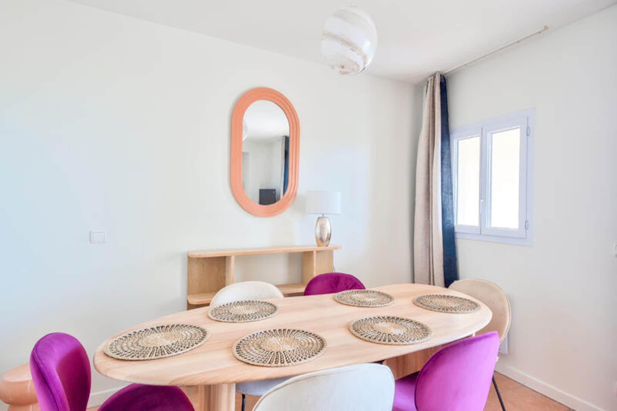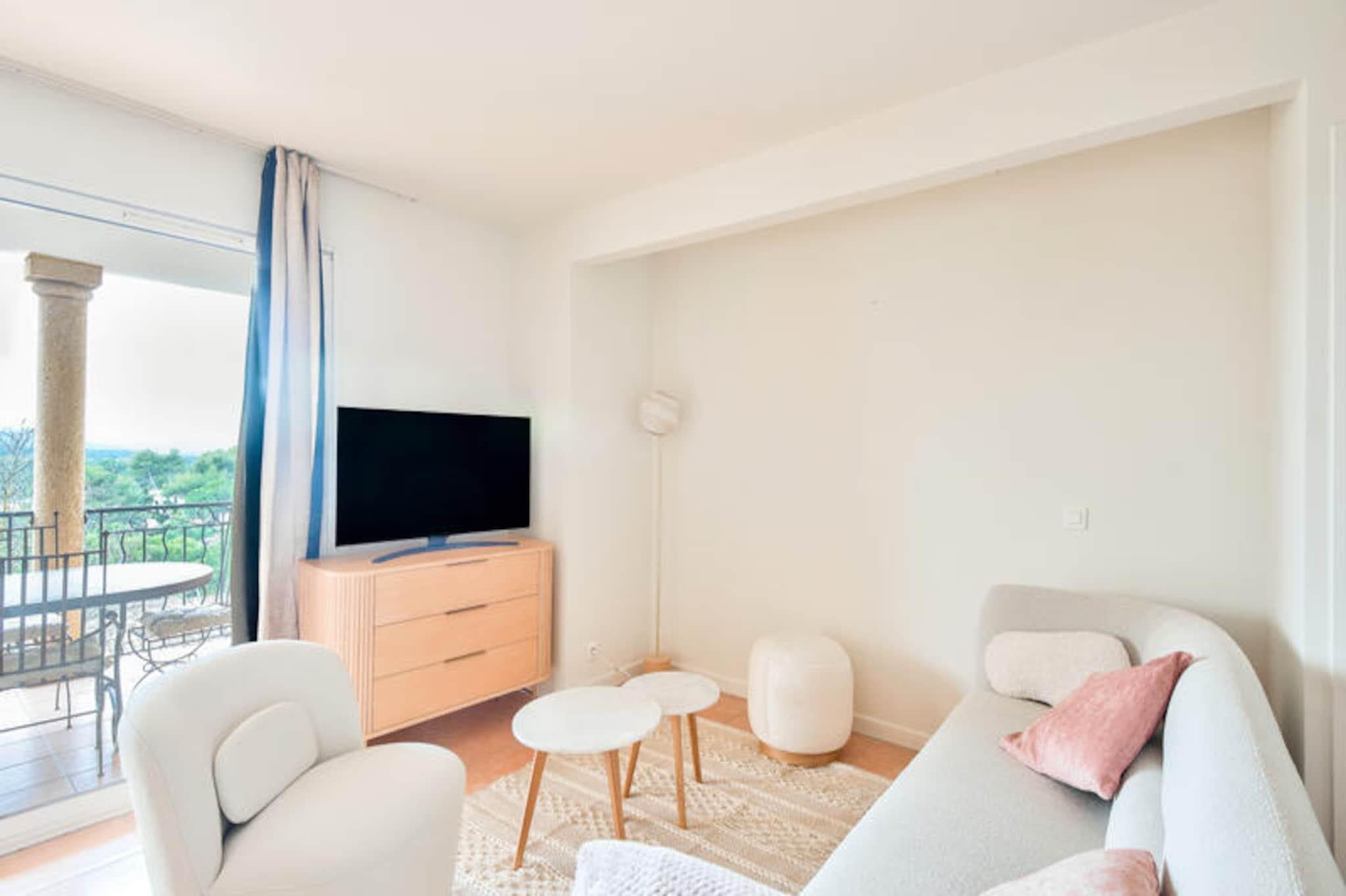 I hjertet af Provence, hvor Alpillerne møder Luberon-bjergene, ligger den fortryllende landsby Pont Royal. Dette fredfyldte tilflugtssted inviterer dig til at fordybe dig i den provencalske sols varme omfavnelse, omgivet af duftende lavendelmarker og den tidløse charme i Sydfrankrig. Uanset om du søger ro eller eventyr, tilbyder Pont Royal en idyllisk flugt for både familier, par og venner. Din bolig er en rummelig lejlighed på 74 m² designet med komfort og elegance i tankerne. Med to soveværelser, en hyggelig sovealkove med køjesenge og to badeværelser kan den komfortabelt rumme op til syv gæster. Det halvåbne køkken er fuldt udstyret og perfekt til at tilberede måltider, der kan nydes på den overdækkede terrasse med den fantastiske udsigt over dalen. Moderne faciliteter såsom sofabord, hårtørrer og indendørs parkering sikrer et problemfrit ophold. Den vestvendte terrasse er et ideelt sted at slappe af med et glas lokal rosé, mens solen går ned over det provencalske landskab. Pont Royal er en pulserende landsby centreret omkring et livligt torv med butikker, caféer og restauranter. Ugentlige markeder fremviser regionalt håndværk og delikatesser, mens sommeraftener vækkes til live med koncerter og forestillinger. For vandentusiaster tilbyder vandparken Pierre & Vacances Village bølgebassiner, doven floder og spændende rutsjebaner. Golfspillere vil fryde sig over den 18-hullers bane, mens rideentusiaster kan få lektioner på det lokale ridecenter. Børn i alderen 3 til 12 år kan deltage i børneklubben for en række sjove aktiviteter. Pont Royal ligger perfekt mellem Avignon og Middelhavskysten og er en port til Provences skatte. Udforsk de historiske byer Aix-en-Provence og Les Baux-de-Provence, eller tag til Calanques i Cassis for at nyde en betagende kystudsigt. Uanset om du nyder provencalsk køkken, vandrer gennem Luberons maleriske landsbyer eller blot nyder solen, er dette en destination, hvor minder skabes.