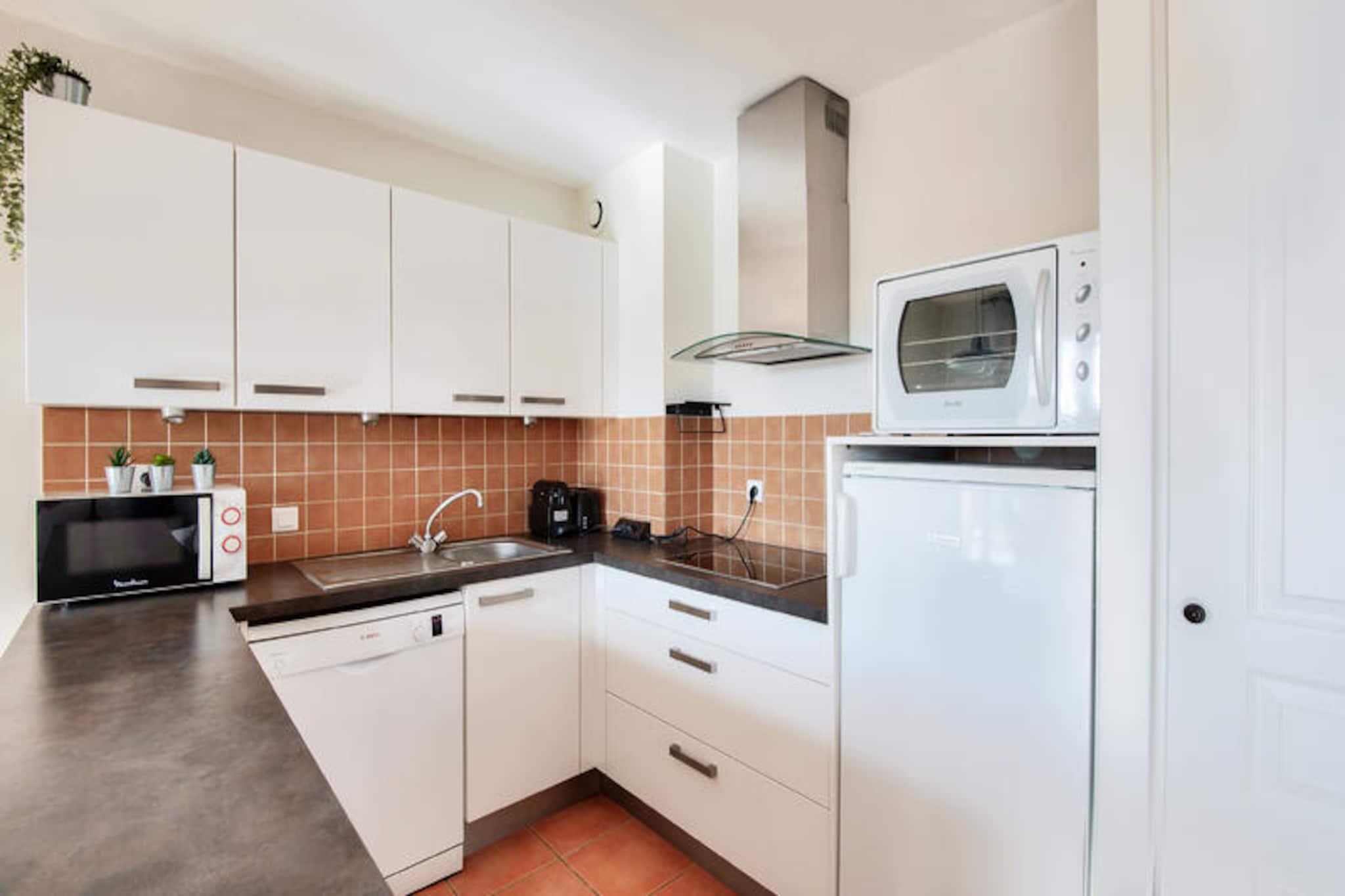 Midt i Provences bølgende bakker, hvor Alpilles og Luberon-bjergene omfavner horisonten, ligger den fortryllende landsby Pont Royal. Dette idylliske tilflugtssted inviterer dig til at fordybe dig i det sydlige Frankrigs charme med dets solbeskinnede landskaber, duftende lavendelmarker og den beroligende summen af ??cikader. Her sætter livet farten ned og tilbyder en perfekt blanding af afslapning og eventyr under den provencalske sol. Uanset om du nipper til kaffe på en hyggelig café på den centrale plads eller udforsker de brostensbelagte gader med kunsthåndværkerbutikker, lover Pont Royal en autentisk og uforglemmelig oplevelse. \n\nDin feriebolig er et smukt renoveret hus i stueetagen, der kombinerer moderne komfort med provencalsk elegance. Huset har en rummelig stue, et åbent køkken og tre hyggelige soveværelser, herunder et soveværelse med dobbeltseng og værelser med enkelt- og køjesenge, hvilket gør det ideelt for familier eller grupper på op til otte personer. De to veludstyrede badeværelser, det ene med fritstående badekar og det andet med bruser, sikrer bekvemmelighed for alle gæster. Gå udenfor til din private overdækkede terrasse og have, hvor du kan slappe af med udsigt over den maleriske landsby. Yderligere faciliteter såsom vaskemaskine, Wi-Fi og udendørs parkering forbedrer dit ophold, mens maeva super Home-oplevelsen sikrer, at sengene er redt ved ankomst, og slutrengøring er inkluderet. \n\nBare få skridt væk vækkes landsbytorvet til live med ugentlige markeder, der fremviser provencalske delikatesser og kunsthåndværk, samt sommerkoncerter og shows. Til familiesjov tilbyder det nærliggende vandland Pierre & Vacances Village en bølgebassin, doven flod og spændende rutsjebaner. Sportsentusiaster vil sætte pris på 18-hullers golfbanen og ridecentret, mens børnene kan nyde børneklubben med daglige aktiviteter. Uden for landsbyen kan du opdage Provences skatte, fra de historiske gader i Avignon til de dramatiske calanques i Cassis, alt sammen inden for en times kørsel. \n\nUanset om du søger ro, eventyr eller en smag af provencalsk kultur, er dette charmerende tilflugtssted i Pont Royal din port til en uforglemmelig ferie.