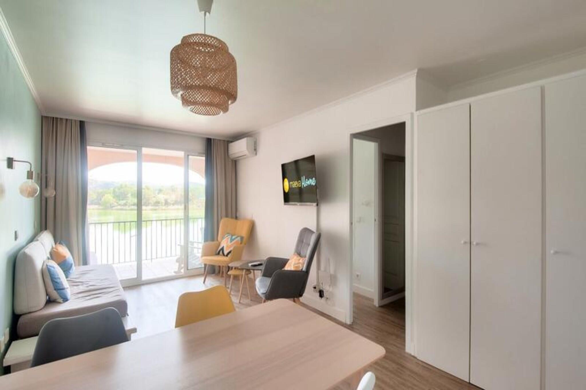 La Résidence Pont Royal en Provence - maeva Home está situada en Bouches-du-Rhône, entre Aix-en-Provence y Aviñón. Es un destino ideal para recargar pilas y disfrutar de las múltiples actividades. La residencia está situada en el corazón del pueblo peatonal, en un área de 180 ha organizada alrededor de una plaza central compuesta por tiendas y restaurantes. Podrás disfrutar de multitud de actividades: baloncesto, vóley playa, equitación, zona acuática... Los alojamientos de Maeva Home son alquileres totalmente equipados para personas ubicadas dentro de Pierre & Vacaciones. Se beneficiará de las ventajas de un Pierre & Vacaciones y servicios a la carta según sus deseos. Los servicios esenciales están incluidos: * Ropa de cama *Kit de mantenimiento * Productos de bienvenida * Espacio acuático del Valle de los Loisirs que ofrece toboganes, rafting en ríos artificiales, piscina de olas climatizada... Para las villas se incluyen la piscina privada, la terraza equipada con muebles de jardín y el garaje. Entretenimiento y ocio (cargo adicional): * Entretenimiento para toda la familia * Clubes infantiles de 3 meses a 17 años (durante el periodo de apertura del pueblo) * Campo de golf de 18 hoyos Tenga en cuenta: los clientes de Maeva tienen acceso a las áreas acuáticas P&V del pueblo. Su alquiler vacacional incluye: 1 sala de estar cuidadosamente decorada, 1 cocina equipada, 1 dormitorio confortable y climatizado, 1 baño, 1 aseo independiente, 1 gran balcón cubierto con vista al lago y 1 plaza de aparcamiento. Las ventajas de su alquiler: Disfrute de un apartamento para 4 personas renovado en 2023 y cuidadosamente decorado para sus vacaciones en Pont Royal. Está situado en el centro del pueblo, cerca de comercios y actividades. Se beneficiará de un balcón orientado al sur con una hermosa vista del lago. Superficie: 36 m². Ubicación: Piso de alojamiento: 1er piso Centro de la ciudad o pueblo: Centro del pueblo Distancia comercial: <100m Actividades a distancia: <100m Número de niveles de vivienda: Una sola planta Composición del salón: Sofá cama del salón: 1 Cama nido Salón: 1 Mesa de centro: Sí Lado de la comida: Tipo de cocina: Semiabierta Composición de las habitaciones: Dormitorio 1: Cama doble: 1 Composición del baño: Número de baño: 1 Número de baños separados: 1 Baño principal: Tipo de baño: Bañera con columna Una toma de corriente libre cerca del espejo: Sí Gancho(s) sin calefacción o secador de toallas: Sí Secador de toallas eléctrico: Sí Espacio(s) de almacenamiento (sin incluir el estante debajo del espejo y el tocador): Sí Secador de pelo eléctrico: Sí Exteriores: Balcón: Cubierto Vista: Lago Orientación: Sur Aparcamiento dedicado al alojamiento: Sí Tipo de Estacionamiento: Cubierto Vive la experiencia maeva.com en este alojamiento certificado por nuestro Sello maeva Home Selection: Apartamentos mantenidos, al día y con equipamiento de calidad. Para unas vacaciones exitosas y confortables. El plus de la experiencia maeva super Home: Una acogida personalizada y servicios de calidad incluidos directamente en el precio de su alquiler: ropa de cama, ropa de baño, camas hechas a la llegada, limpieza final, acceso wifi y kit de mantenimiento. ¡Todo está pensado para que tengas una excelente estadía! Se admiten mascotas - Además, consultar precios directamente con la residencia. Ropa de cama - Incluida - el contenido puede variar según la residencia: sábana bajera, sábana o funda nórdica y funda de almohada. Posibilidad de cambio diario de ropa de cama disponible con coste adicional, consultar precios en recepción. Toallas - Cargo extra. Posibilidad de cambio diario de ropa de cama disponible con coste adicional, consultar precios en recepción. Limpieza final de estancia - Servicio de limpieza obligatorio a pagar al realizar el check-in o a la llegada. Limpieza diaria - Disponible con coste adicional, consultar tarifas en recepción. Estacionamiento - Para alojamientos que no cuentan con estacionamiento privado, es posible estacionar en el Estacionamiento de Visitas. Tasa turística (cargo adicional) - El pago de la tasa turística se realiza a través de su espacio personal: https://mon-compte.maeva.com, el importe varía según la ubicación. Gratis para menores de 18 años. Depósito (en euros) - 500
