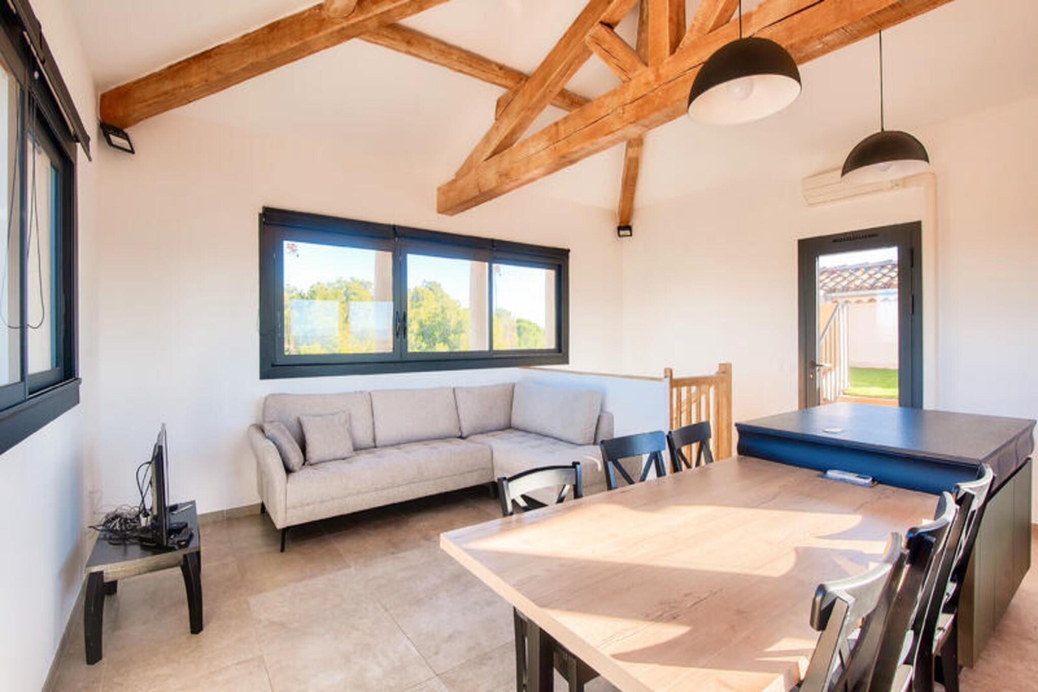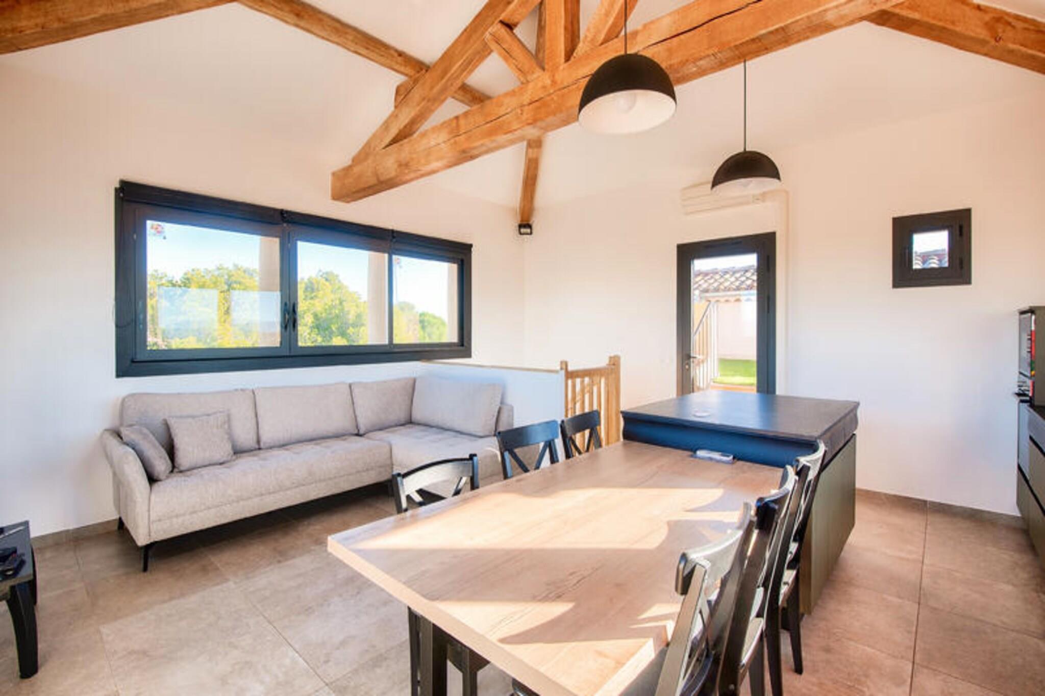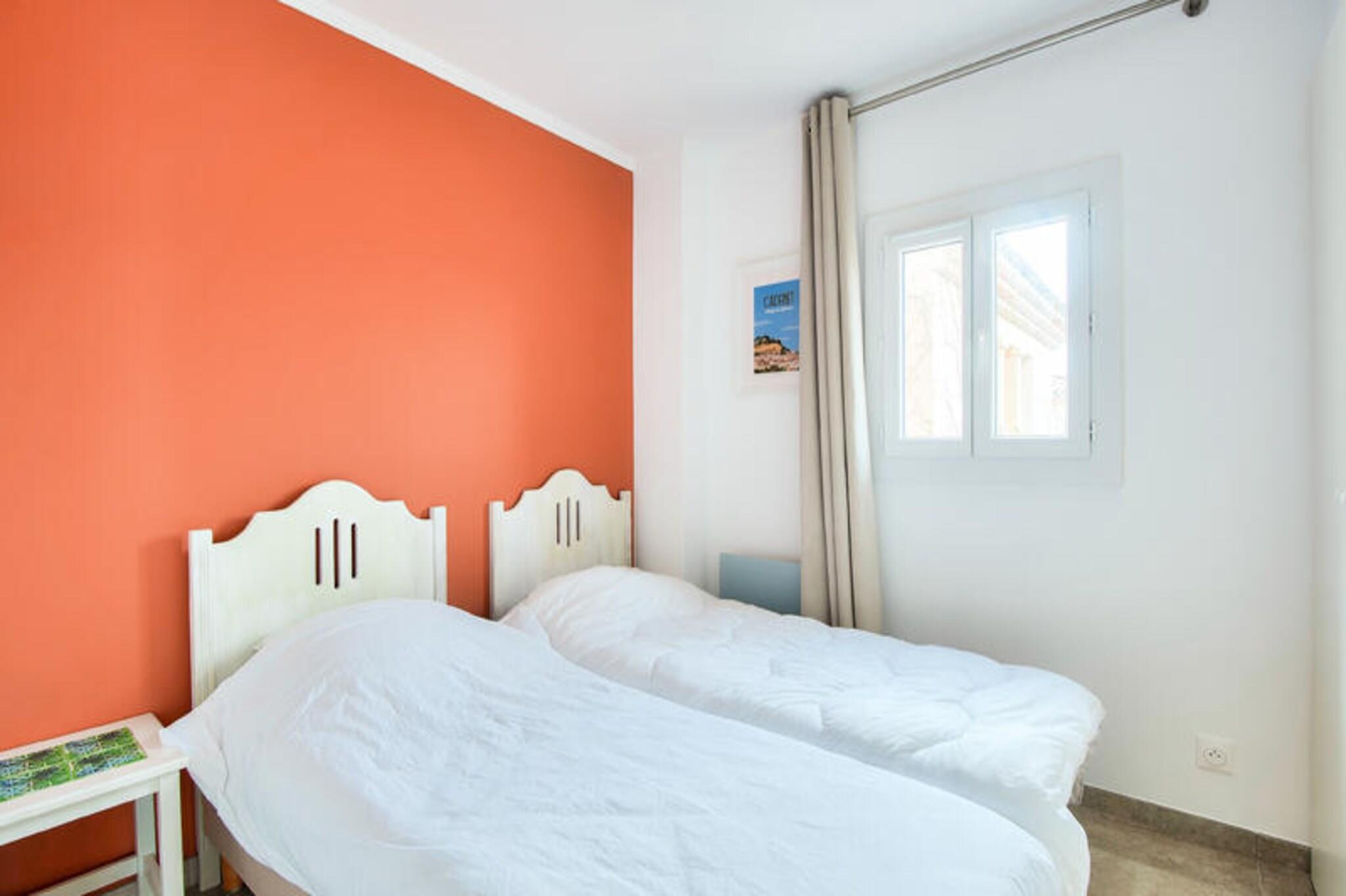 Beliggende i en malerisk fodgængerlandsby i Bouches-du-Rhône tilbyder denne elegante 60 m² store lejlighed et fredfyldt tilflugtssted mellem Aix-en-Provence og Avignon. Den kan rumme op til fire gæster og har en komfortabel opholdsstue, et halvåbent køkken, to rummelige soveværelser - det ene med en dobbeltseng og det andet med to enkeltsenge - sammen med to badeværelser og et separat toilet. Gæsterne kan nyde den møblerede terrasse med en charmerende udsigt over landsbyen. Vigtige tjenester, herunder sengelinned og et vedligeholdelsessæt, tilbydes, og kæledyr er velkomne mod et ekstra gebyr. Lejligheden er ideelt placeret i hjertet af landsbyen, inden for 100 meter fra butikker, restauranter og en række aktiviteter. Gæsterne kan udforske den pulserende lokale kultur, nyde den 18-hullers golfbane eller drage fordel af det nærliggende vandområde, som byder på et opvarmet bølgebassin, kunstig riverrafting og spændende rutsjebaner. For familier tilbyder børneklubber og underholdningsprogrammer sjov for alle aldre, mens det omkringliggende provencalske landskab giver uendelige muligheder for afslapning og udforskning. Denne lejlighed er omhyggeligt udstyret med moderne bekvemmeligheder for at sikre et problemfrit ophold. Det semi-åbne køkken indeholder alt det nødvendige, mens badeværelserne er udstyret med elektriske håndklædetørrere og opbevaring. Der er gratis offentlig parkering i nærheden, og yderligere tjenester såsom daglig rengøring og leje af håndklæder kan arrangeres mod et gebyr.