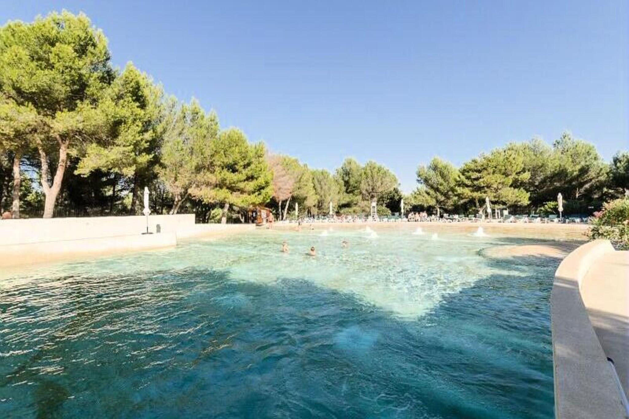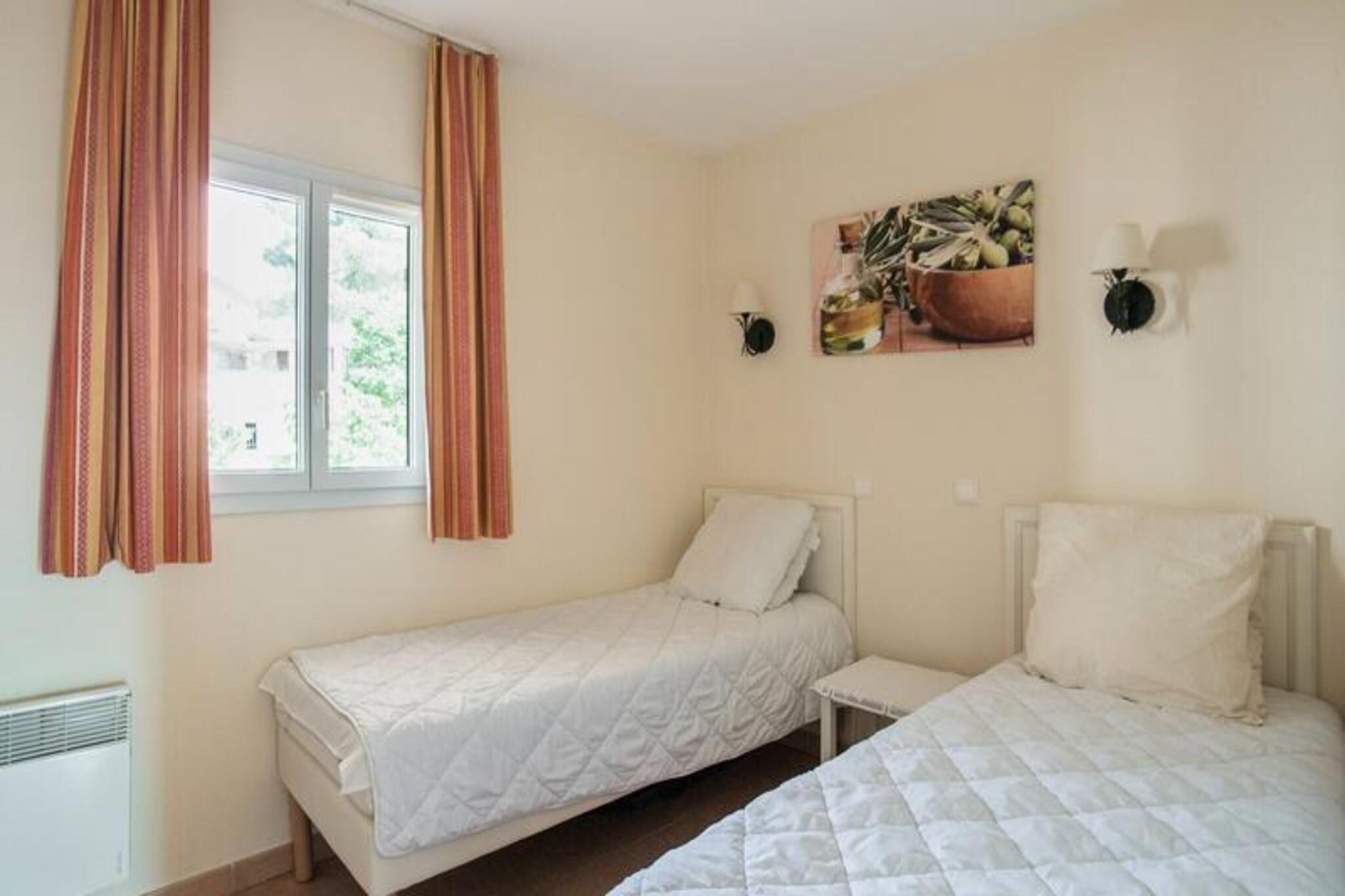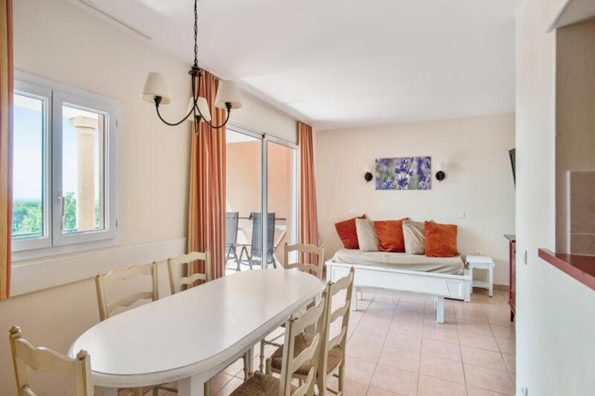 Denne charmerende lejlighed er beliggende i en fodgængerlandsby, der tilbyder et afslappende ophold med masser af aktiviteter for alle aldre. Boligen indeholder to soveværelser, et med dobbeltseng og et andet med to enkeltsenge, samt sovesofa og trilleseng i stuen, der giver plads til op til syv gæster. Kæledyr er tilladt mod et ekstra gebyr. Ejendommen inkluderer væsentlige tjenester såsom sengelinned og et vedligeholdelsessæt, med valgfri ekstra service såsom daglige skift af sengetøj og slutrengøring. Beliggende mellem Aix-en-Provence og Avignon er denne lejlighed beliggende i en 180 ha stor landsby, omgivet af butikker, restauranter og forskellige fritidsaktiviteter. Gæsterne kan nyde vandområdet med rutsjebaner, en opvarmet bølgebassin og kunstig riverrafting. Der er også en nærliggende 18-hullers golfbane plus underholdning for alle aldre, herunder børneklubber. Landsbyen er perfekt til et roligt tilflugtssted eller en aktiv ferie med adskillige udendørs og familievenlige muligheder. Lejligheden er fuldt udstyret til et behageligt ophold, herunder et åbent køkken og spiseplads. De to badeværelser har bruser og badekar, med to separate toiletter for nemheds skyld. Den rummelige 40 m² store terrasse er perfekt til at slappe af, mens der er parkeringsplads til gæsterne.