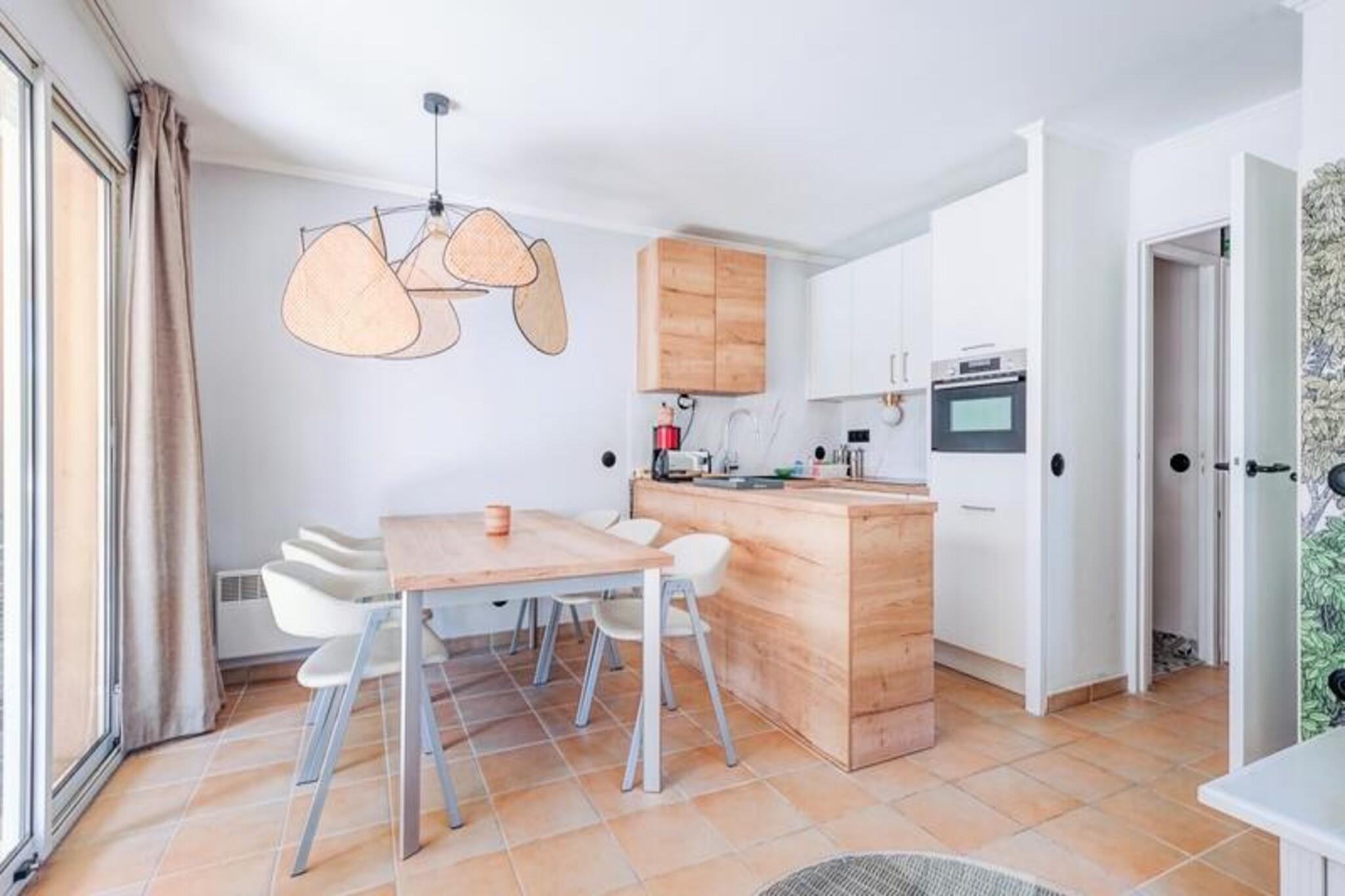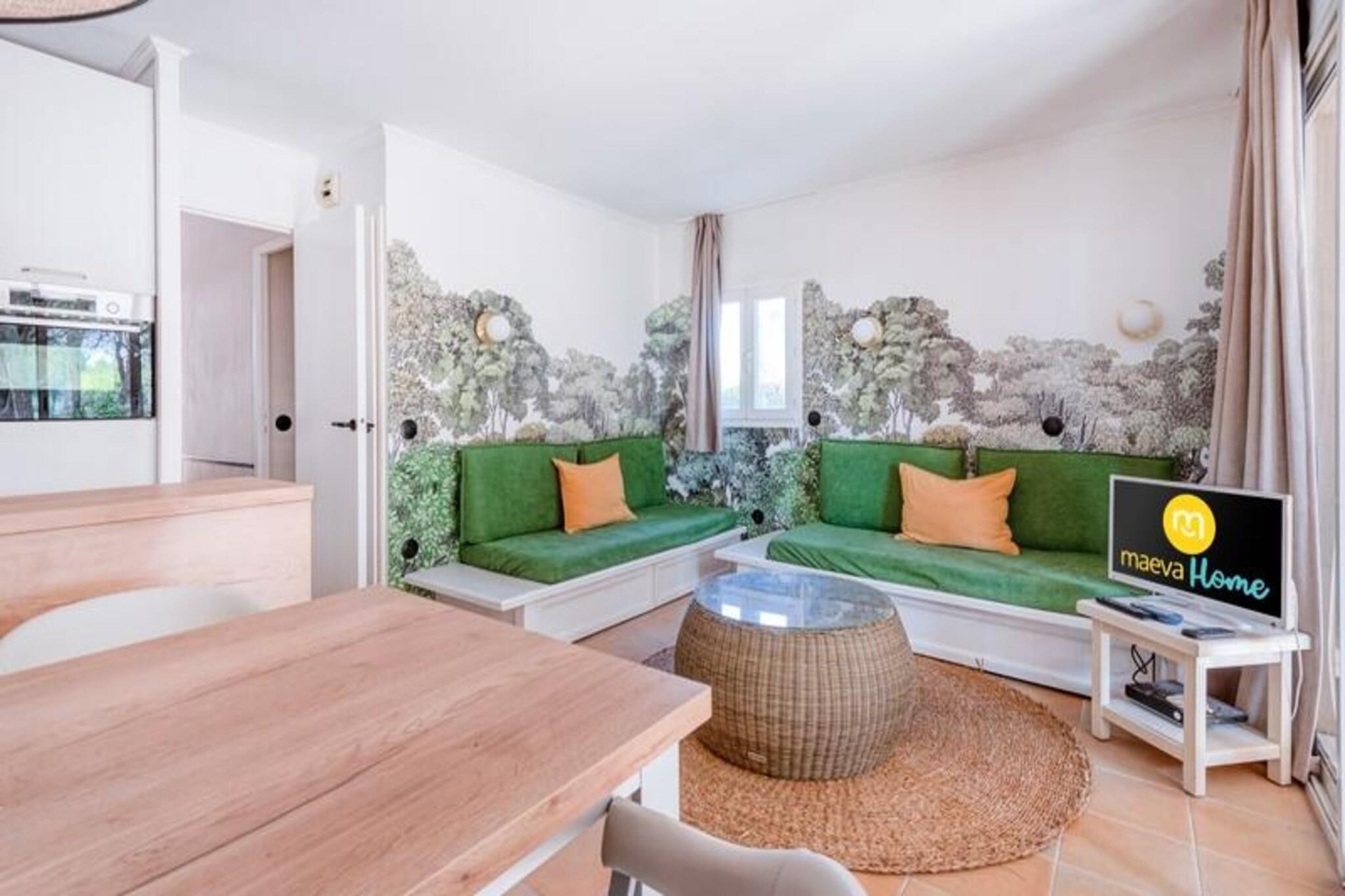 Denne rummelige ferielejlighed er ideel til familier eller grupper, komfortabelt med plads til op til 6 gæster. Stuen har to sovesofaer, den ene med en udtræksseng, hvilket giver rigelig soveplads. Et privat kabineområde med to enkeltkøjesenge tilbyder ekstra privatliv for børn. Det største soveværelse er indrettet med en dobbeltseng, og kæledyr er tilladt mod et tillægsgebyr. Væsentlige tjenester, herunder sengelinned, leveres, med valgfrit ekstraudstyr som daglige skift af sengetøj og håndklæder til rådighed mod et gebyr. Lejligheden ligger i en fredelig fodgængerlandsby og tilbyder nem adgang til forskellige fritidsaktiviteter. Gæsterne kan nyde landsbyens centrale plads med butikker, restauranter og caféer. For dem, der søger udendørs eventyr, er den nærliggende 18-hullers golfbane, swimmingpools og sportsfaciliteter såsom basketball og beachvolley perfekte til aktive ferier. Vandlandet Vallée des Loisirs, med rutschebaner, en kunstig flod og et opvarmet bølgebassin, ligger også i kort afstand. Lejligheden har et fuldt udstyret køkken, der er åbent til opholdsstuen, hvilket gør madlavning til en leg. To badeværelser giver bekvemmelighed, det ene med badekar og det andet med bruser og toilet. En privat terrasse tilbyder udendørs afslapning, mens en obligatorisk slutrengøring sikrer, at lejligheden er klar til din ankomst. For ekstra bekvemmelighed er en besøgende parkeringsplads tilgængelig for gæster uden en udpeget parkeringsplads.