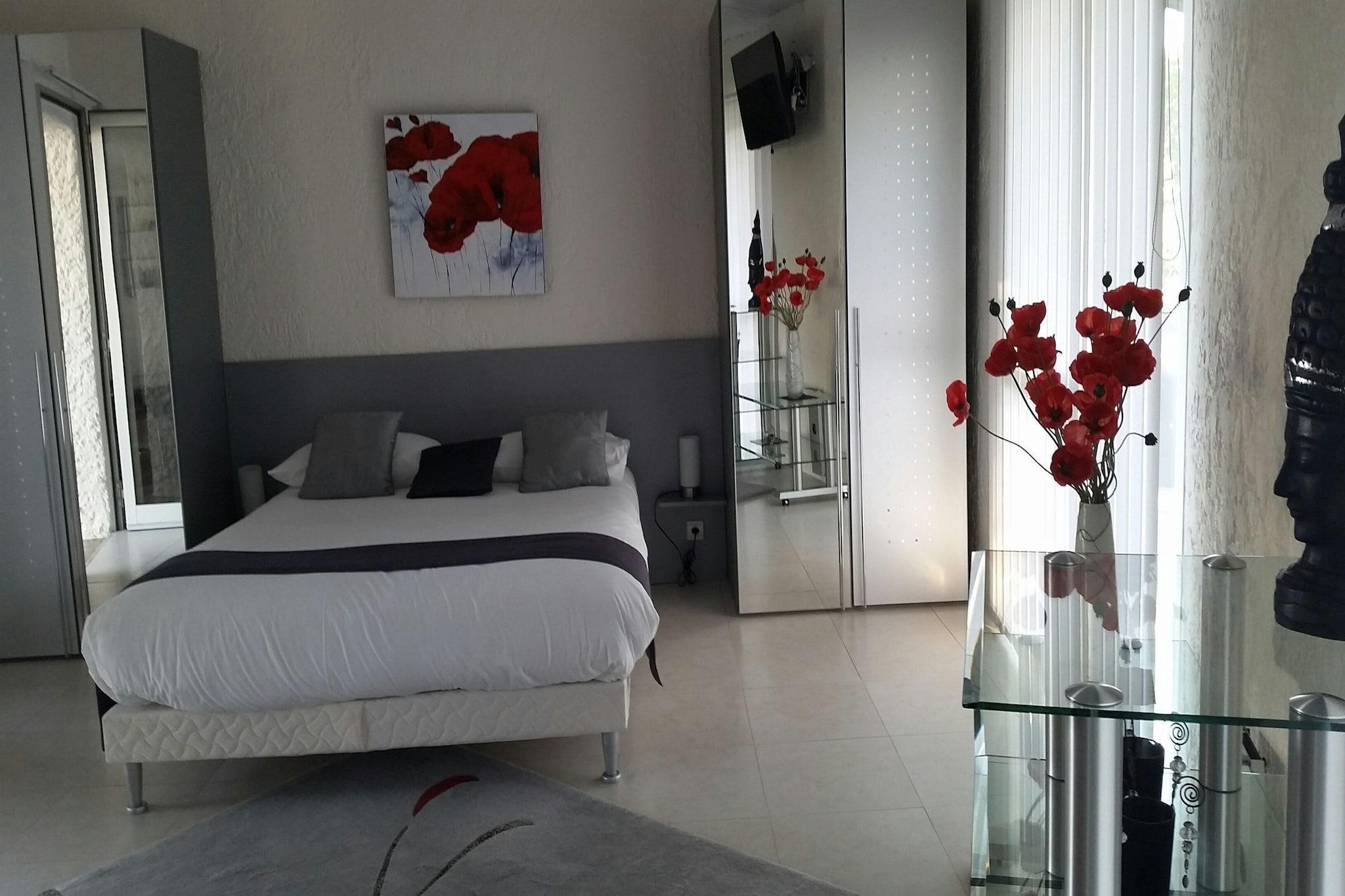 Stor lejlighed på 200 m² i en arkitekttegnet villa på en usædvanlig beliggenhed. Ikke overset, meget stille, fuldt udstyret med aircondition og tæt på alle faciliteter. Består af en stor suite og to soveværelser med flere sydvendte terrasser og panoramaudsigt over havet og bjergene. Flere lounger, spisestue, et moderne udstyret køkken, massageområde, lydrum, udstyret sportsrum, jacuzzi, hammam, sauna, bordtennisområde, plancha og grill, ... er tilgængelige for alle! I et privat og lukket område på mere end 300 hektar, som på grund af sin beliggenhed og beliggenhed, uden nogen modsætning, tilbyder lejligheden intimitet, fred og absolut ro. Den er velegnet til de mest krævende kunder, VIP'er og berømtheder. På grund af sin rolige beliggenhed udlejes denne lejlighed ikke til ungdomsgrupper. Ferielejligheden ligger i samme ejendom som ejeren.