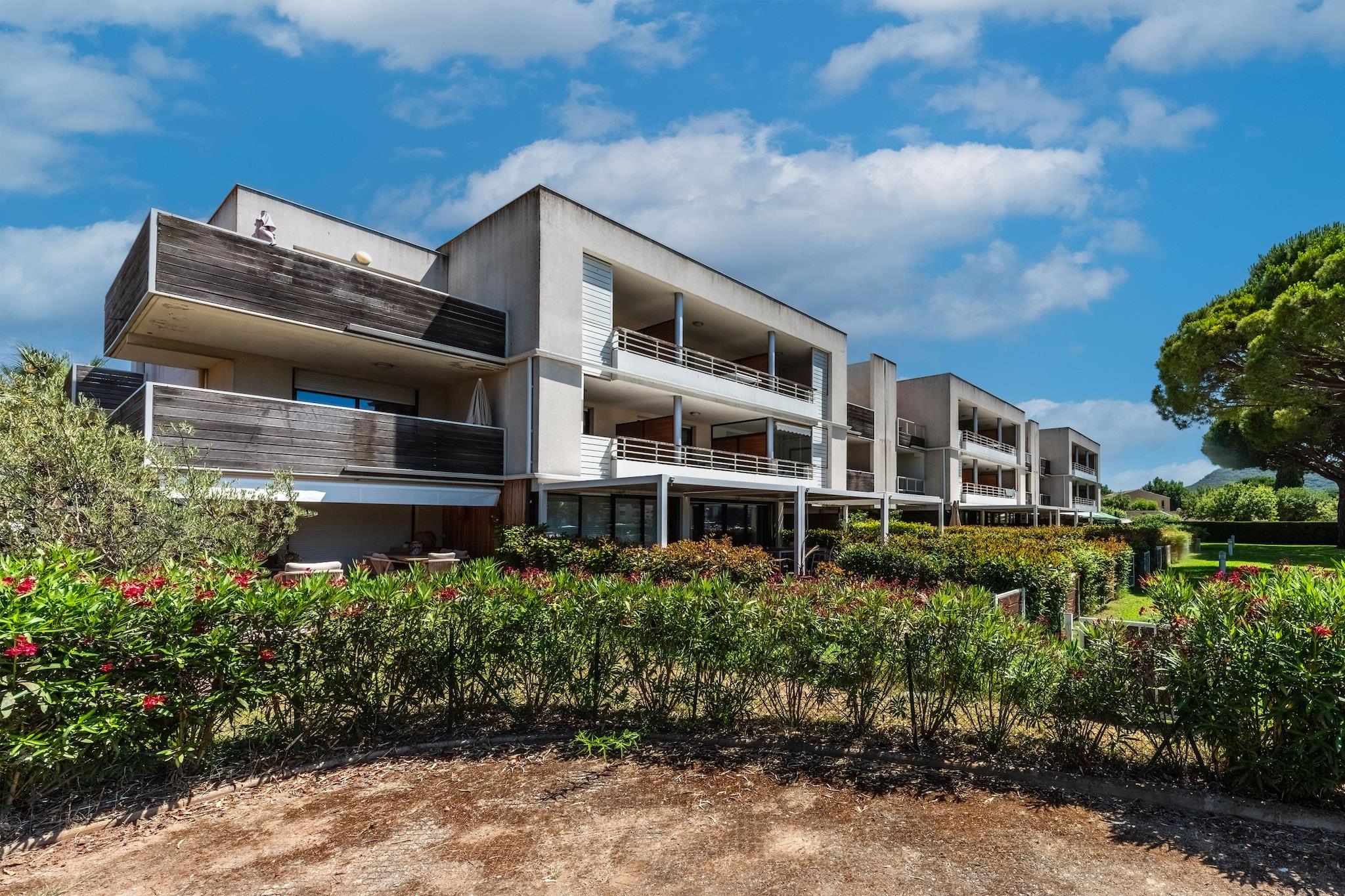 , åbent køkken(elkedel, brødrister, kaffemaskine, ovn, mikrobølgeovn, opvaskemaskine , køleskab, ), stue / spisestue(dobbeltsovesofa, Fjernsyn, spisebord), soveværelse(enkeltseng, enkeltseng), soveværelse(dobbeltseng), badeværelse(bruser, håndvask, toilet), Havemøbler, balkon, parkering, swimmingpool(deles med andre gæster)
