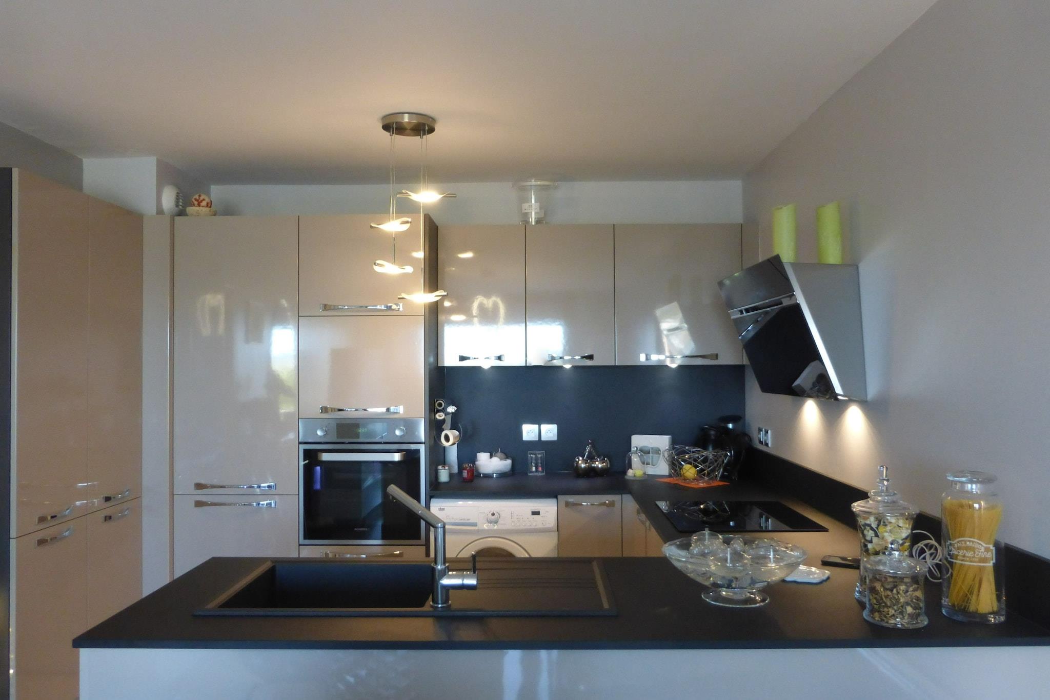 På 1. etage: (åbent køkken(elkedel, brødrister, komfur(Komfur med tre kogeplader, induktion), kaffemaskine(kaffepude), ovn, mikrobølgeovn, opvaskemaskine , køleskab, fryser), stue / spisestue(dobbeltsovesofa(140 x 190 cm), Fjernsyn(Tyske TV-kanaler), spisebord), soveværelse(dobbeltseng(160 x 200 cm), Fjernsyn(Tyske TV-kanaler)), badeværelse(bruser, føntørrer), toilet) garage, tørretumbler, vaskemaskine, varme(elektrisk), terrasse, cykelopbevaring(deles med andre gæster), havemøbler, swimmingpool(deles med andre gæster, 20 x 10 m., opened from May upto and including Sep), swimmingpool(deles med andre gæster, inkl. separat børne swimmingpool (maks. dybde 50 cm)), tennisbane(deles med andre gæster), petanquebane(deles med andre gæster), bordtennisbord(deles med andre gæster), fitnessapparater(deles med andre gæster), elevator, baldakin, loungemøbler