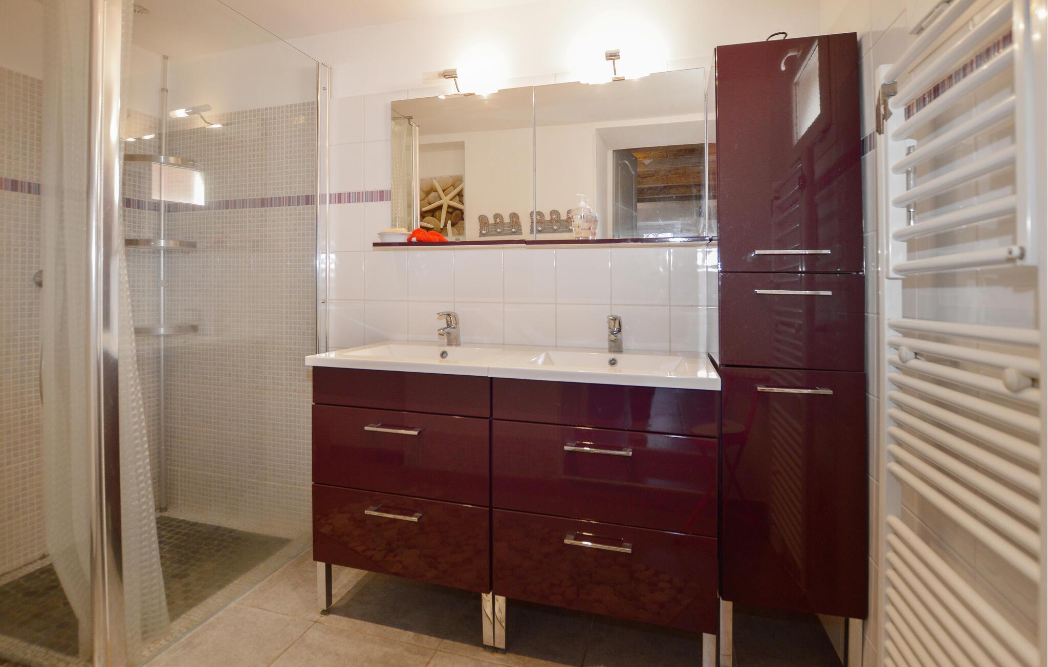 Forkæl jer selv med en pause fra hverdagens hektik i dette familievenlige hus, der ligger i fredelige, rolige omgivelser og giver jer de bedste rammer for en afslappende ferie. Huset byder på et vellykket mix af moderne elegance og mere rustik charme med synlige trælofter- og bjælker. I finder mange gode faciliteter, så I kan slappe af uden de store bekymringer og bare nyde at være på ferie.