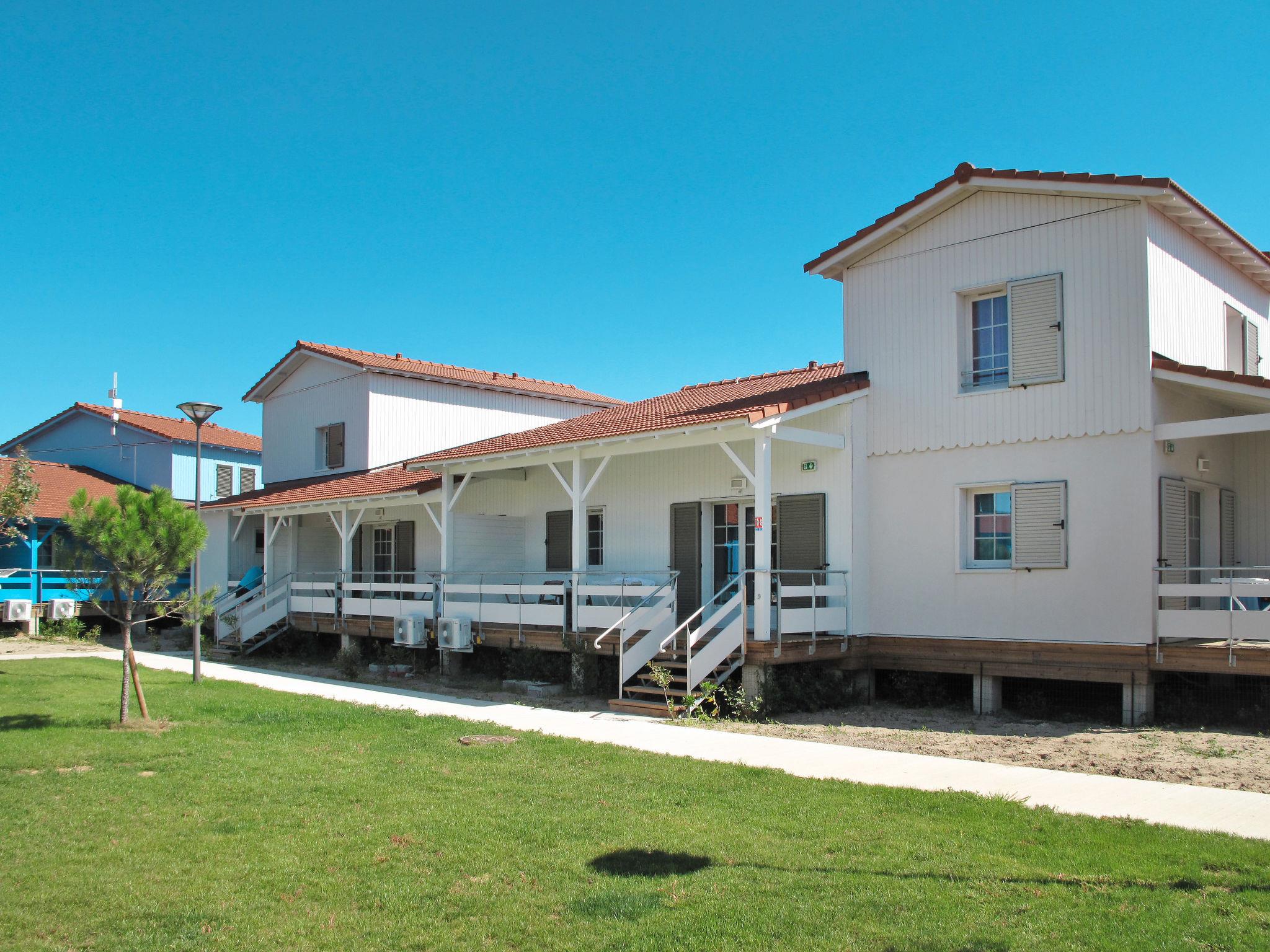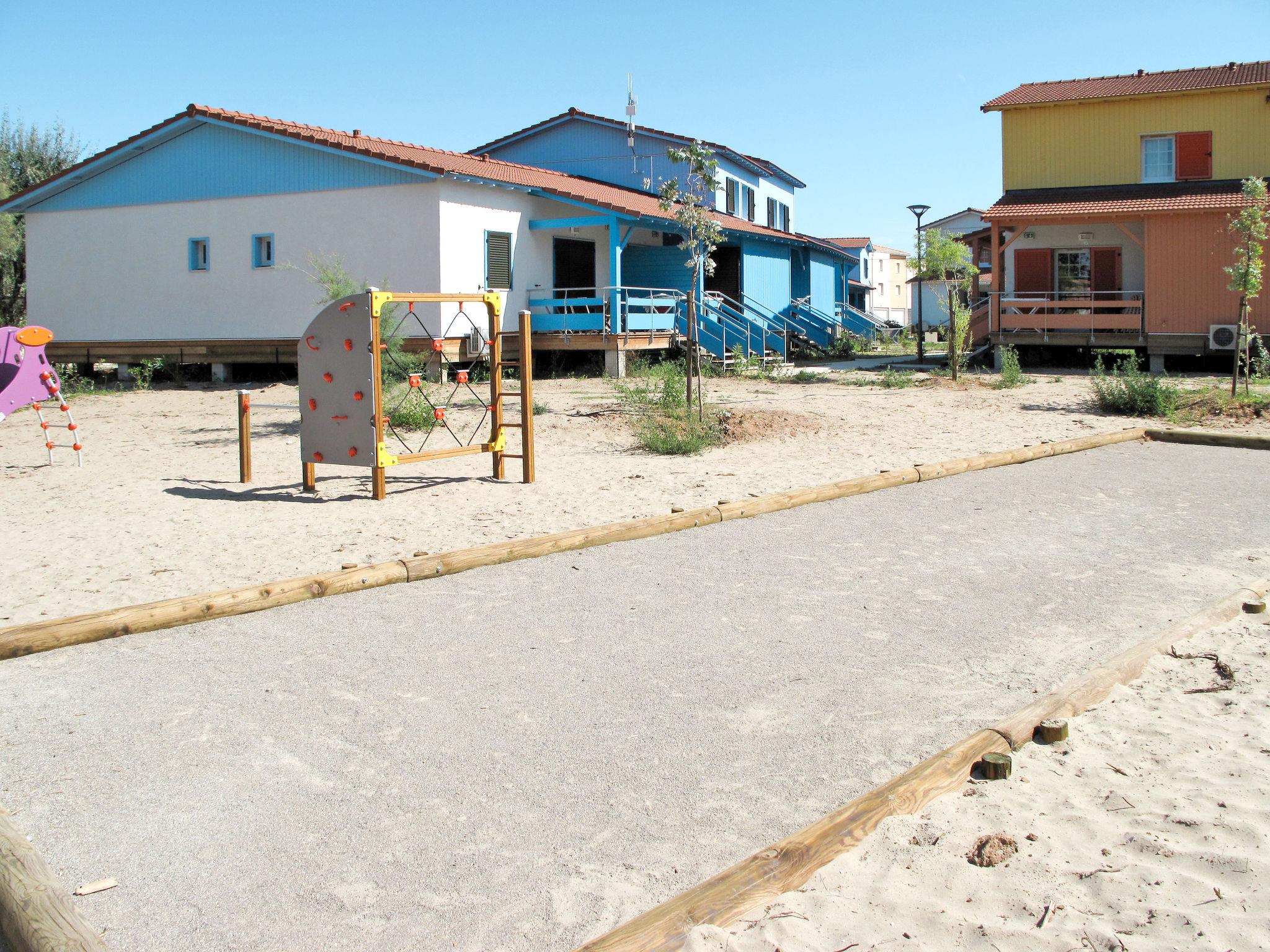 Child friendly resort "La Grenadine", 2 storeys, built in 2013. 90 houses in the residence. 1.8 km from the centre of Marseillan-Plage, on the outskirts, 8 km from the centre of Cap d'Agde, 32 km from the centre of Béziers, 200 m from the sea. For shared use: property (fenced), swimming pool heated (16 x 8 m, seasonal availability: 01.Apr. - 15.Oct.). WC in the pool area, children's pool, outdoor shower, table tennis, boccia, children's playground. In the complex: reception, bar, bistro, sauna (extra). Fitness room, steam room (extra). Washing machine, tumble dryer (for shared use, extra). Bread roll service. Stepped path (3 steps) to the house. Parking. Shop 1.8 km, supermarket 7 km, bus stop "Le canal" 130 m, sandy beach 200 m. Marina 1 km. Please note: car-free holiday complex. Suitable for families. The photograph shows a typical example. The holiday properties may differ in living space, floorplan, equipment and furnishing.