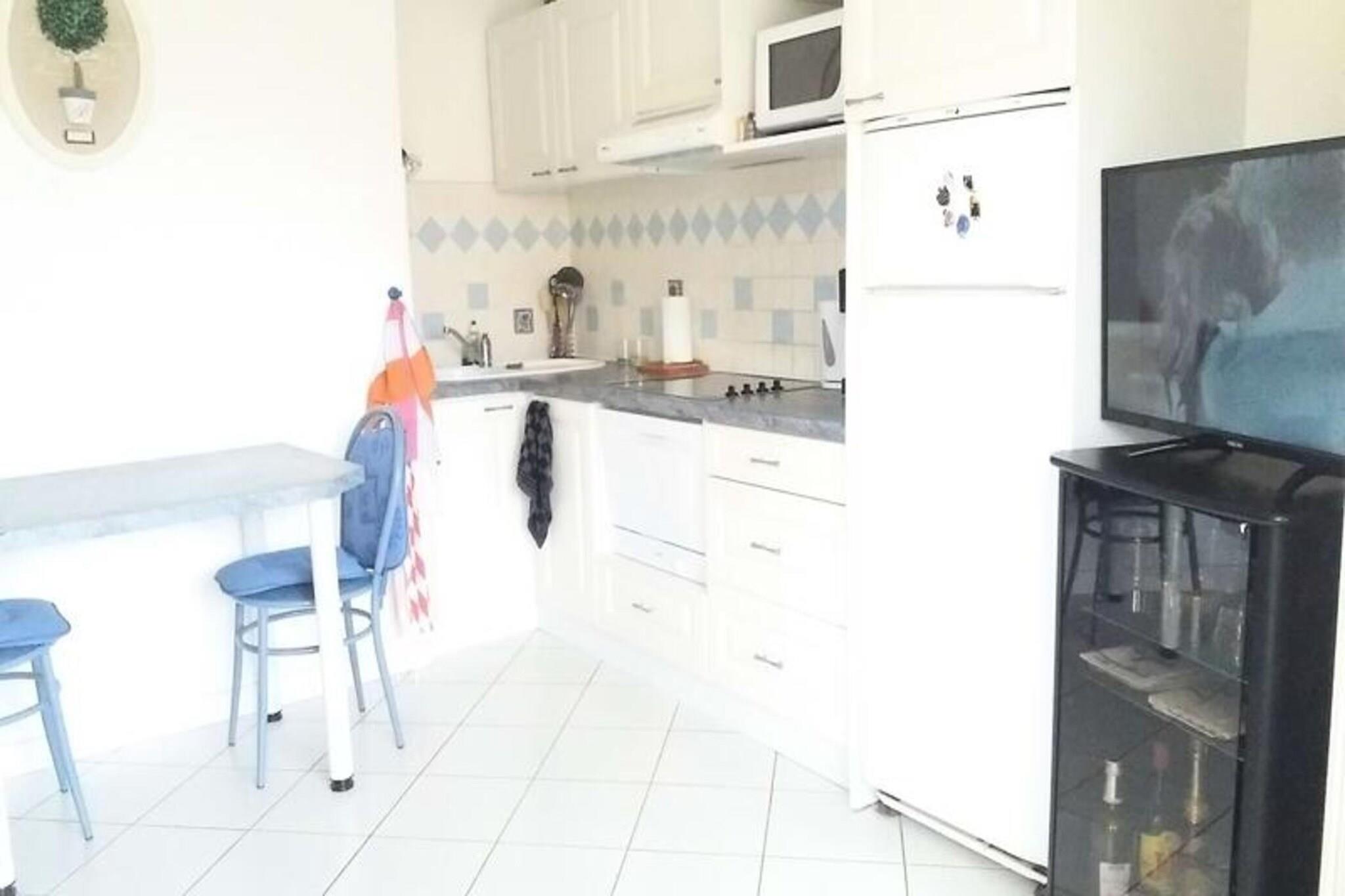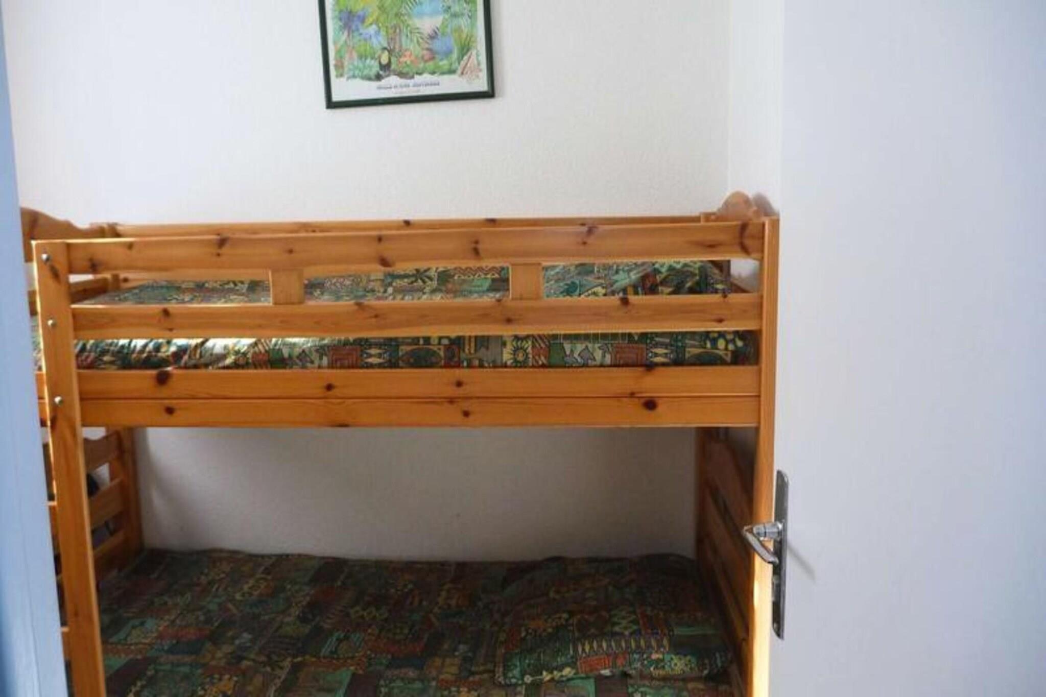 Denne hyggelige ferielejlighed er designet til et behageligt ophold med plads til op til fire personer. Stuen er udstyret med en sofa, bord, stole, tv og aircondition for din bekvemmelighed. Lejligheden indeholder to soveværelser: et med dobbeltseng og kommode, og det andet med to køjesenge og en kommode. Ejendommen er kæledyrsfri for at opretholde et fredeligt miljø. Beliggende i en bolig med gode faciliteter, finder du en swimmingpool (tilgængelig fra midten af ??juni til midten af ??september), en tennisbane og en petanquebane. Det omkringliggende område byder på nem adgang til butikker og restauranter, hvilket gør det til en førsteklasses beliggenhed for både afslapning og udforskning. Du vil være i stand til at nyde alle de nærliggende attraktioner og fritidsaktiviteter. Inde i lejligheden er det åbne køkken fuldt udstyret med keramisk kogeplade, mikroovn, køleskab/fryser, opvaskemaskine og elektrisk kaffemaskine. Badeværelset har bruser, håndvask og vaskemaskine, og der er separat toilet. En terrasse med fortelt og havemøbler giver en perfekt plads til udendørs afslapning. Privat parkering er tilgængelig for gæster.