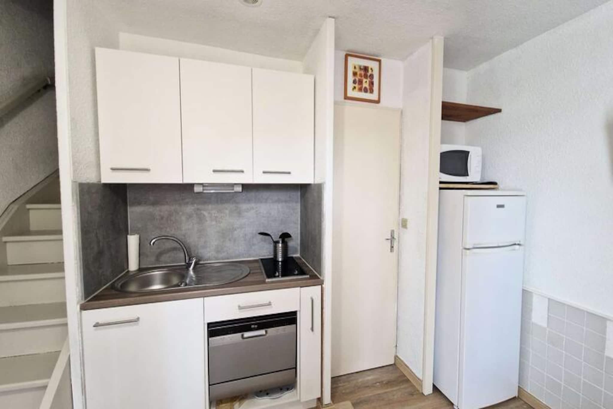 Langs de rolige bredder af kanalen i Marseillan inviterer dette charmerende duplex-feriehus dig til at opleve den perfekte blanding af afslapning og rekreation. Omgivet af den fredfyldte skønhed i Sydfrankrig tilbyder ejendommen et fredeligt tilflugtssted for familier og venner, der søger kvalitetstid sammen i maleriske omgivelser. Forestil dig morgener med at nippe til kaffe på den solbeskinnede terrasse, eftermiddage ved poolen og aftener med den blide brise fra den nærliggende vandvej. Det er her, de kære minder skabes. \n\nIndenfor kan huset prale af en lys og indbydende stue med en komfortabel sovesofa, tv og spiseplads til fælles måltider og samtaler. Det fuldt udstyrede køkken inkluderer moderne apparater såsom mikrobølgeovn, keramisk kogeplade, køleskab/fryser, kaffemaskine, brødrister og opvaskemaskine, hvilket sikrer bekvemmelighed under hele dit ophold. Ovenpå finder du et hyggeligt soveværelse med queensize-seng og rigelig opbevaringsplads og et værelse i kahytstil med køjesenge, perfekt til børn. Det funktionelle badeværelse har badekar, håndvask og toilet, mens aircondition på øverste niveau sikrer komfort i de varmere måneder. Terrassen, der er møbleret med havemøbler og liggestole, tilbyder et privat område til at slappe af og nyde middelhavsatmosfæren.\n\nResidensen tilbyder en række faciliteter designet til alle aldre, herunder en swimmingpool, petanquebane, volleyballbane, bordtennis og en legeplads for børn. Med én parkeringsplads i det lukkede område er dit ophold både sikkert og bekvemt. Selvom kæledyr ikke er tilladt, er internetadgang tilgængelig mod et ekstra gebyr, og valgfrie tjenester såsom slutrengøring, sengetøj og babyudstyr kan arrangeres.\n\nDette feriehus ligger i den charmerende by Marseillan og er en port til regionens rige kultur, fantastiske landskaber og livlige aktiviteter. Uanset om du udforsker de nærliggende strande, smager på lokale vine eller blot nyder den fredelige beliggenhed ved kanalen, lover denne ejendom en uforglemmelig ferie. Book nu, og lad det sydlige Frankrigs skønhed fange dine sanser.