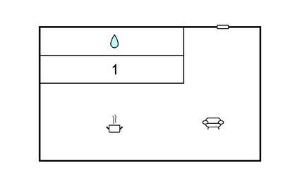 Komb. spisestue/køkken 25m2 - 2 Sovepladser. (Sofa, madras eller lignende).
