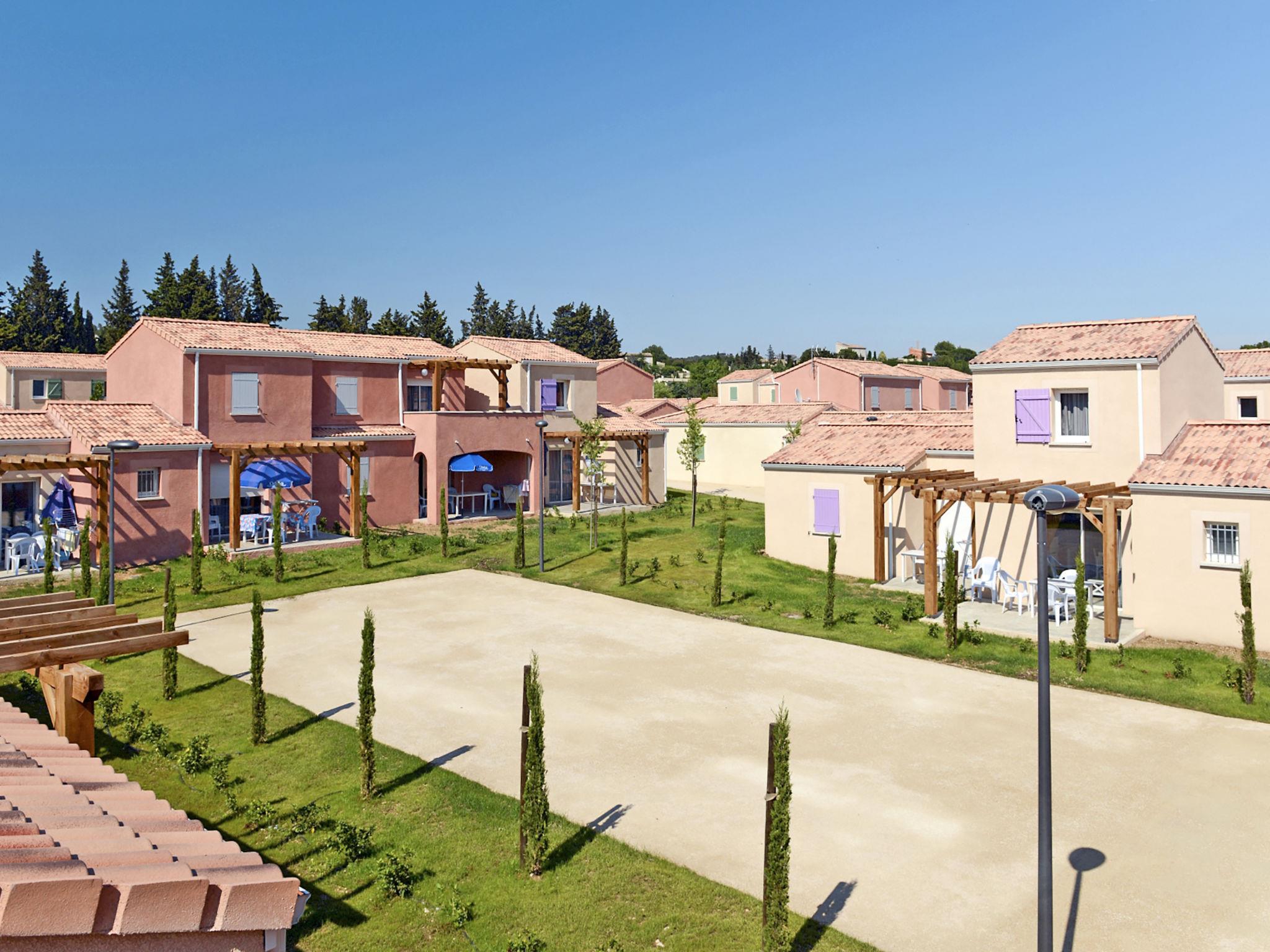 Le Paradou: Child friendly resort "Le Mas des Alpilles", 2 storeys, built in 2014. 135 apartments in the residence. 3 km from the centre of Maussane-les-Alpilles, 7 km from the centre of Les Baux, 15 km from the centre of Arles, 40 km from the sea. For shared use: natural state property 3 ha, swimming pool heated (6 x 7 m, seasonal availability: 01.Jan. - 28.Feb. and 01.Apr. - 31.Dec.). Boccia. In the complex: reception, WiFi, sauna (extra). Steam room (extra). Washing machine, tumble dryer (for shared use, extra). Parking on the premises. Shop 3 km, supermarket 10 km, restaurant 3 km. Tennis 7 km, minigolf 100 m. Please note: the photograph shows a typical example. The holiday properties may differ in living space, floorplan, equipment and furnishing. Wifi available only at the reception.