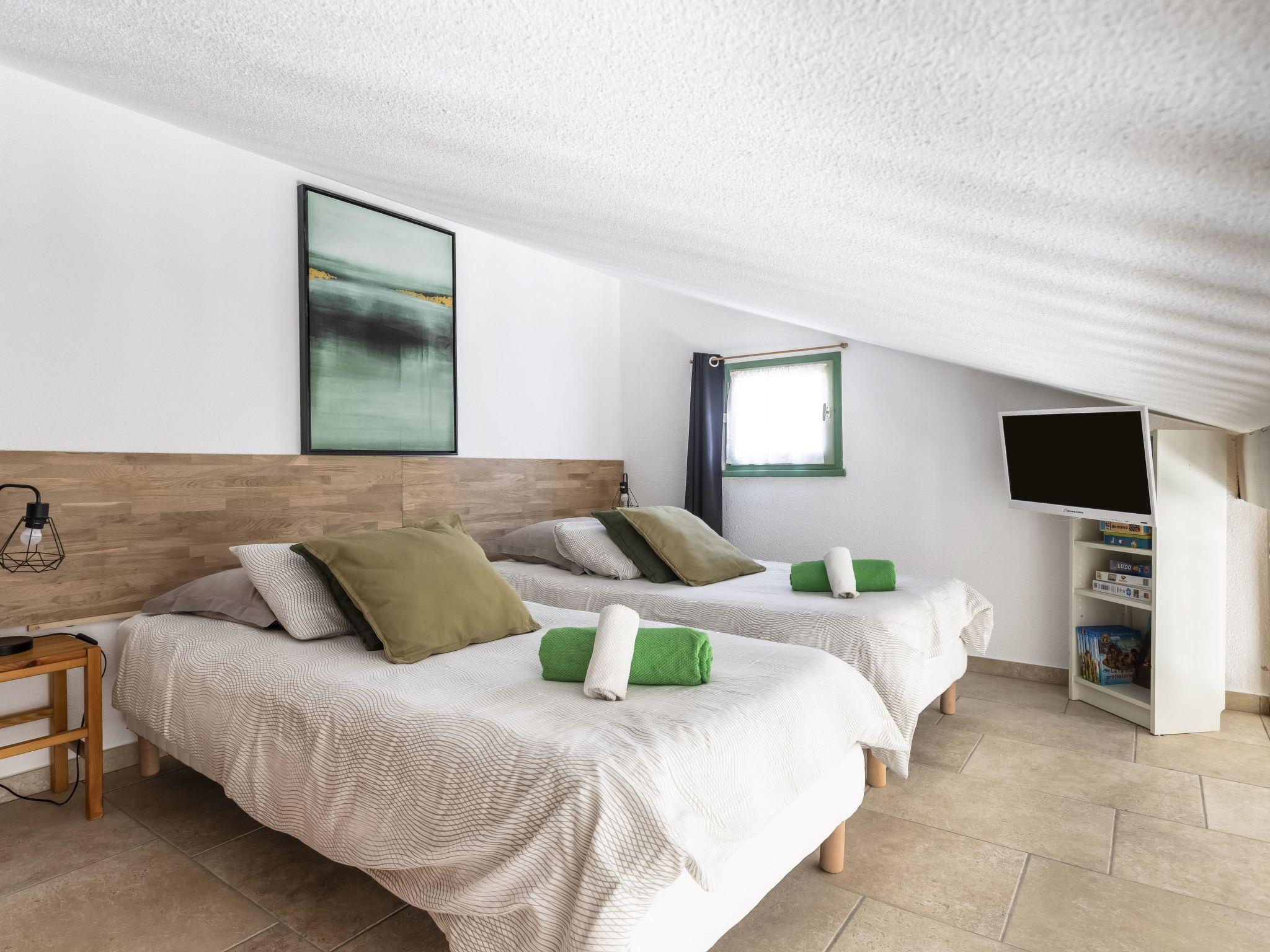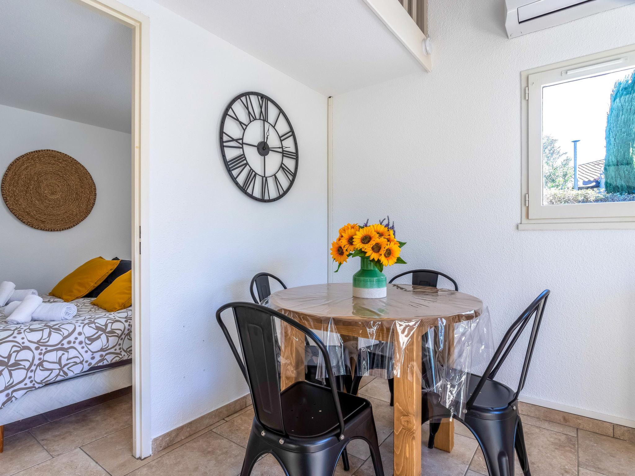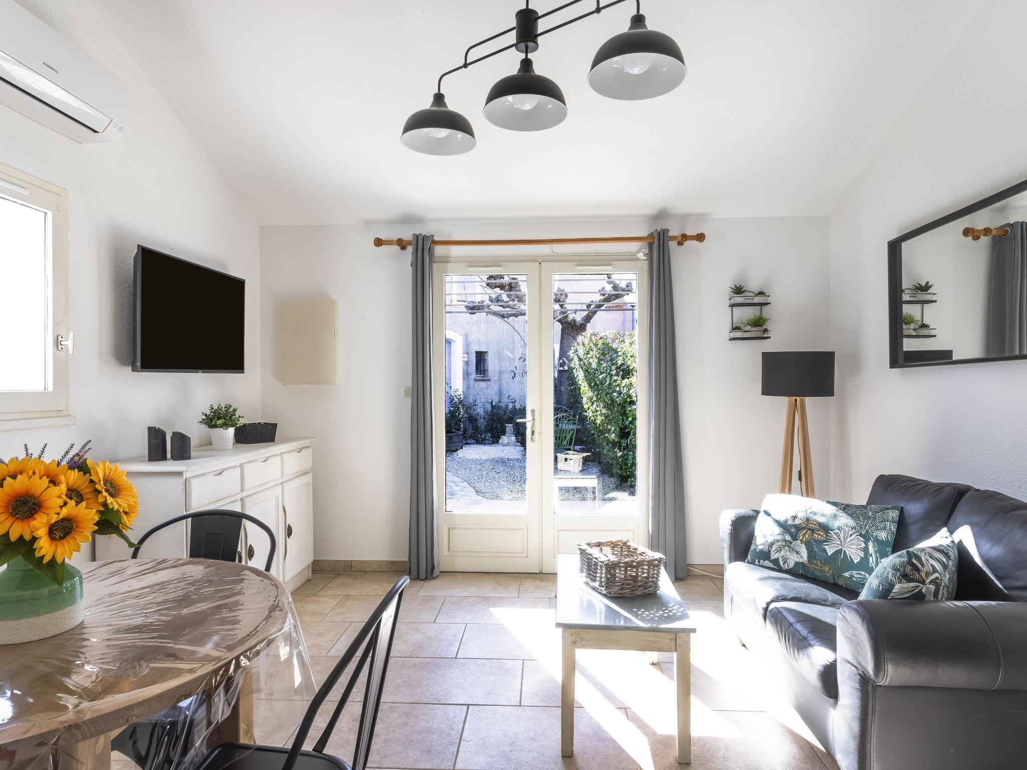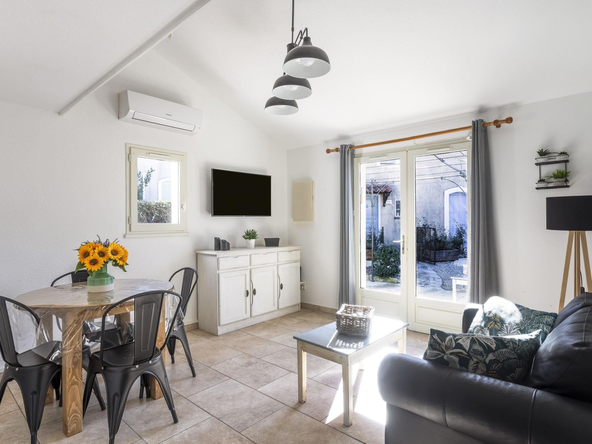 "Val d'Alpilles", 3-room terraced house 40 m2 on 2 levels. Practical and beautiful furnishings: living/dining room with dining table, TV, electric heating and air conditioning. Exit to the terrace, to the patio. 1 small room with 1 french bed (1 x 140 cm, length 200 cm). Kitchenette (mini-oven, oven, dishwasher, 2 ceramic glass hob hotplates, toaster, kettle, freezer, electric coffee machine). Shower/WC. Electric heating. Upper floor: 1 open room with sloping ceilings with curtain with 2 beds (90 cm, length 200 cm), TV and flat screen. Terrace 15 m2. Terrace furniture, electric barbecue. Facilities: washing machine. Internet (WiFi, free). Parking space n 103 (1 car) at 50 m. Please note: non-smoking house. Smoke alarm. Offer by a private individual according to Art. 155, IV of CGI. 130580000869P