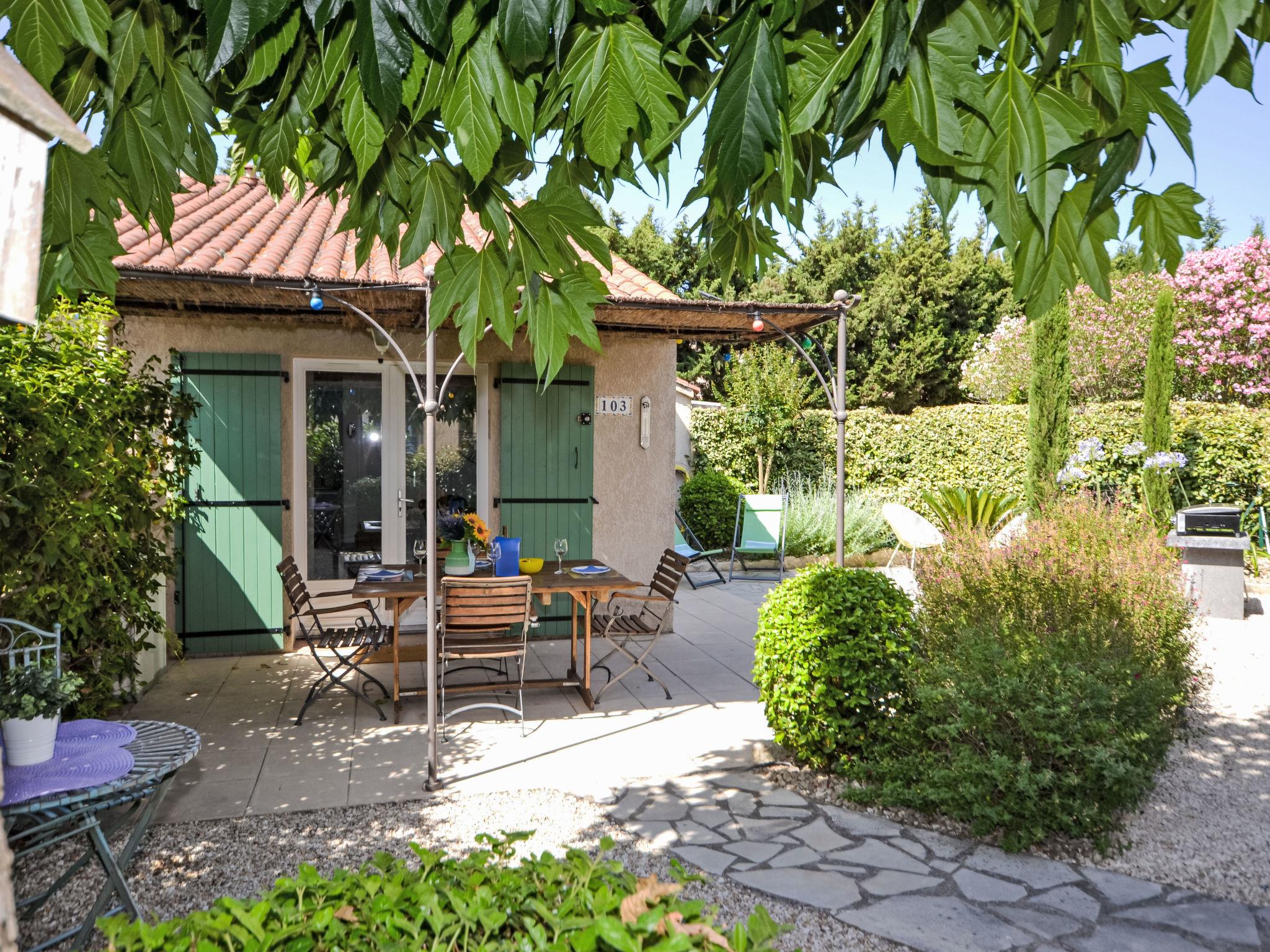 Holiday village "Val d'Alpilles". 103 houses in the residence. For shared use: swimming pool (10 x 5 m, seasonal availability: 15.May. and 15.Sep. pool opening hours: 09:00-19:00). Shower/WC in the pool area, tennis, boccia, pool maintenance by the owner/gardener. Private: small, well-kept garden 150 m2 (fenced), parking space n 103 at the house at 50 m. Shop, grocery 300 m, supermarket 500 m, restaurant 300 m, bakery 350 m, bus stop "Le Stade" 750 m. Nearby attractions: Maussane Les Alpilles 300 m, Les Baux de Provence 2 km, Saint Rémy de Provence 10 km, Aix en Provence 70 km. Please note: car recommended.