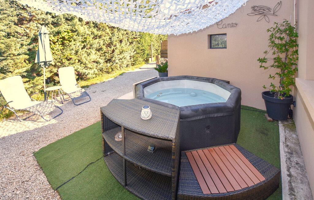 Åbn døren til terrassen og tilbring ubekymrede timer udendørs. Liggestole og forskellige siddepladser gør det nemt at finde det perfekte sted. Sæt jer til rette i spabadet, læs en bog i skyggen eller sæt jer ved siddeområdet. Brug grillen til hyggelige middage og nyd middelhavsstemningen.