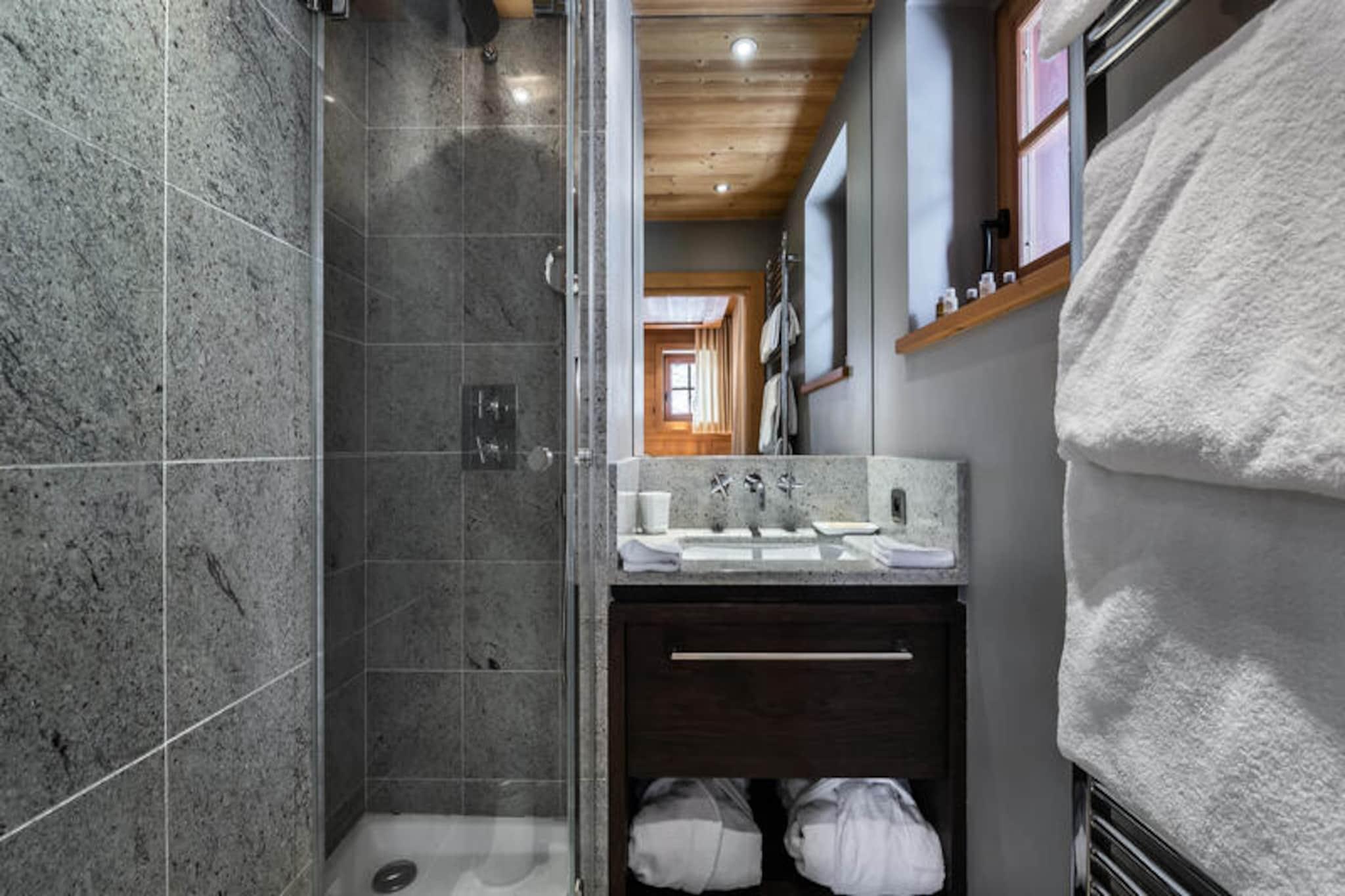Ejendom sammen med et charmerende og luksuriøst design giver en rummelig og indbydende hytte ideel til familieferier i Megève. Reine des Prés chalet tilbyder en lys stue med forskellige rum, herunder en hyggelig tv-stue, et afslappende cocooning-område og en smuk spisestue tæt på køkkenet. Hytten har fire soveværelser med dobbeltsenge og en mezzanin, der kan rumme op til 8 voksne og 2 børn. Hytten er ideelt beliggende nær Rochebrune gondolen, og tilbyder nem adgang til pisterne og centrum af Megève. Ejendommen har en have og terrasse, hvor gæsterne kan nyde udendørs i fredelige omgivelser. For nemheds skyld inkluderer hytten en garage til en bil, en skotørrer og et vaskerum. På andet niveau kan stuen prale af en pejs med lukket ildsted, omgivet af komfortable lænestole og puf. Tjenesterne omfatter en velkomst med champagne og en kurv, sammen med badeværelsesprodukter, tøfler og regelmæssige skift af sengetøj i vintersæsonen. Midt på ugen rengøring, brænde og en 10-timers slutrengøring (ekskl. køkkenet) er også inkluderet for at sikre en problemfri oplevelse. Yderligere tjenester såsom concierge-assistance og ekstra rengøring kan arrangeres mod et gebyr.