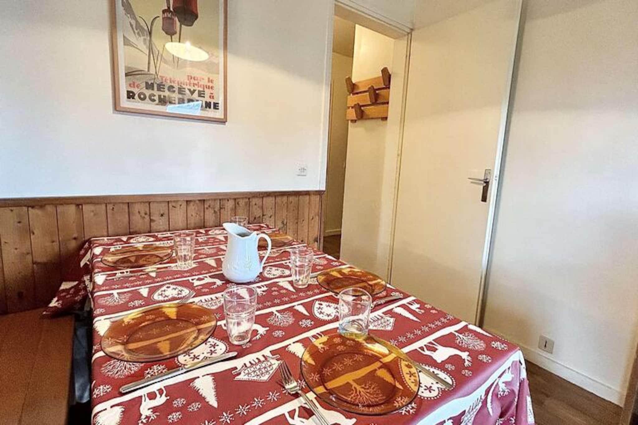 Højt over den maleriske landsby Megève inviterer denne charmerende lejlighed dig til at opleve magien i de franske alper. Med en betagende udsigt over Mont Charvin fra den sydvestvendte balkon føles hvert øjeblik her som et postkort, der kommer til live. Uanset om du nyder den friske bjergluft eller ser solen synke ned bag bjergtoppene, tilbyder dette hyggelige tilflugtssted en rolig flugt kun få minutter fra landsbyens hjerte. Perfekt til par eller familier og kombinerer alpin charme med moderne bekvemmeligheder for et uforglemmeligt ophold. Indenfor er lejligheden omhyggeligt designet til at rumme op til seks gæster. Det største soveværelse har en komfortabel dobbeltseng, mens mezzaninen tilbyder to enkeltsenge, ideel til børn eller venner. Stue-/spisestuen har en enkeltseng og en udtræksseng, hvilket giver fleksible sovemuligheder. Et fuldt udstyret køkken gør det nemt at tilberede måltider, og den sydvestvendte balkon er perfekt til afslapning efter en dag med eventyr. Yderligere faciliteter inkluderer et skirum, underjordisk parkering og valgfrie tjenester som Wi-Fi, sengetøj og slutrengøring for at sikre en problemfri ferie. Lejligheden ligger kun 1 km fra Megèves charmerende centrum og 800 m fra Rochebrune-svævebanen og er perfekt placeret til at udforske regionen. Skientusiaster vil sætte pris på nærheden til pisterne, med de nærmeste stolelifte kun 550 m væk. Om sommeren forvandles området til et paradis for vandrere og naturelskere med stier, der fører til fantastiske alpine udsigter. Uanset om du er her for at stå på ski, vandre eller bare slappe af, tilbyder denne lejlighed den perfekte base for dit alpine eventyr.