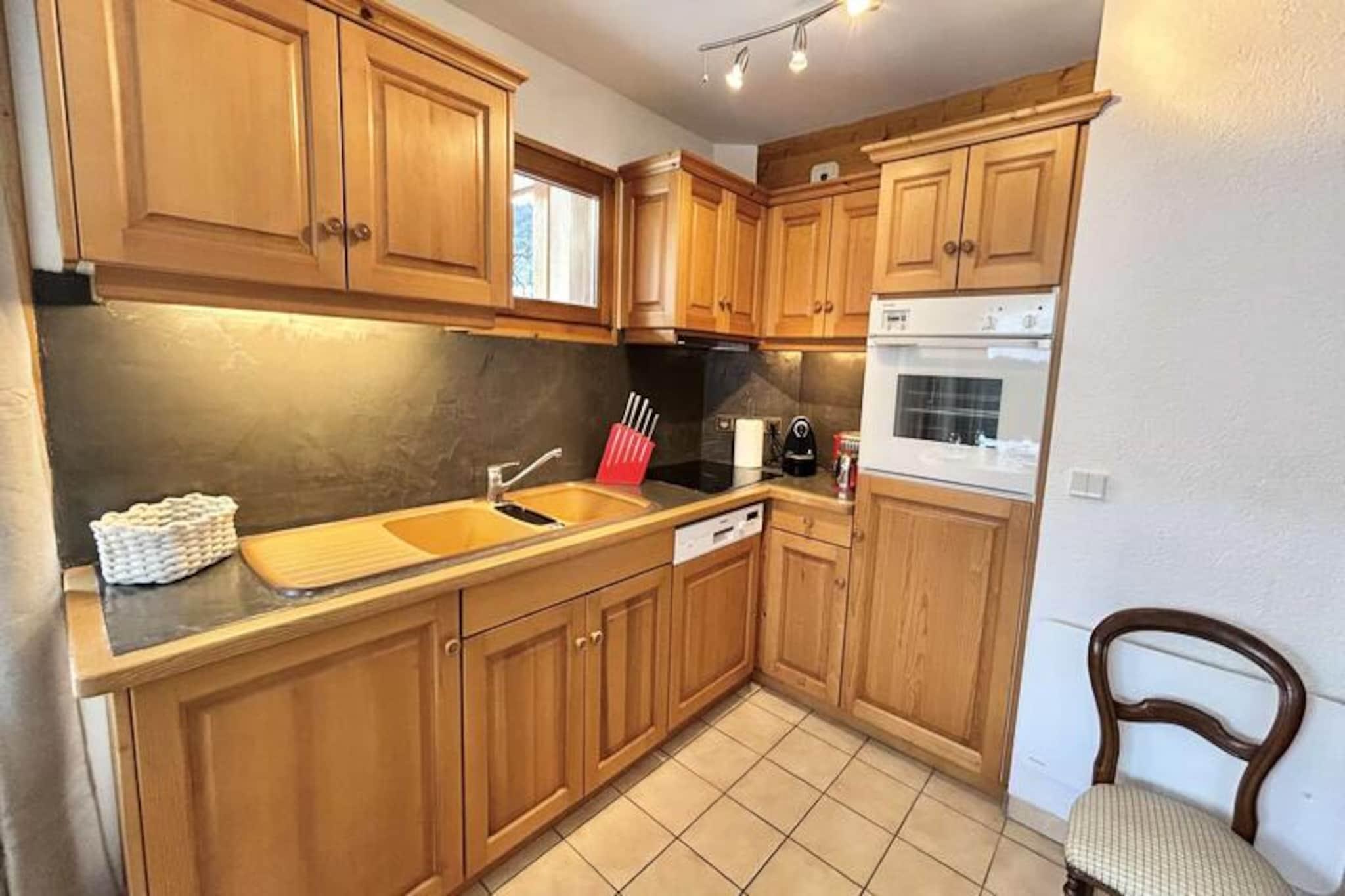 Denne lejlighed i stueetagen ligger en kort gåtur på 10 minutter fra det charmerende hjerte af Megève og kombinerer bekvemmelighed med ro og tilbyder et roligt tilflugtssted kun 850 meter fra Jaillet-skilifterne. Omgivet af de franske alpers maleriske skønhed inviterer denne ejendom dig til at opleve den perfekte balance mellem alpint eventyr og fredelig afslapning. Uanset om du er tiltrukket af pisterne eller de hyggelige gader i Megève, er alt inden for rækkevidde. Træd indenfor og oplev en varm og indbydende stue/spisestue med to komfortable sofaer, en dekorativ pejs og Wi-Fi, hvilket skaber det perfekte sted at slappe af efter en dag med udforskning. Værelset åbner direkte ud til en sydøstvendt lukket have, hvor du kan nippe til din morgenkaffe, mens du nyder den friske bjergluft. Det fuldt udstyrede køkken sikrer, at du har alt, hvad du behøver for at tilberede lækre måltider. Det første soveværelse har en blød dobbeltseng (160 x 200 cm) og et eget brusebad med toilet, mens det andet soveværelse har en hyggelig dobbeltseng (140 x 190 cm) og eget badeværelse. Et separat toilet med håndvask giver ekstra bekvemmelighed. Praktiske faciliteter inkluderer et skirum og en overdækket parkeringsplads, hvilket gør dit ophold så problemfrit som muligt. Valgfrie tjenester såsom sengelinned, håndklæder og slutrengøring er tilgængelige for at forbedre din komfort. Uanset om du besøger stedet for skiløb i verdensklasse, naturskønne vandrestier eller blot for at fordybe dig i Megèves tidløse charme, er denne lejlighed den ideelle base for uforglemmelige alpine minder.